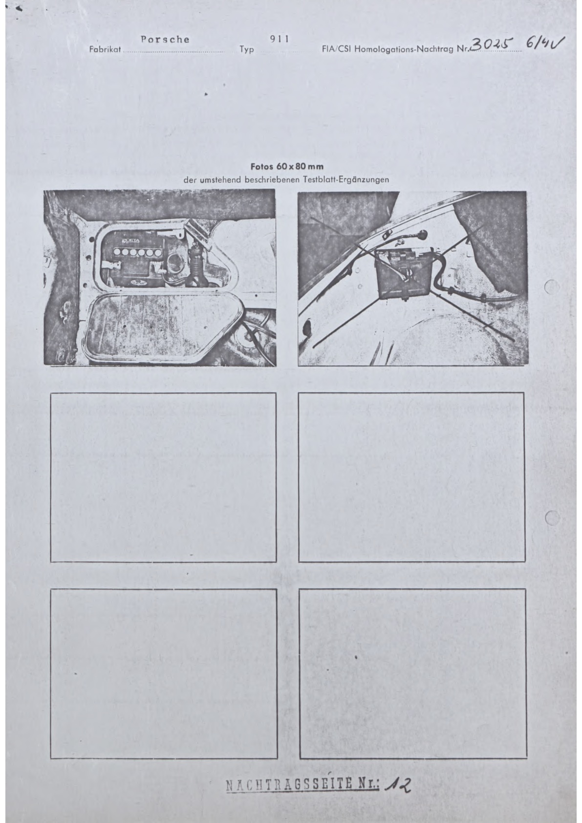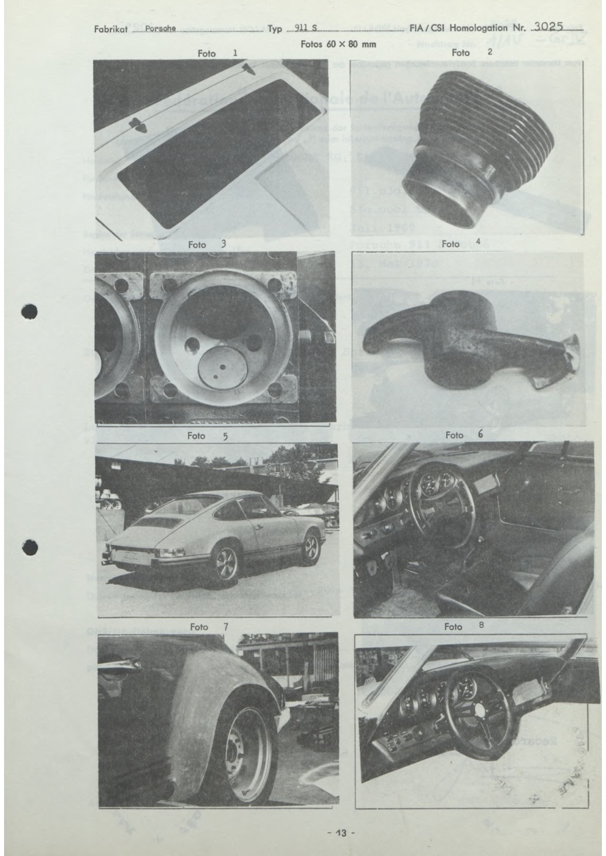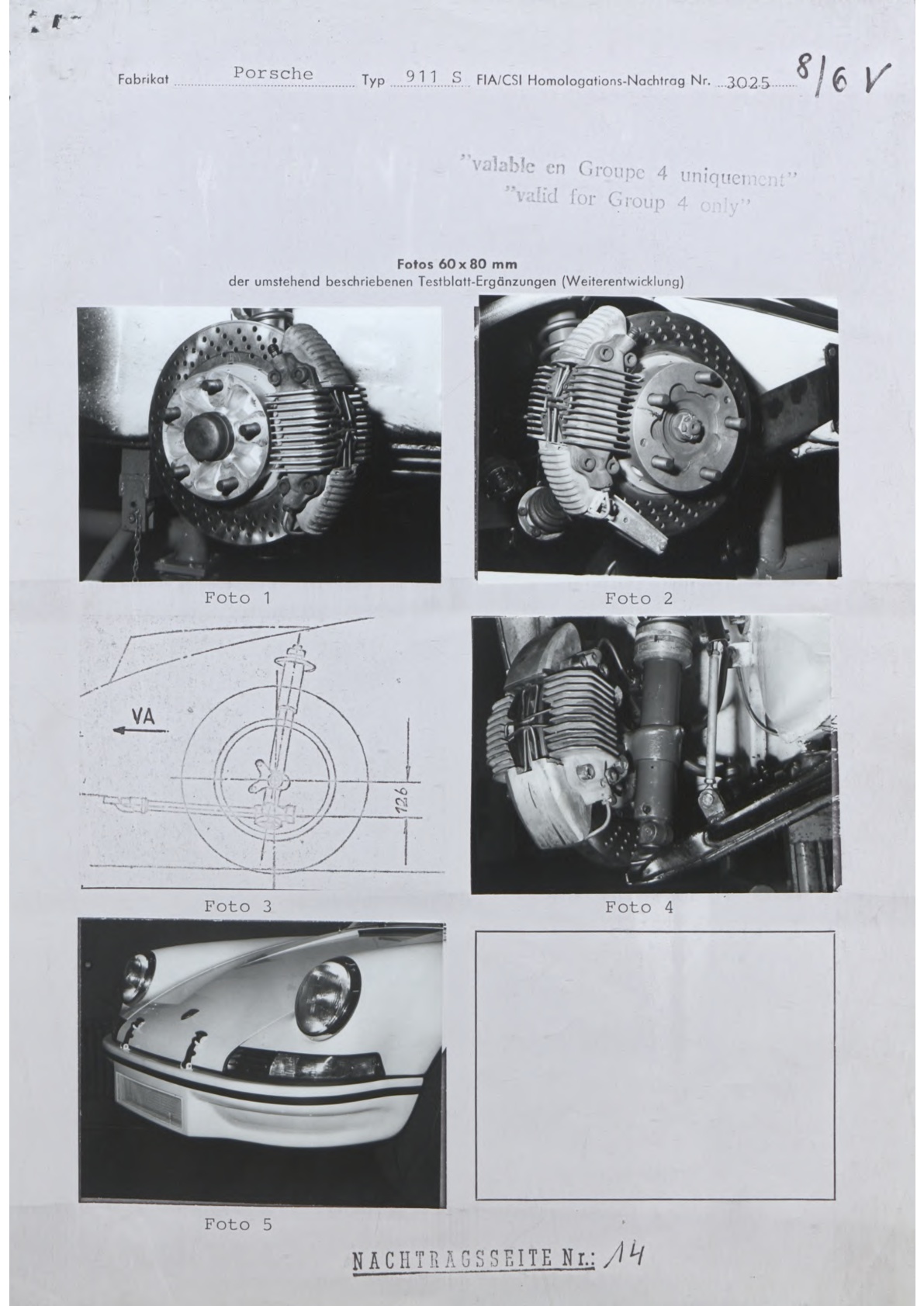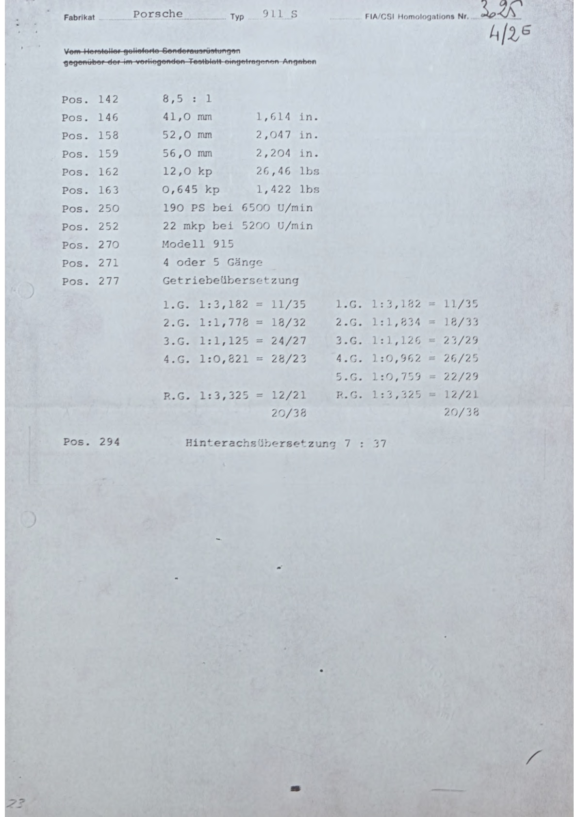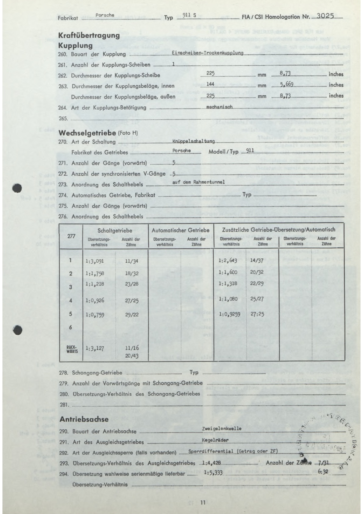 FIA Homologation Protocol for Porsche-911S 2.2 (Group A 3GT) with additions 911S 2.5 for Group 4, 1969