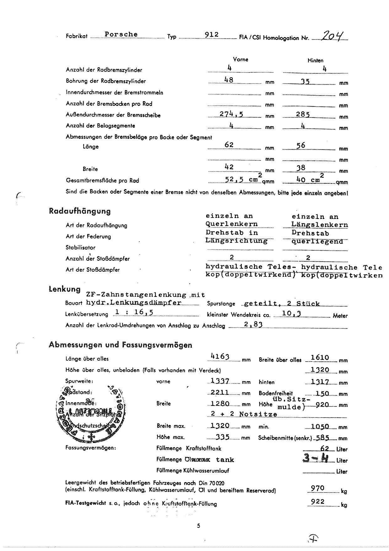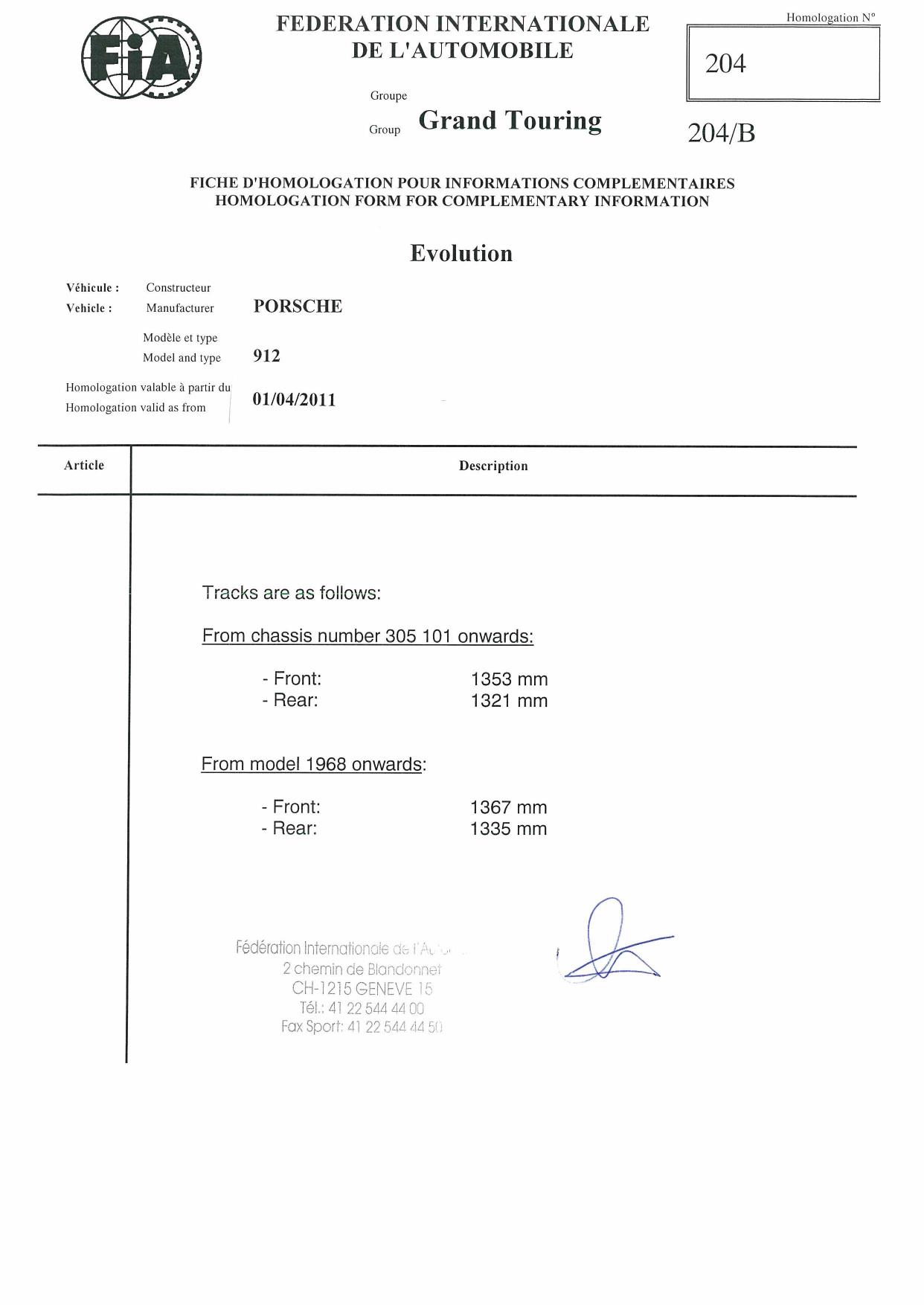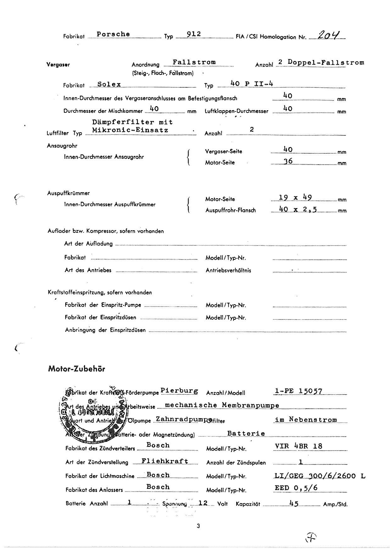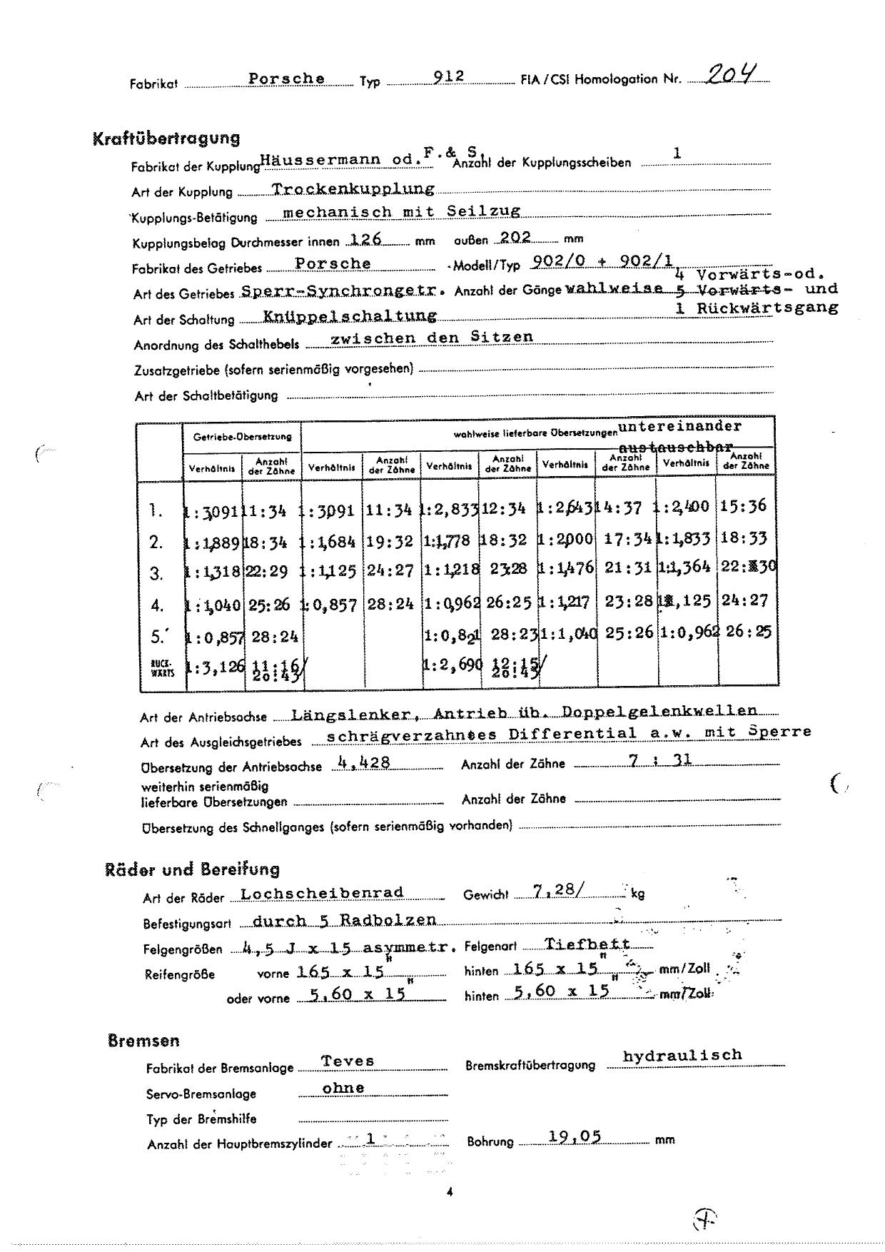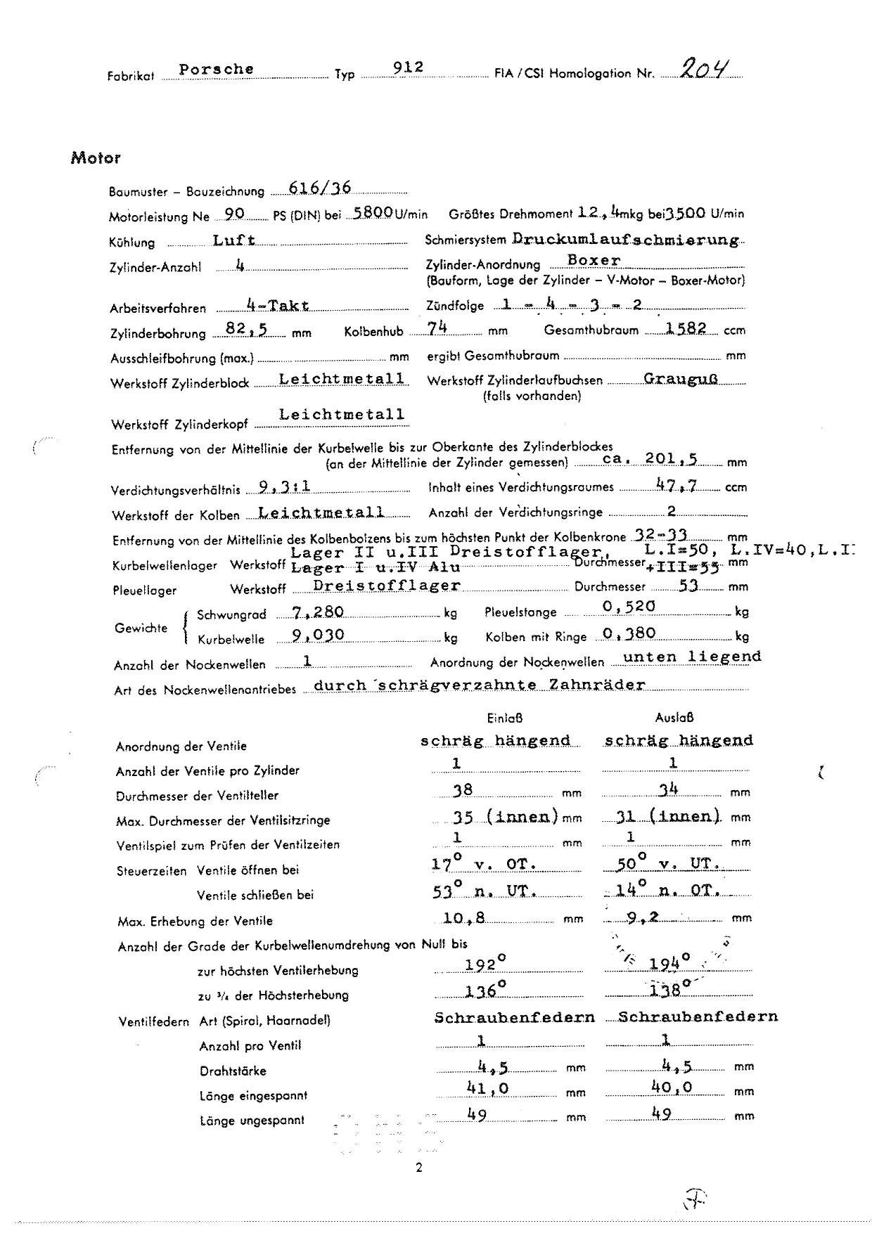 FIA Homologation Protocol for Porsche 912, 04.1965