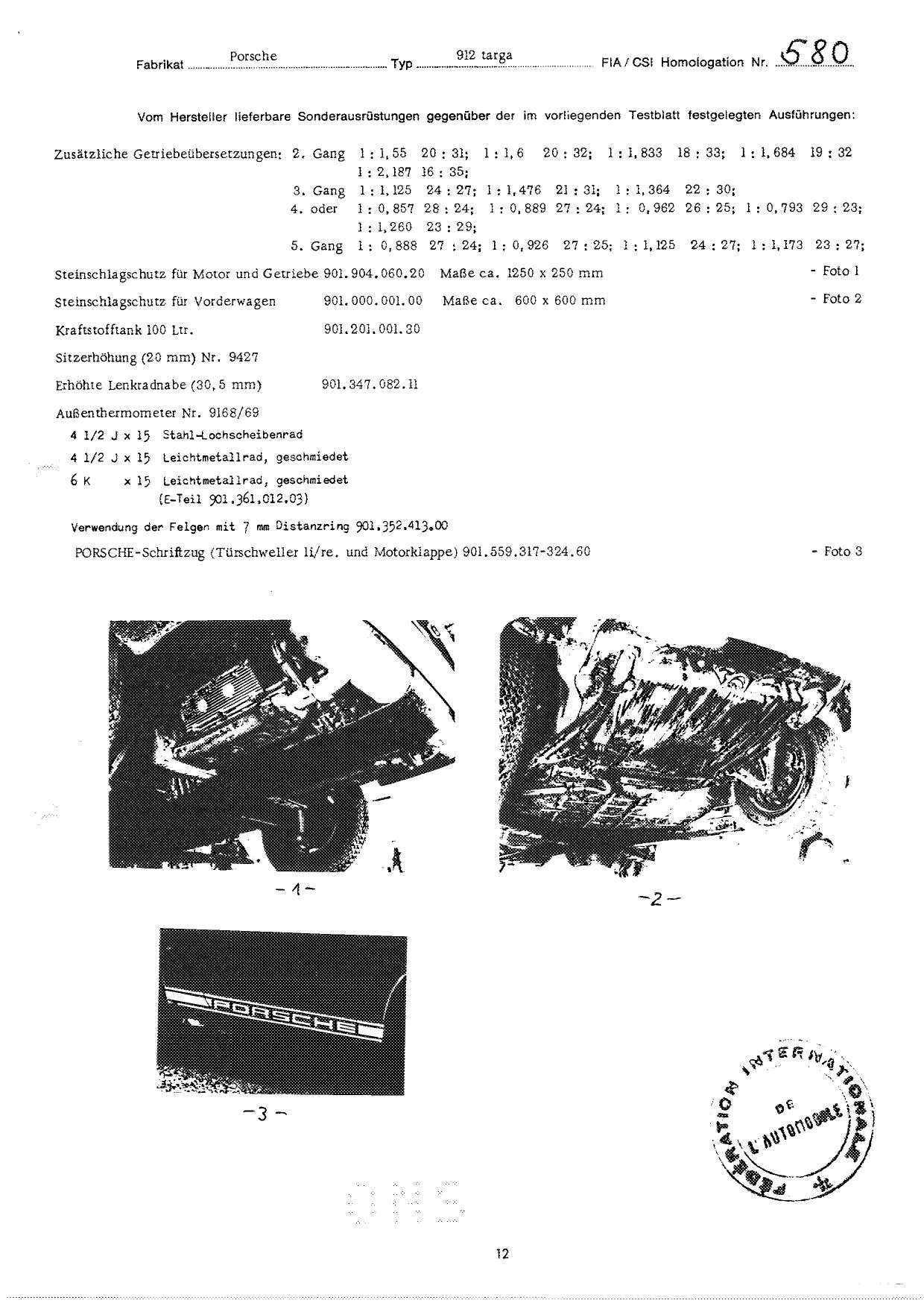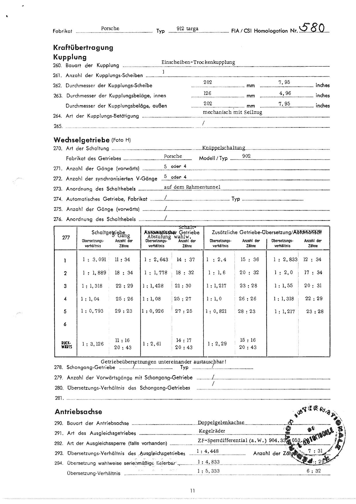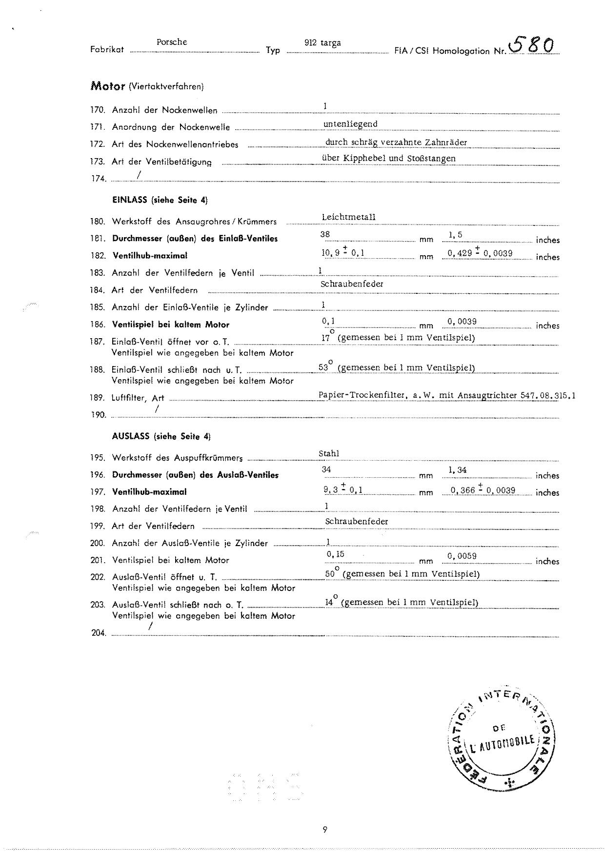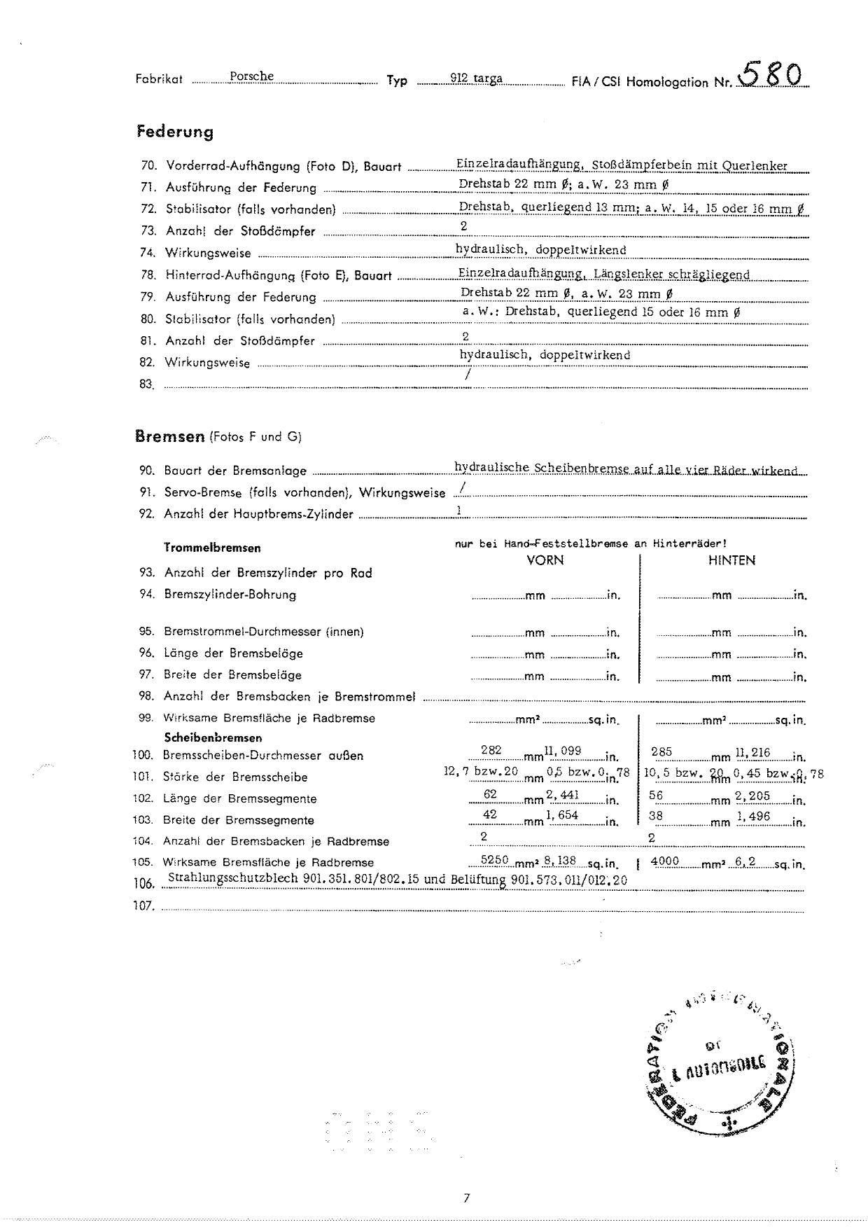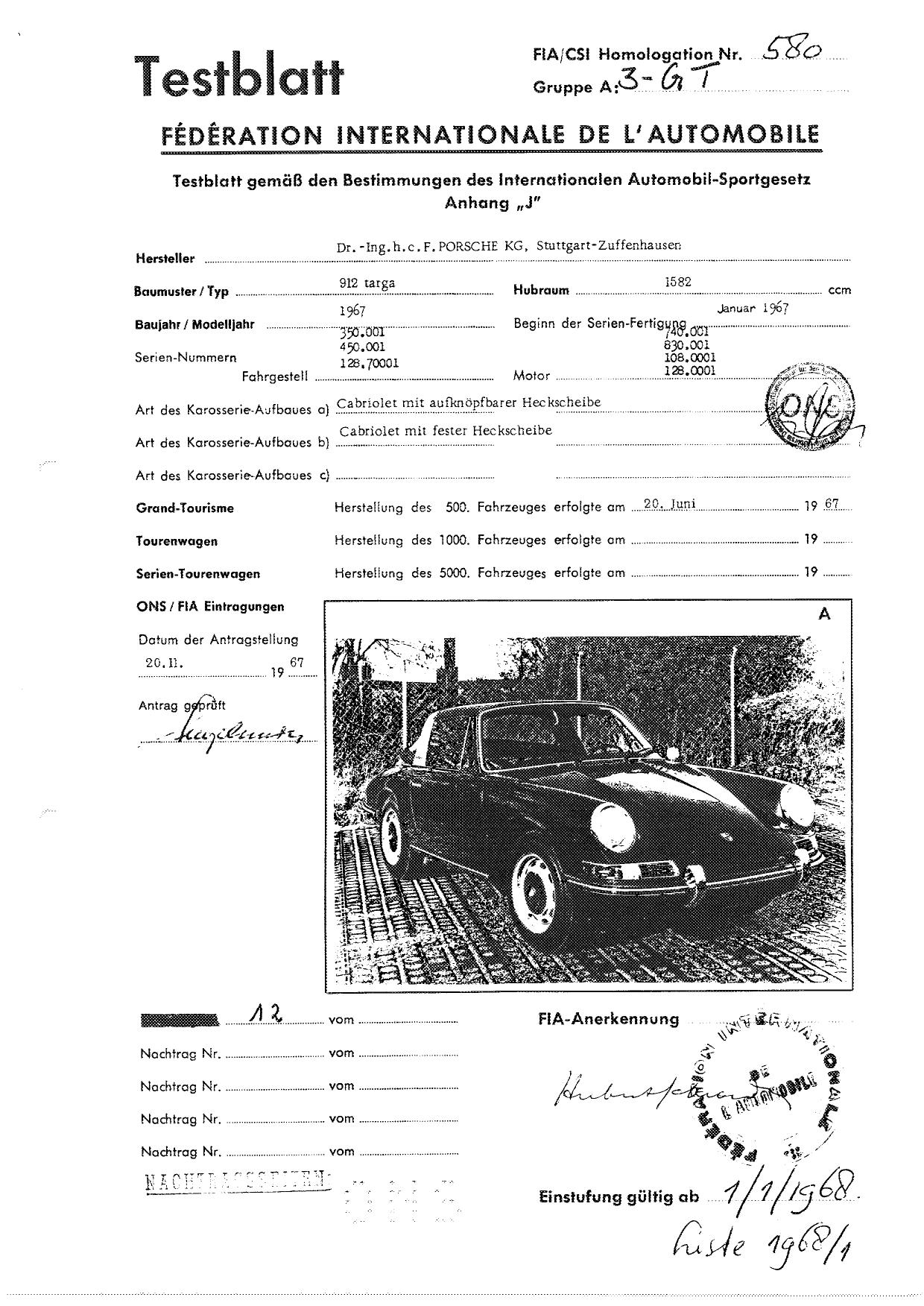 FIA Homologation Protocol for Porsche-912 Targa, 1967