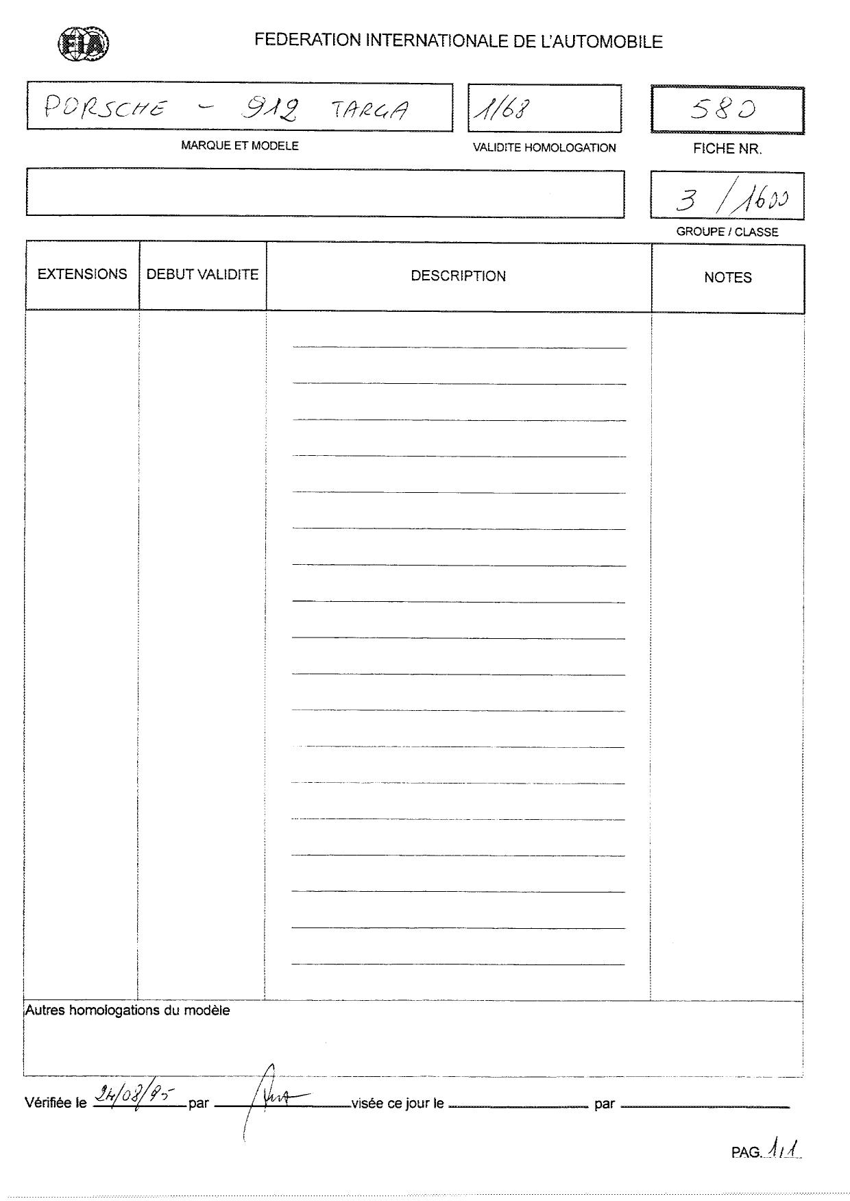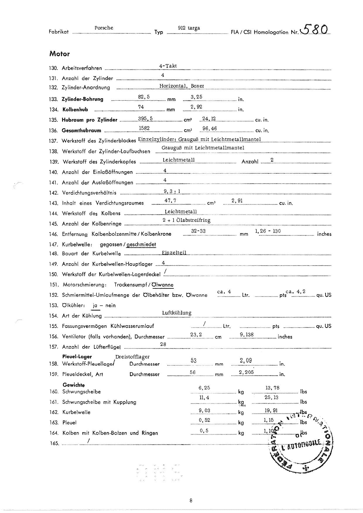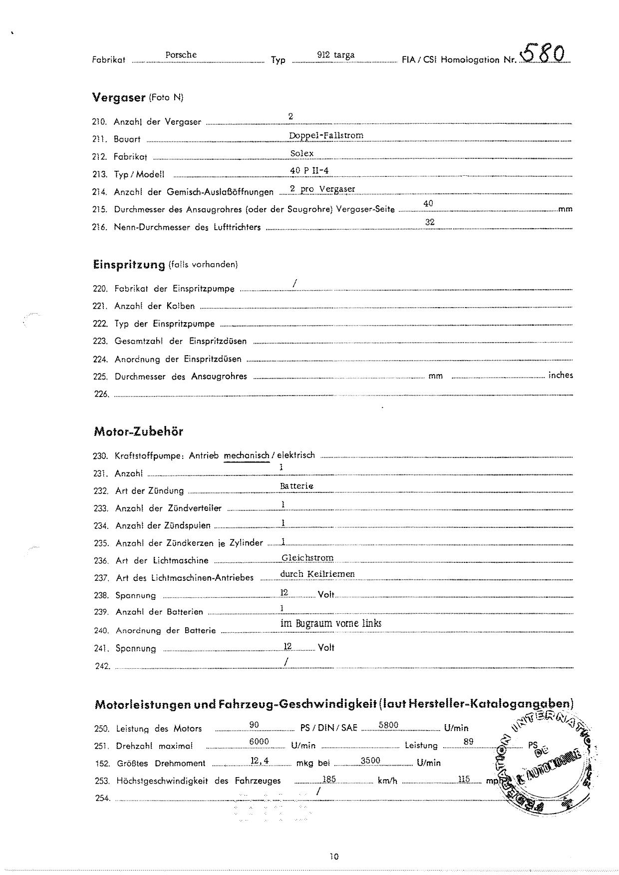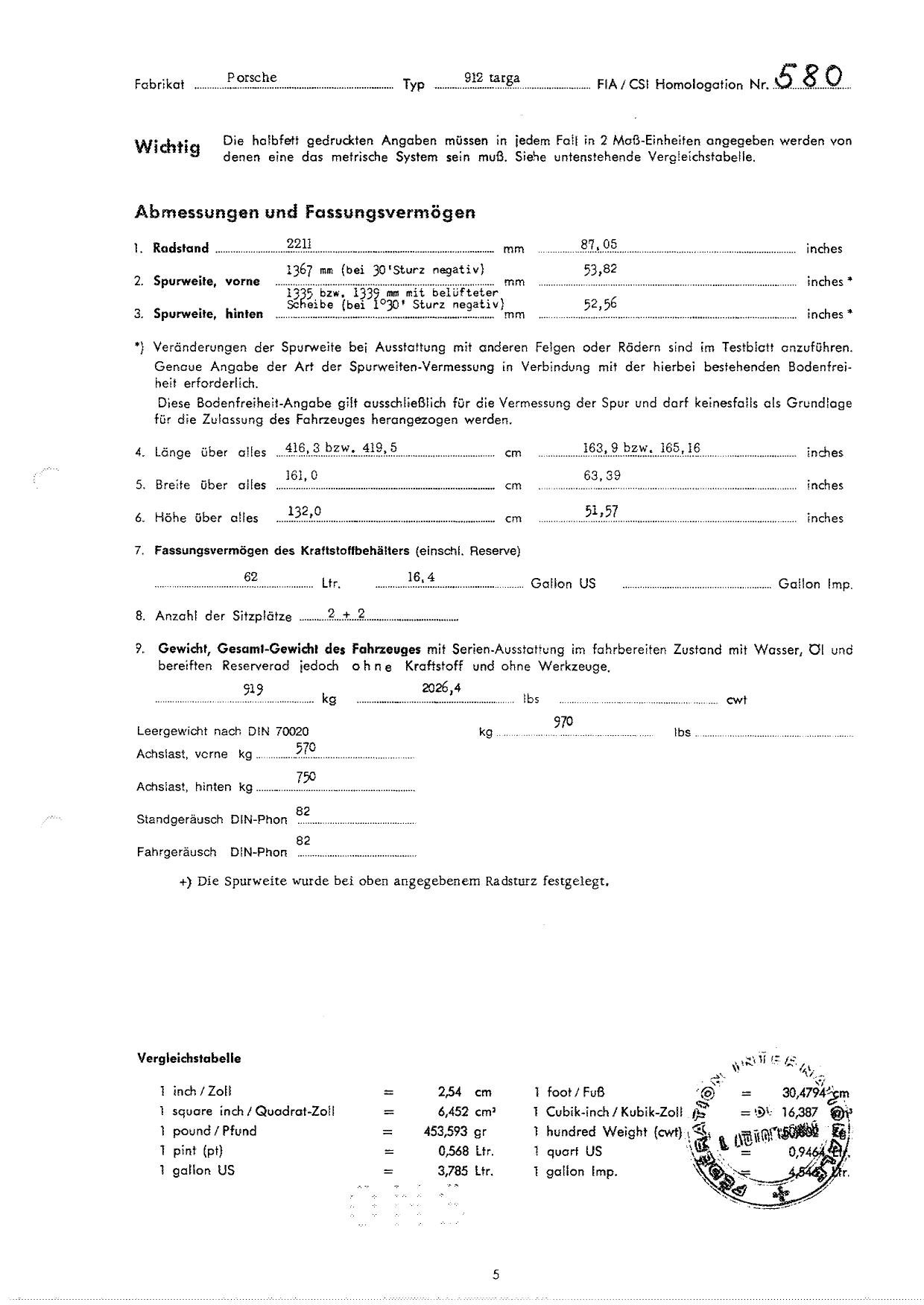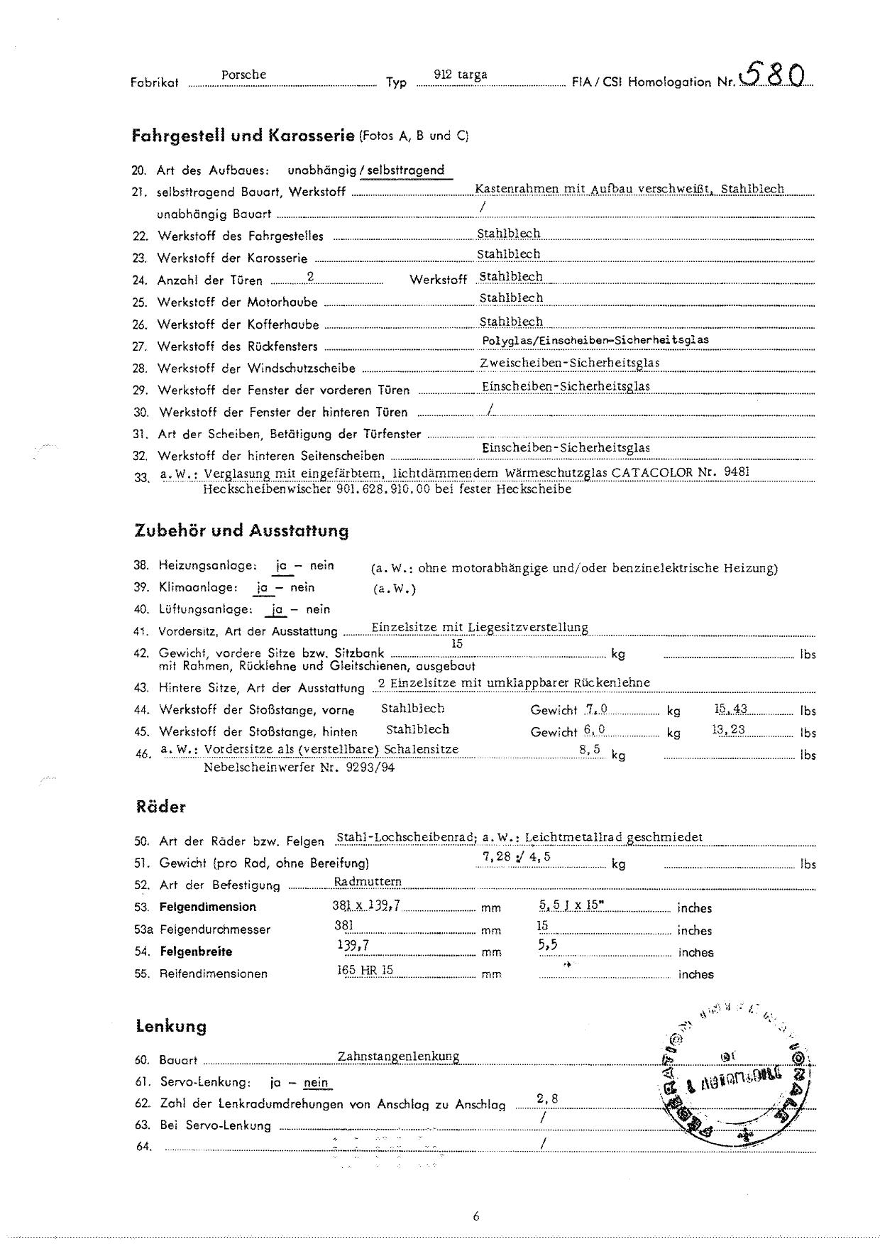 FIA Homologation Protocol for Porsche-912 Targa, 1967