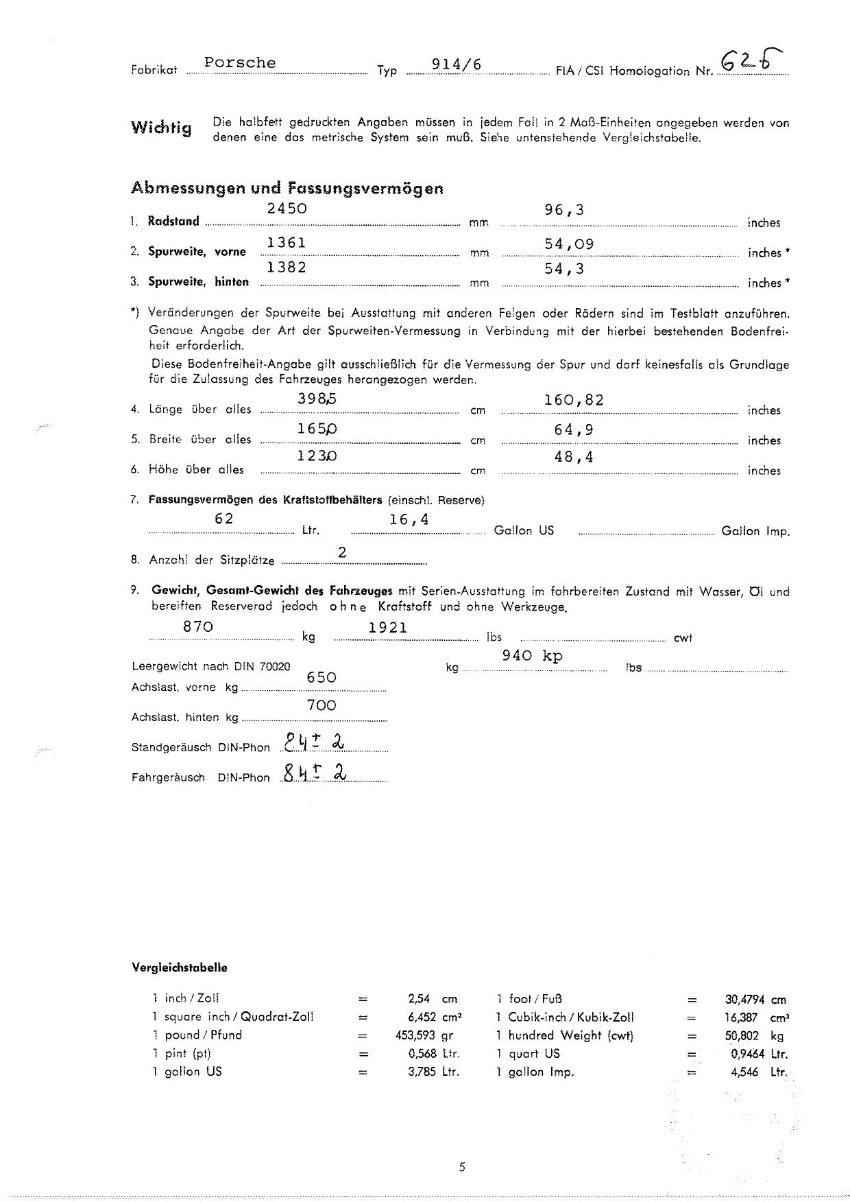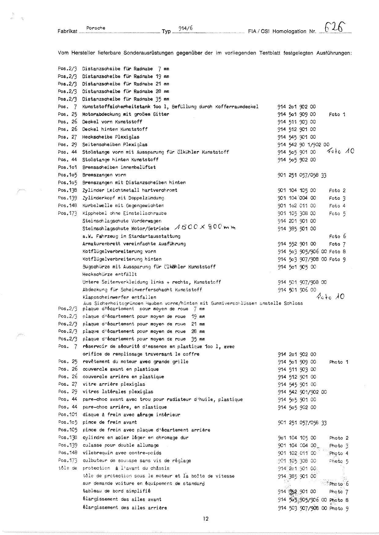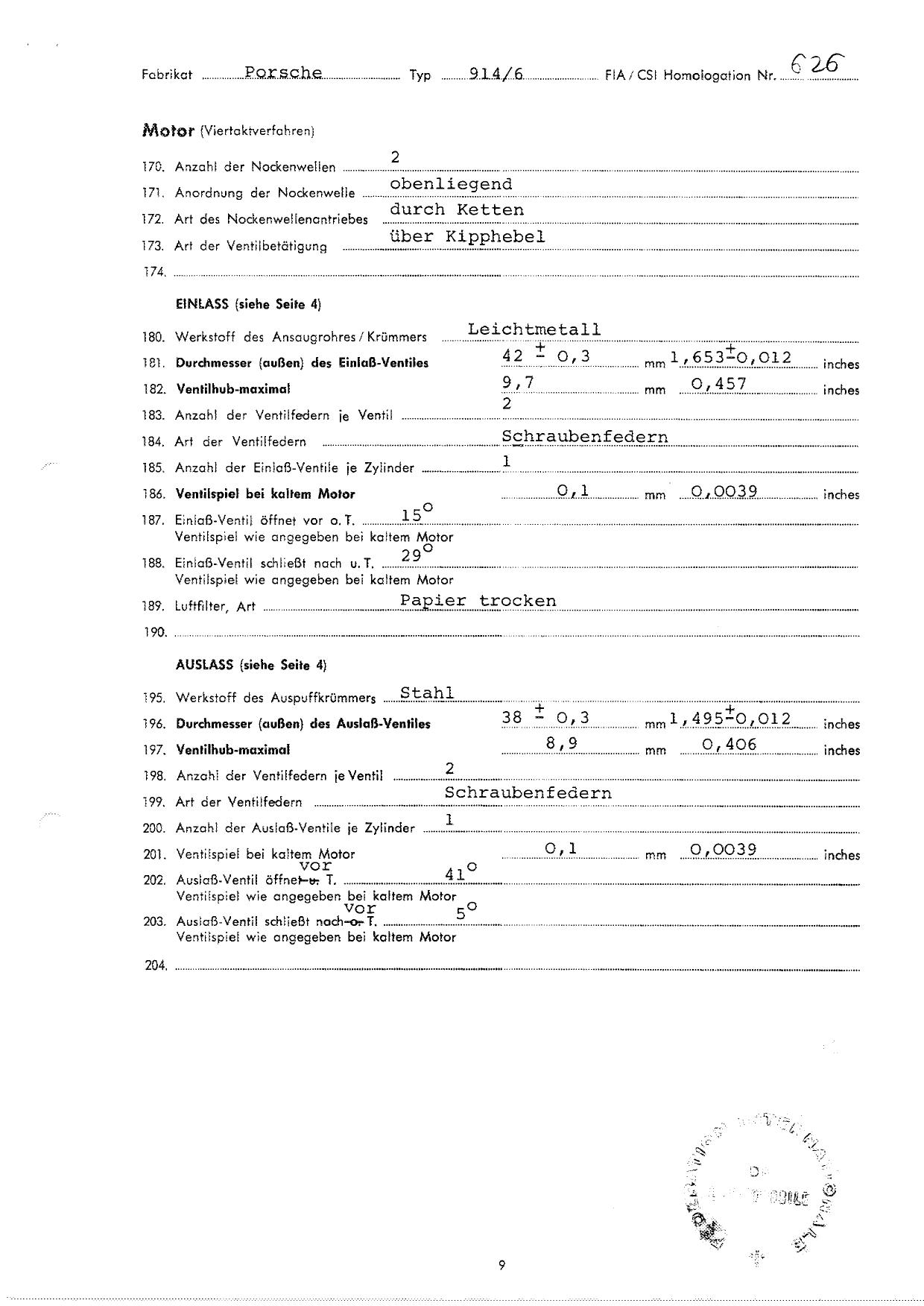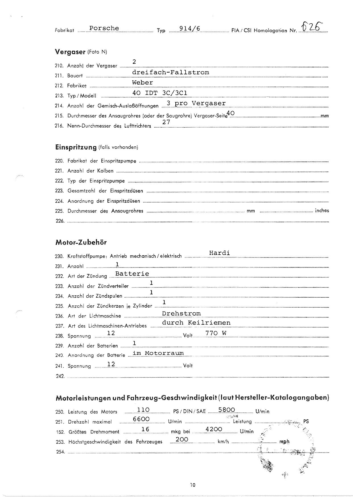 FIA Homologation Protocol for Porsche-914/6, 1969