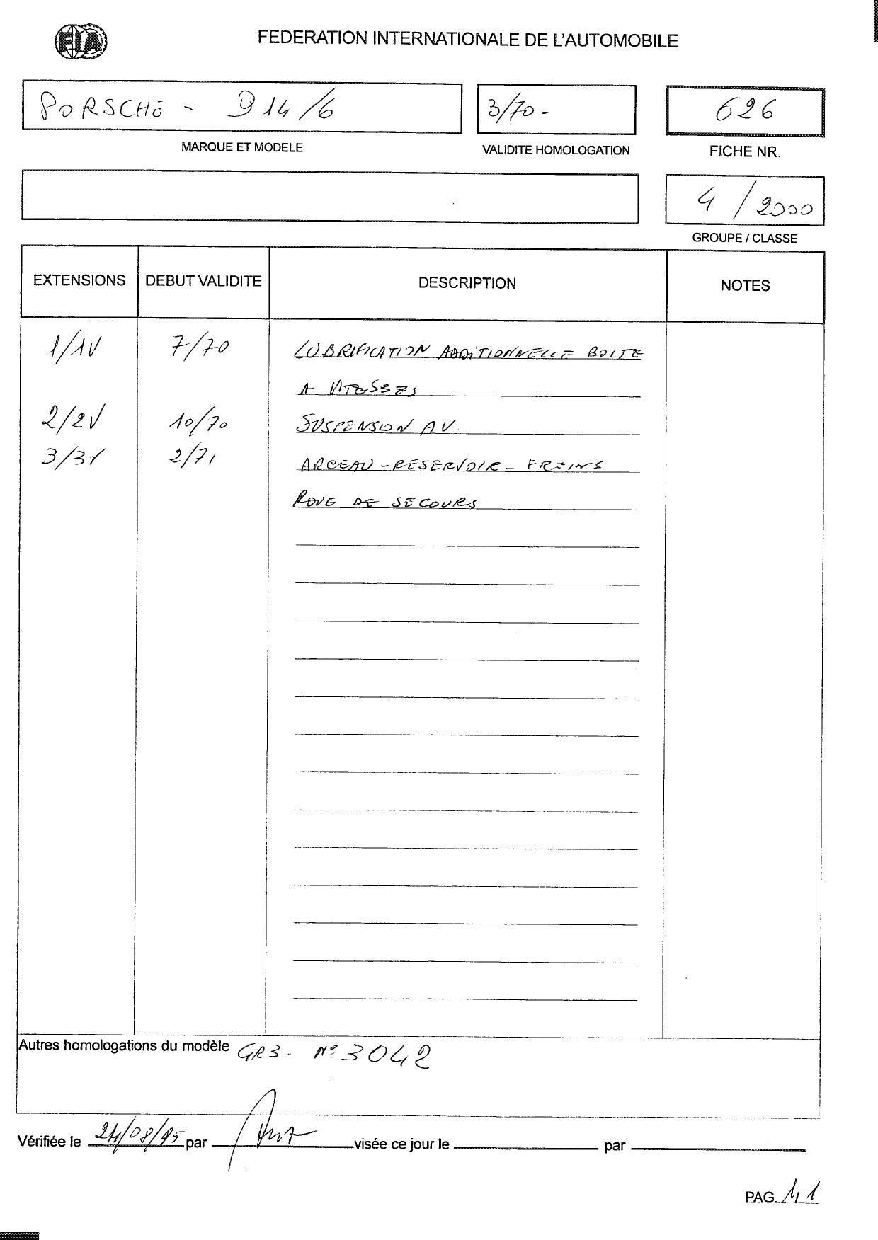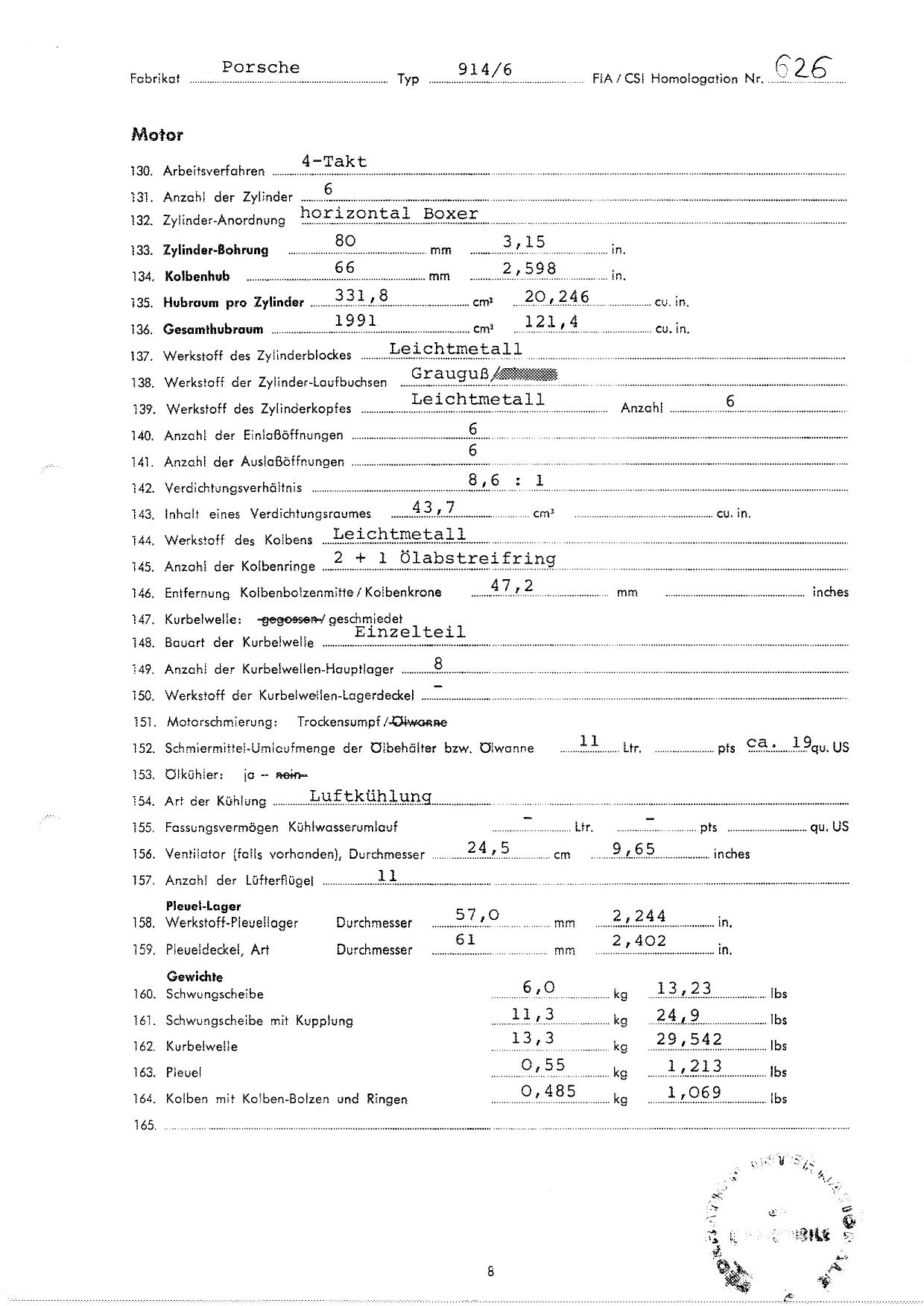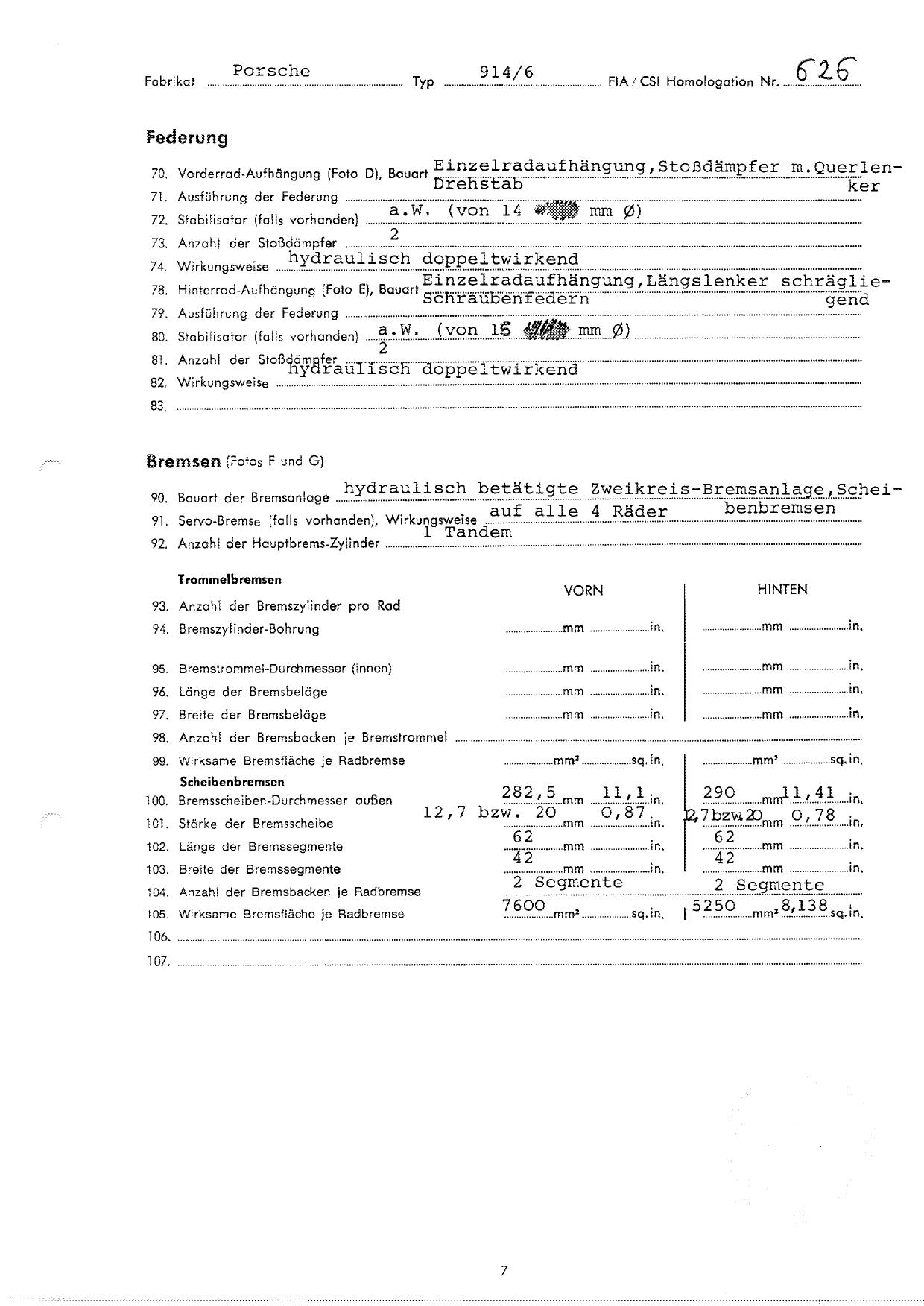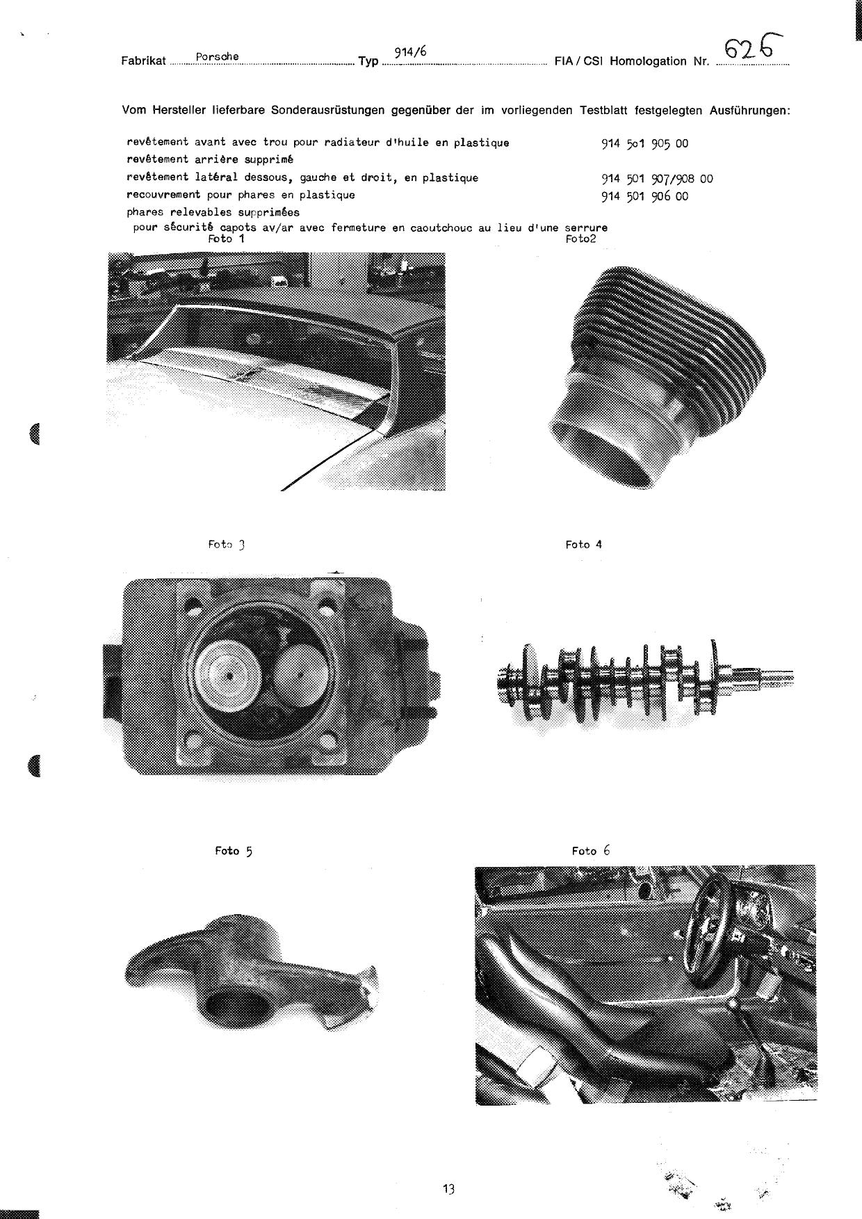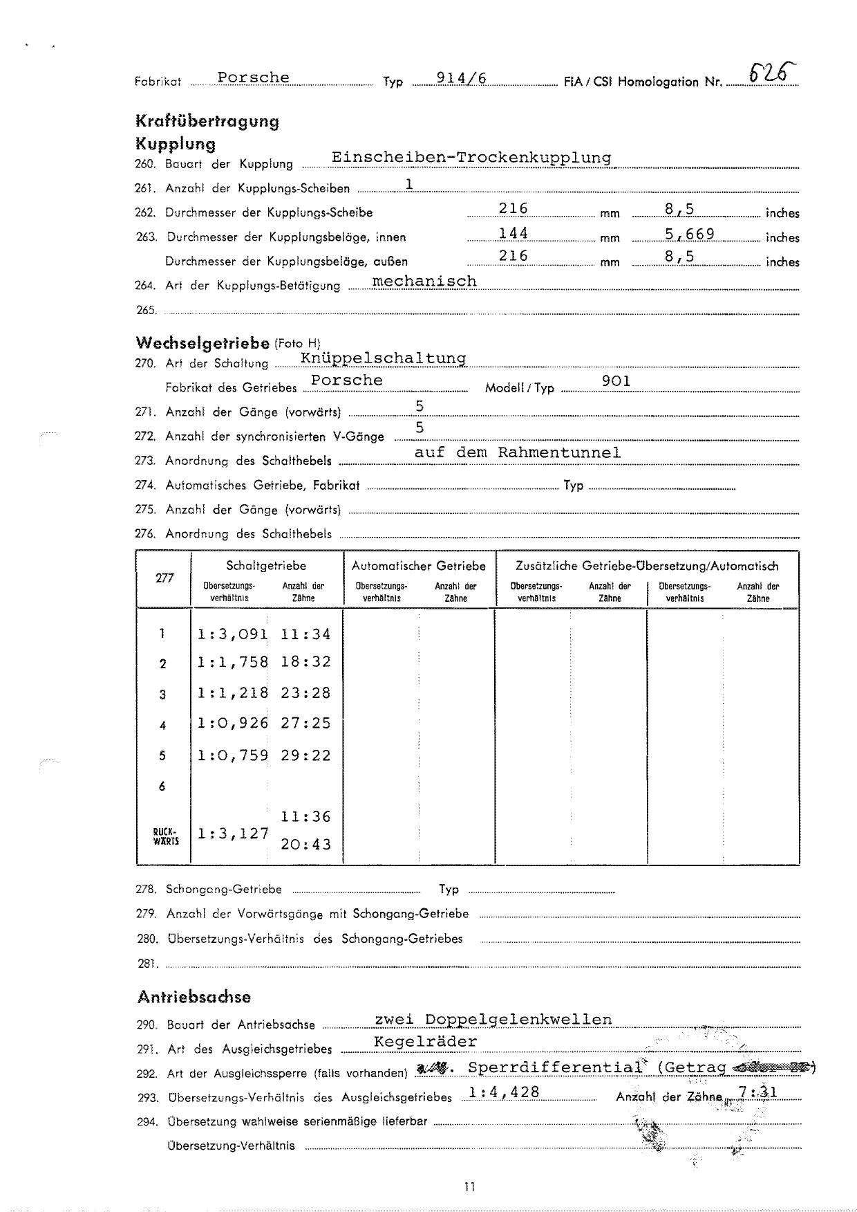 FIA Homologation Protocol for Porsche-914/6, 1969