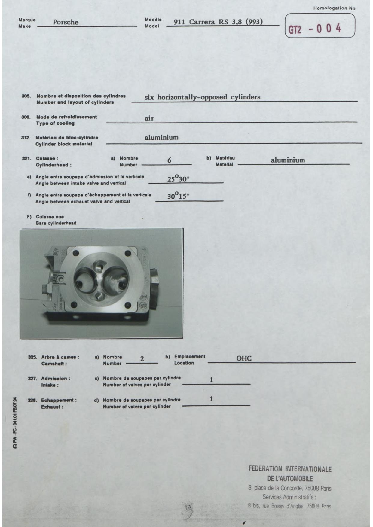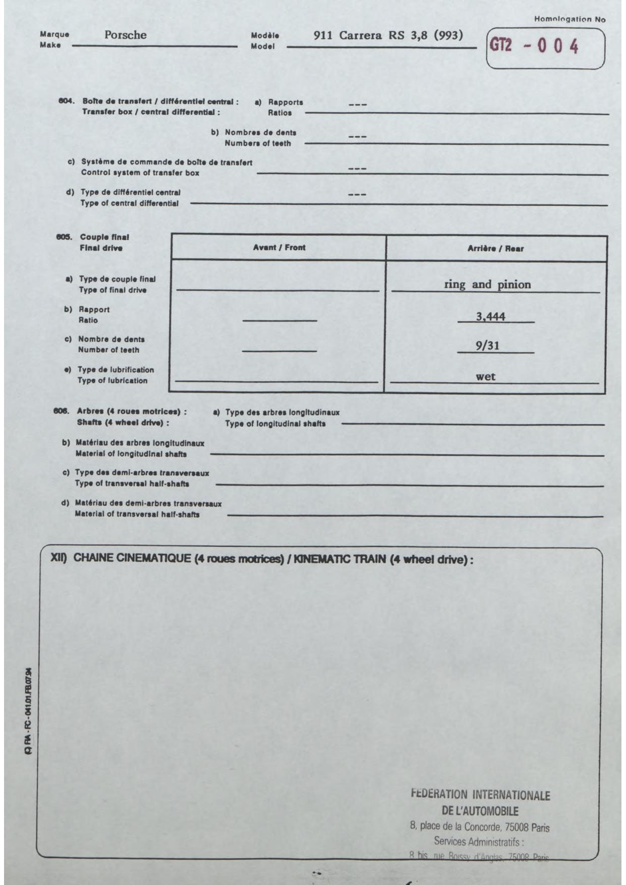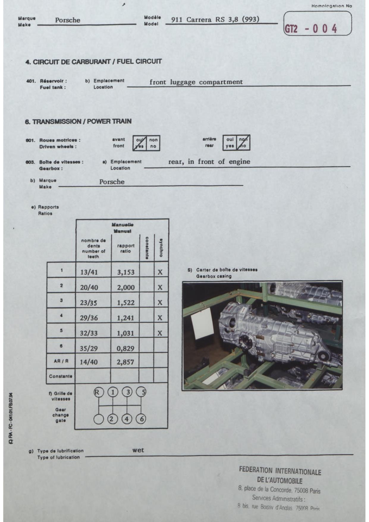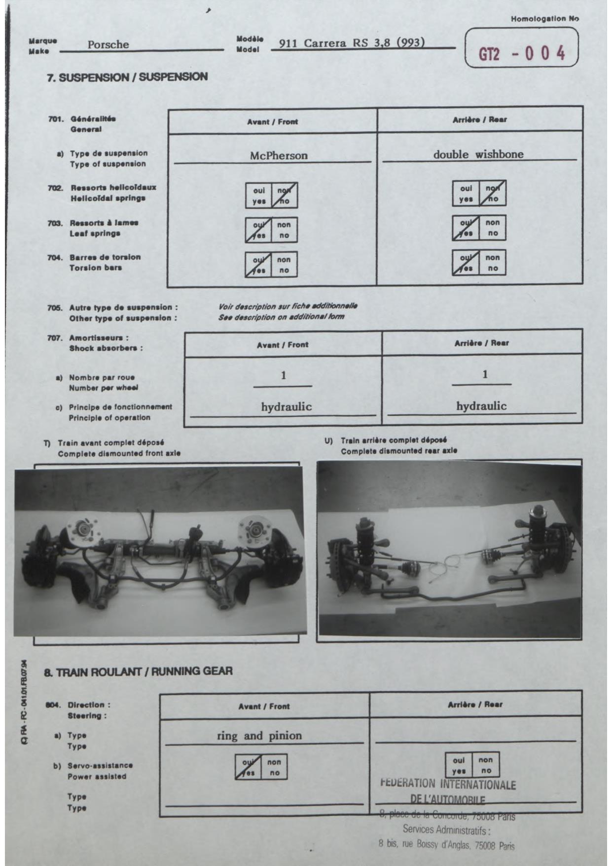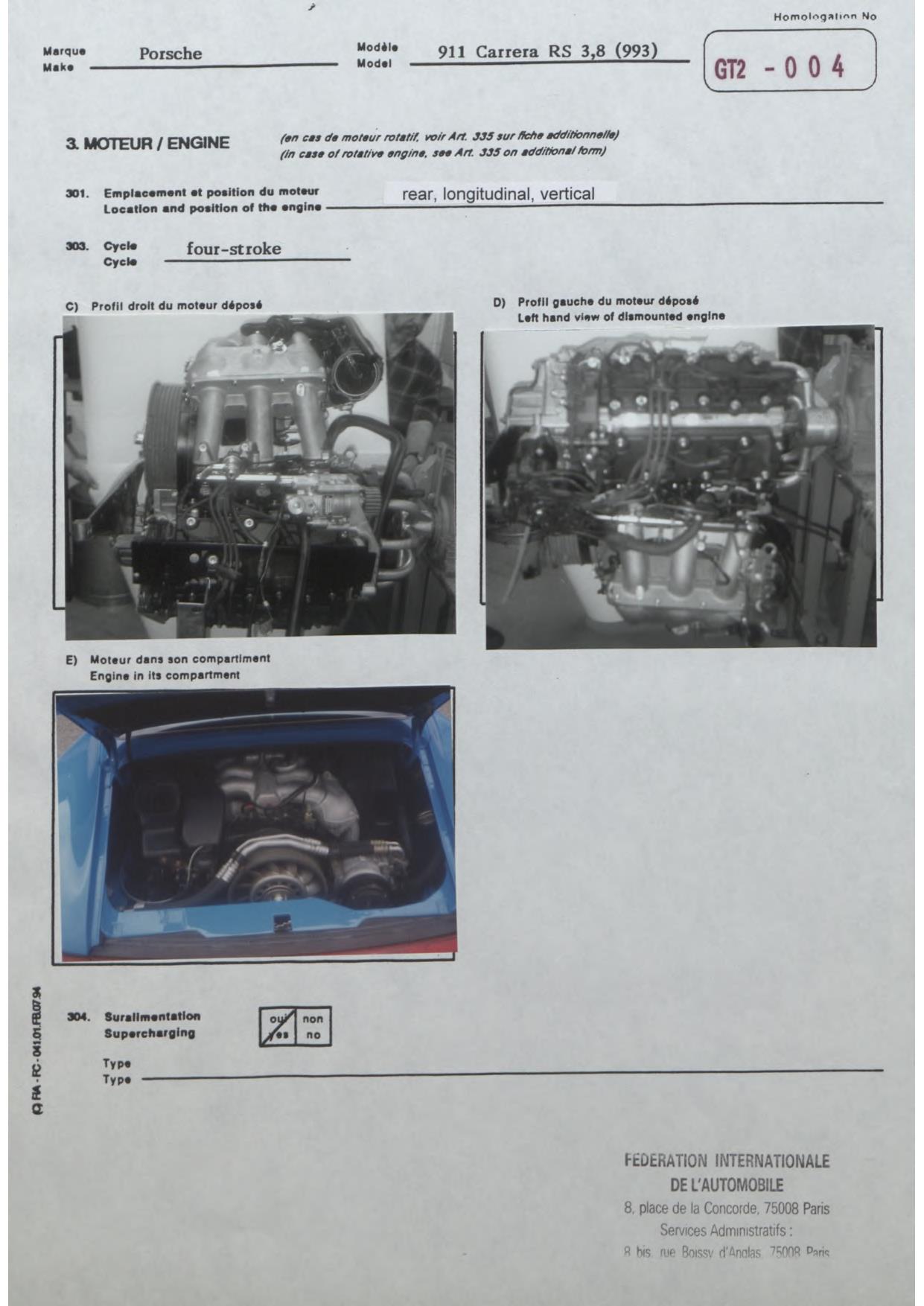 FIA Homologation Protocol for Porsche-993 Carrera RS 3.8, 1996