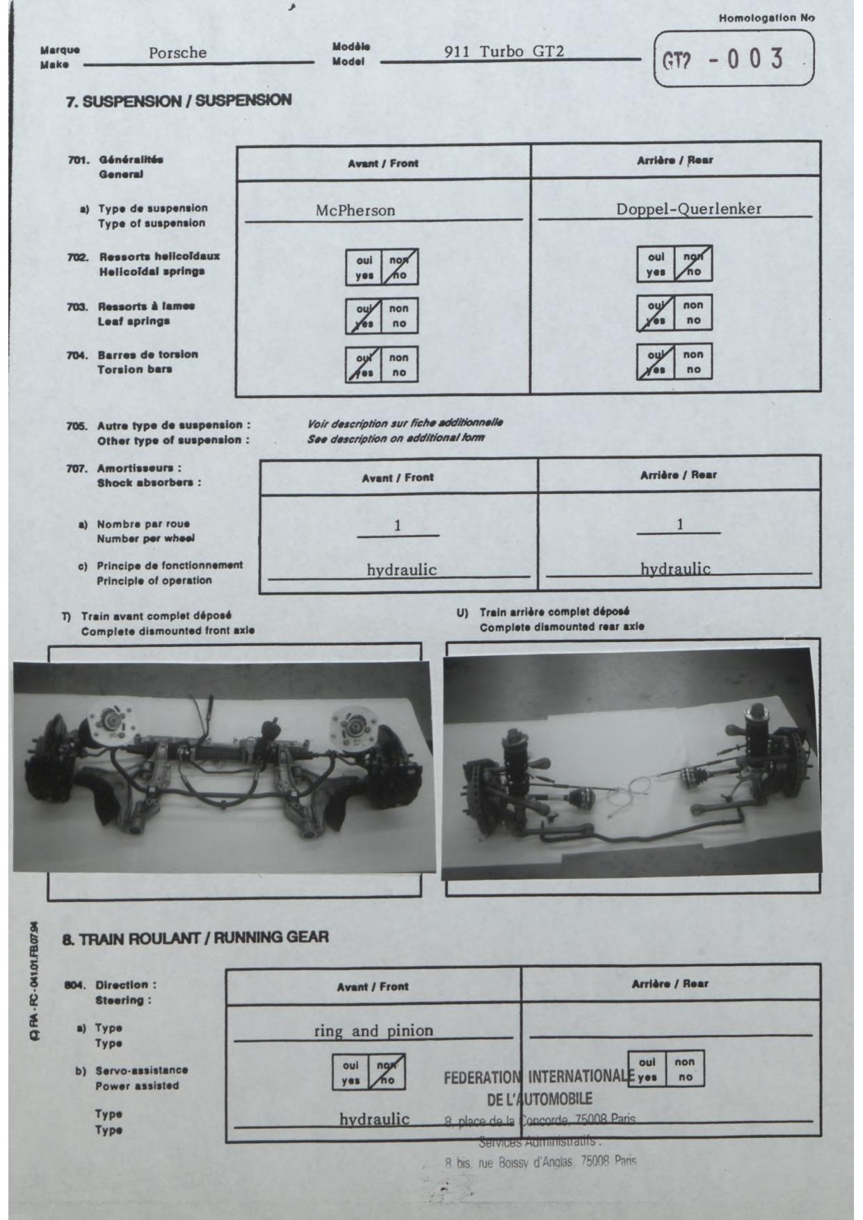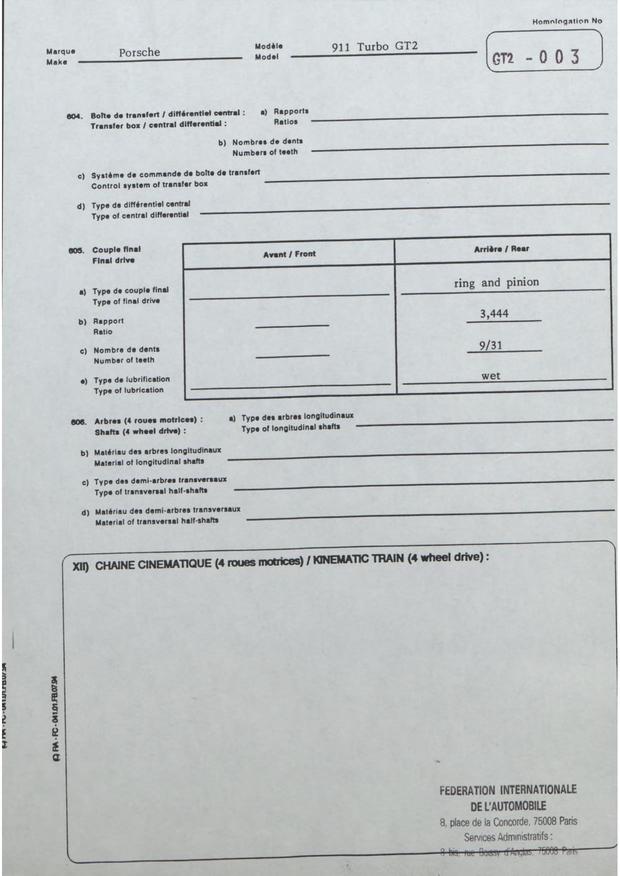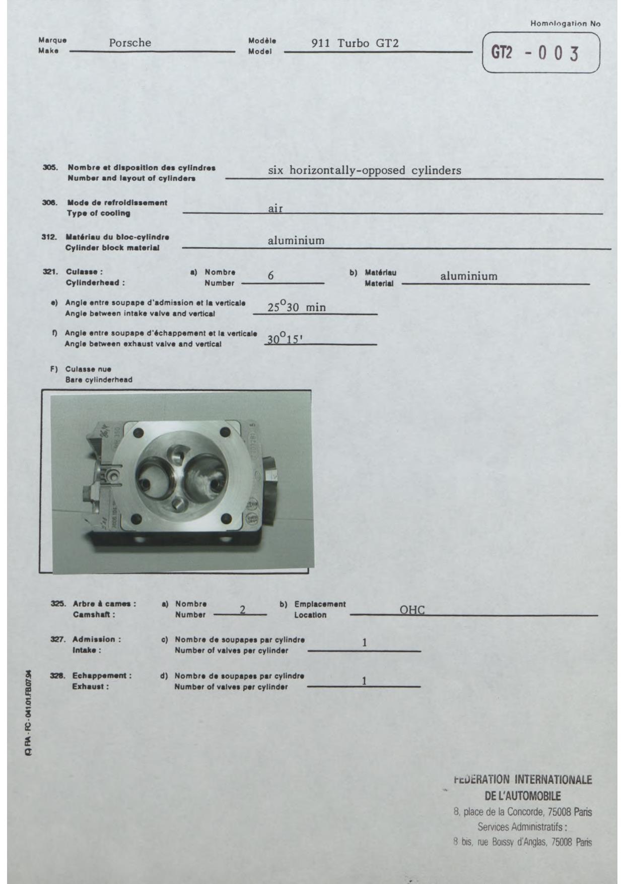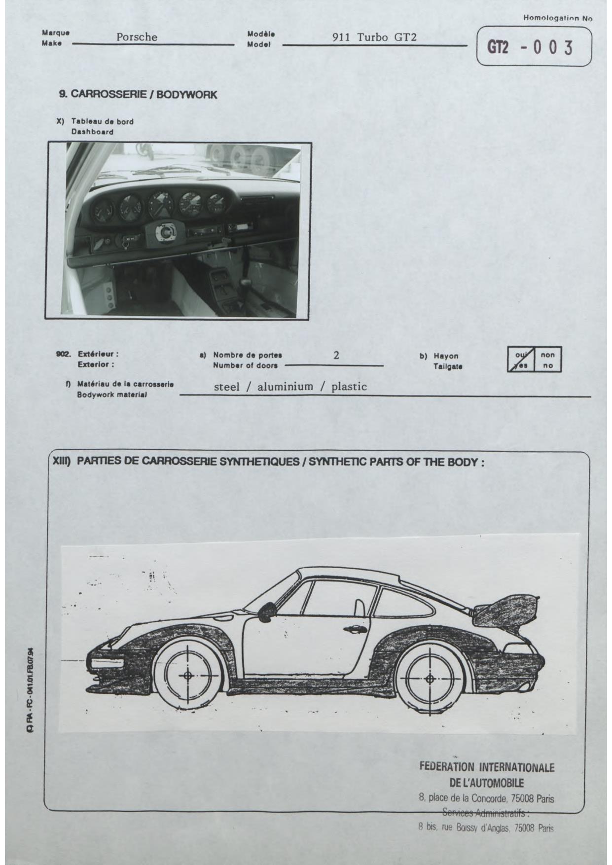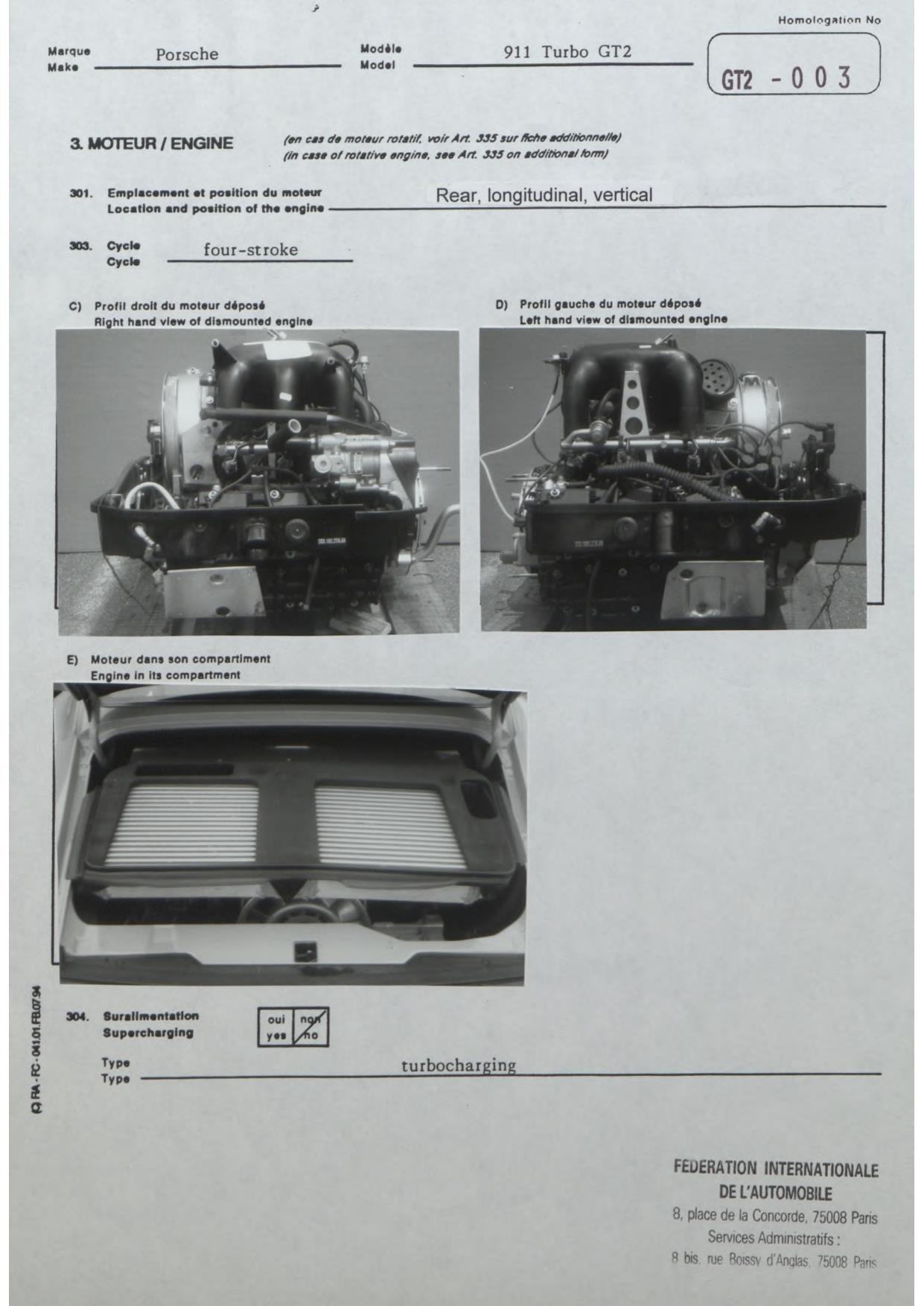 FIA Homologation Protocol for Porsche-993 GT2, 1996
