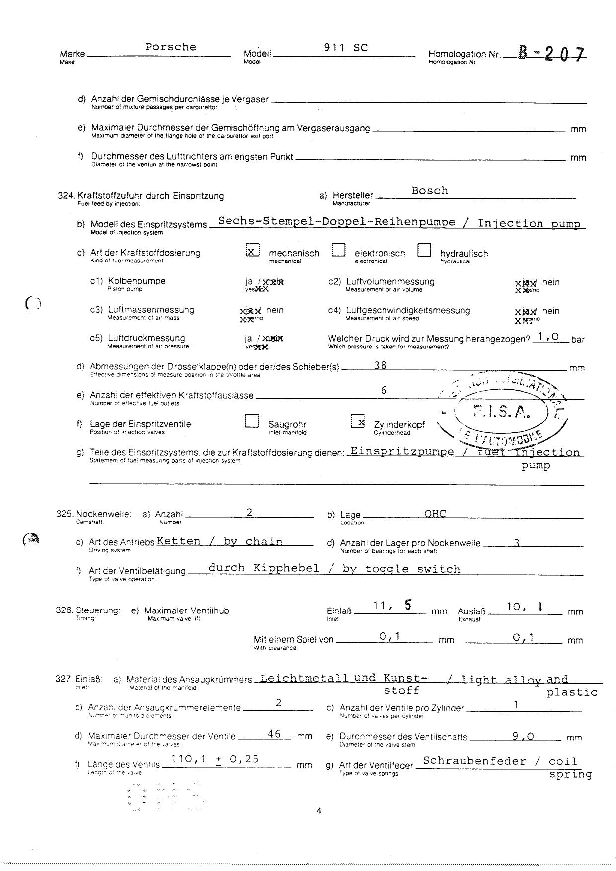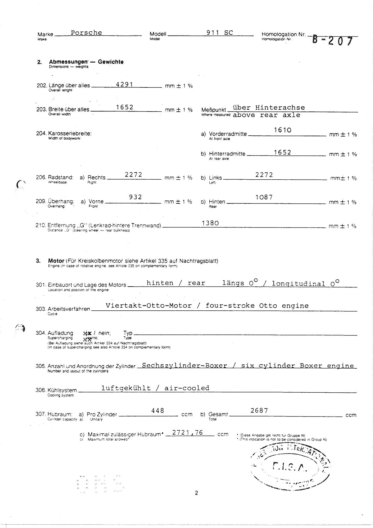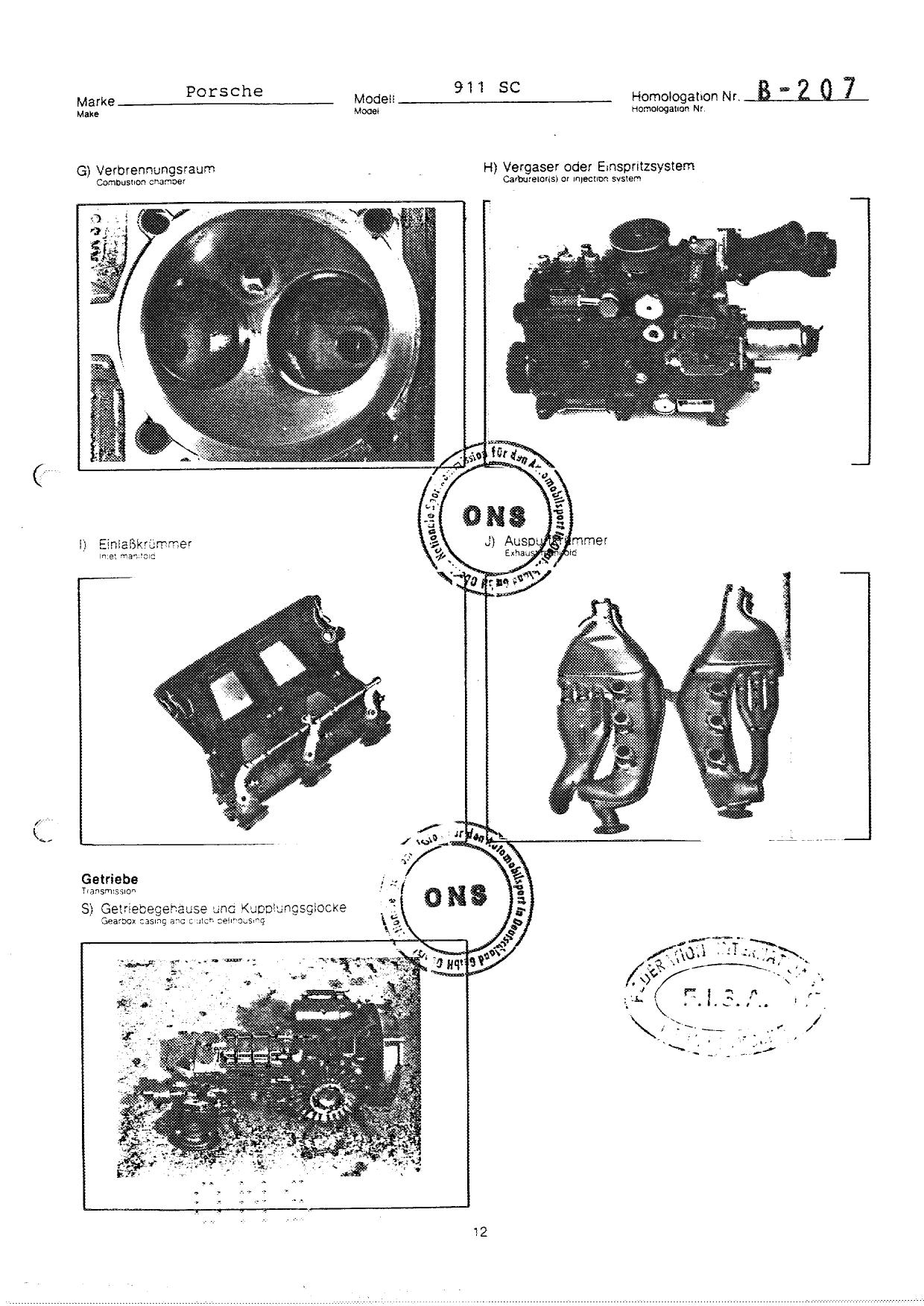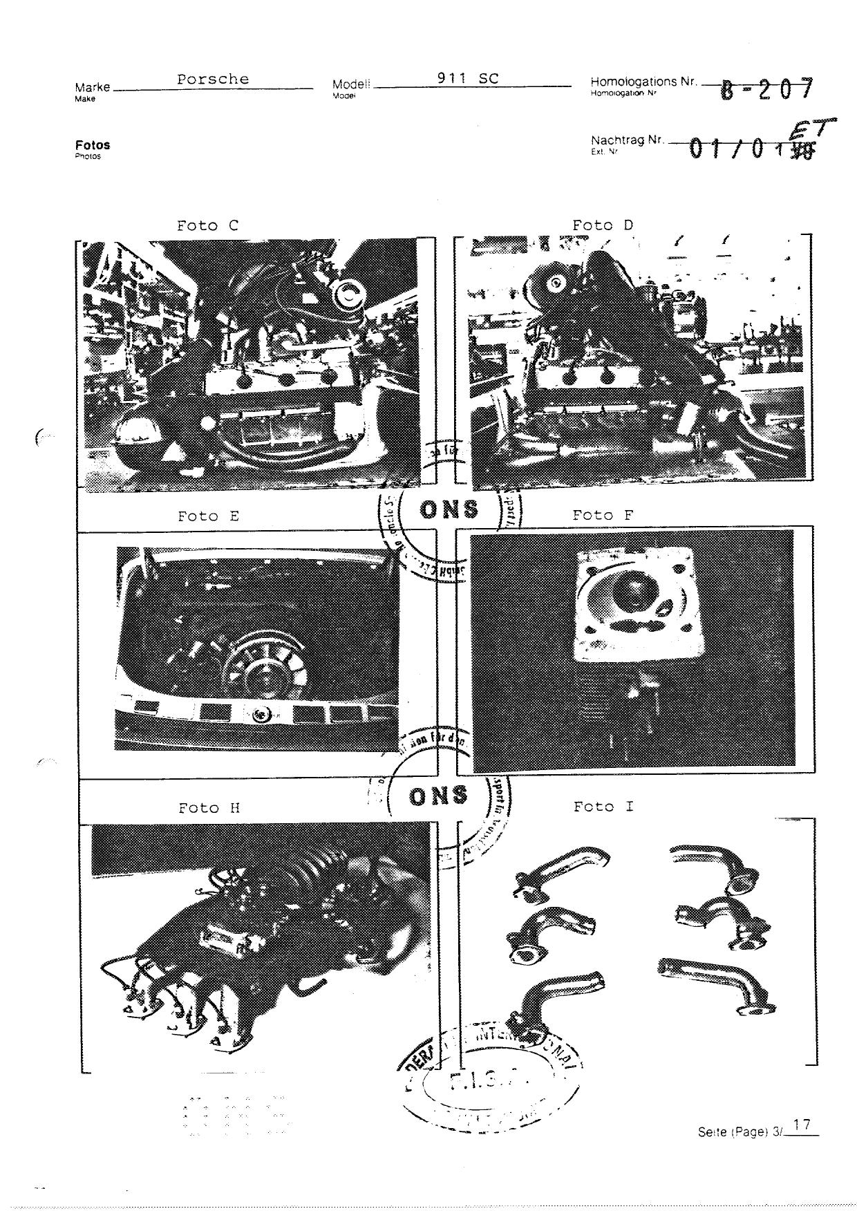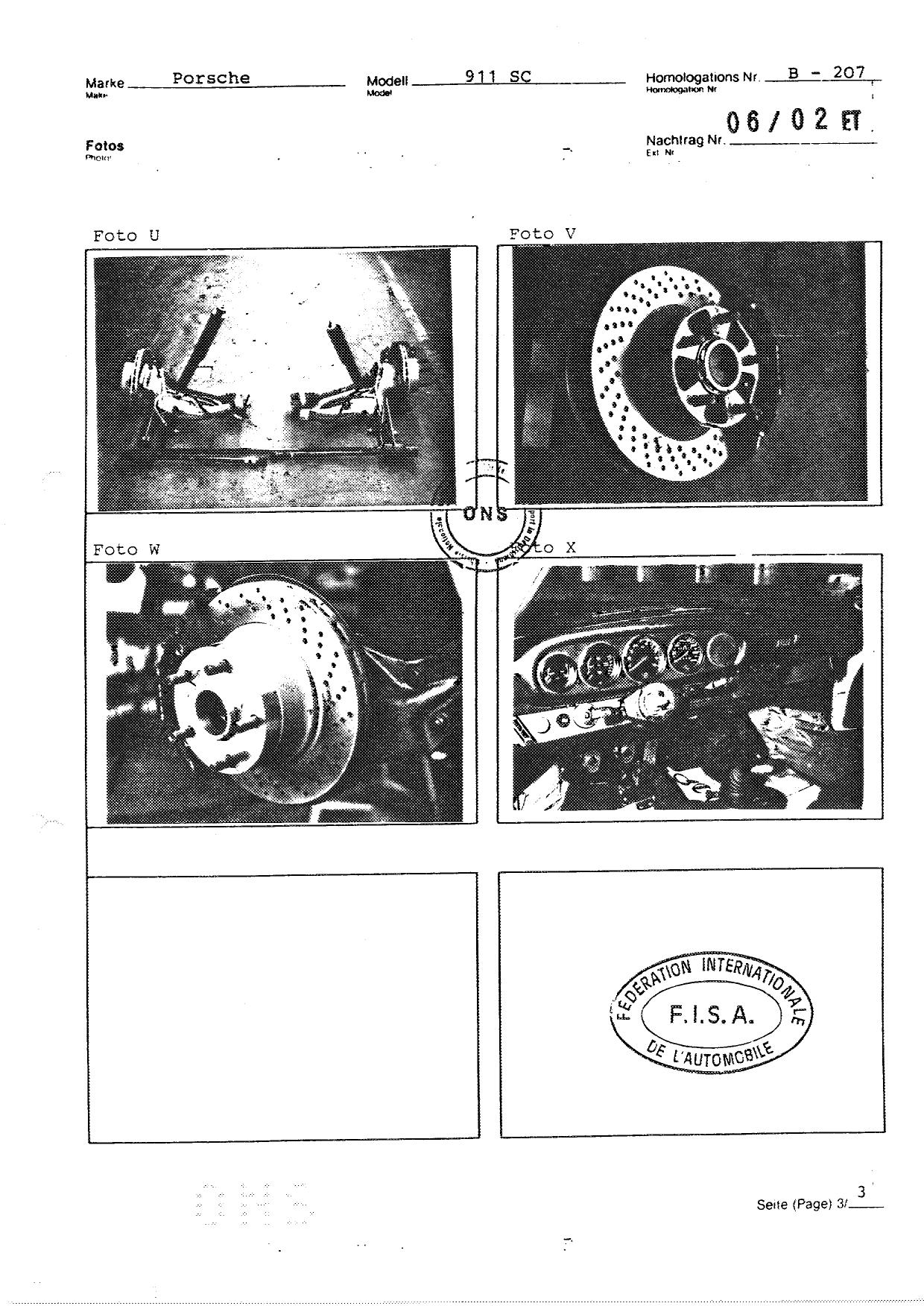 FISA Homologation Protocol for Porsche-911 SC, 1982