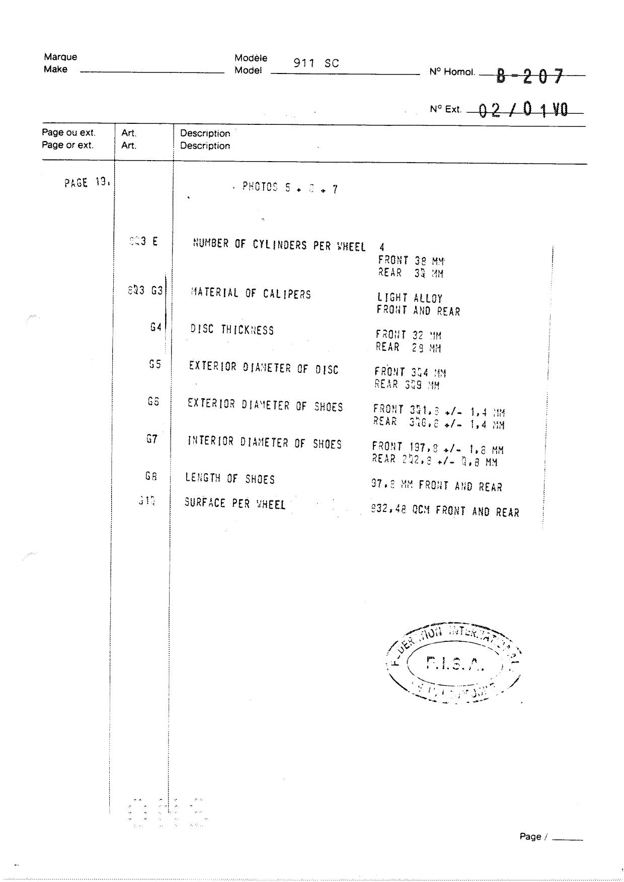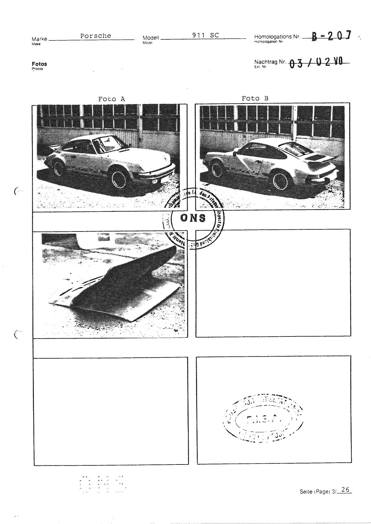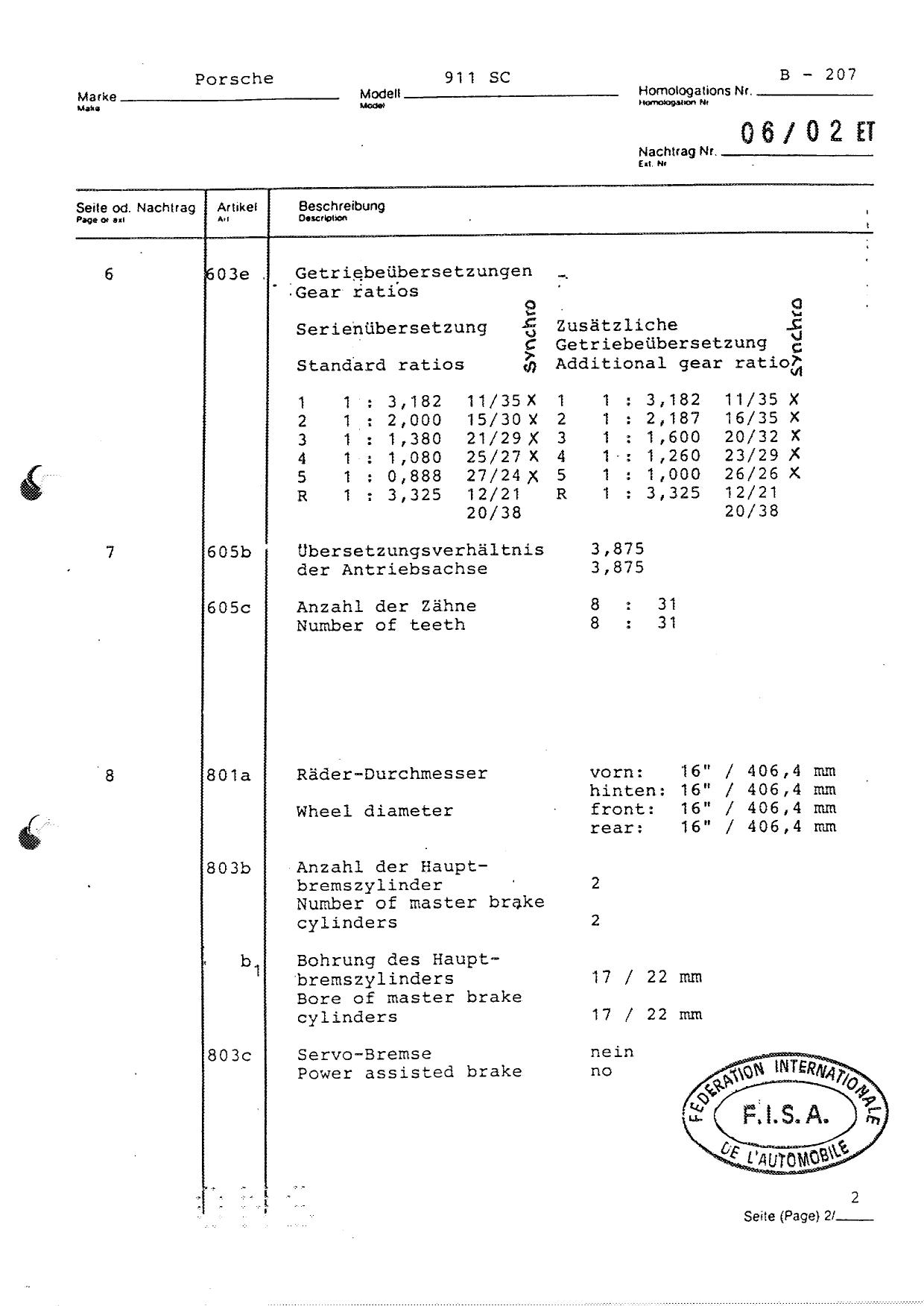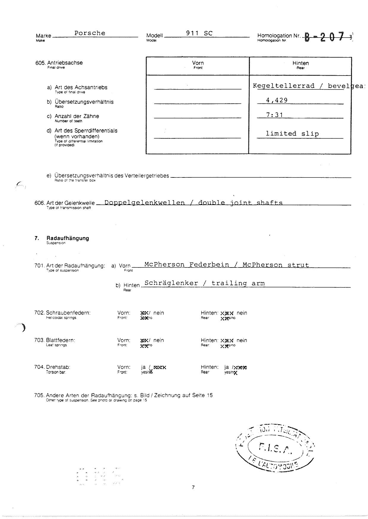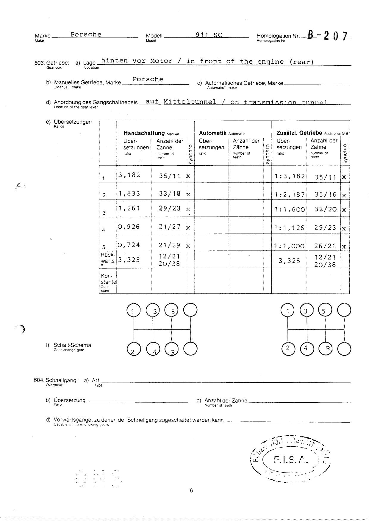 FISA Homologation Protocol for Porsche-911 SC, 1982
