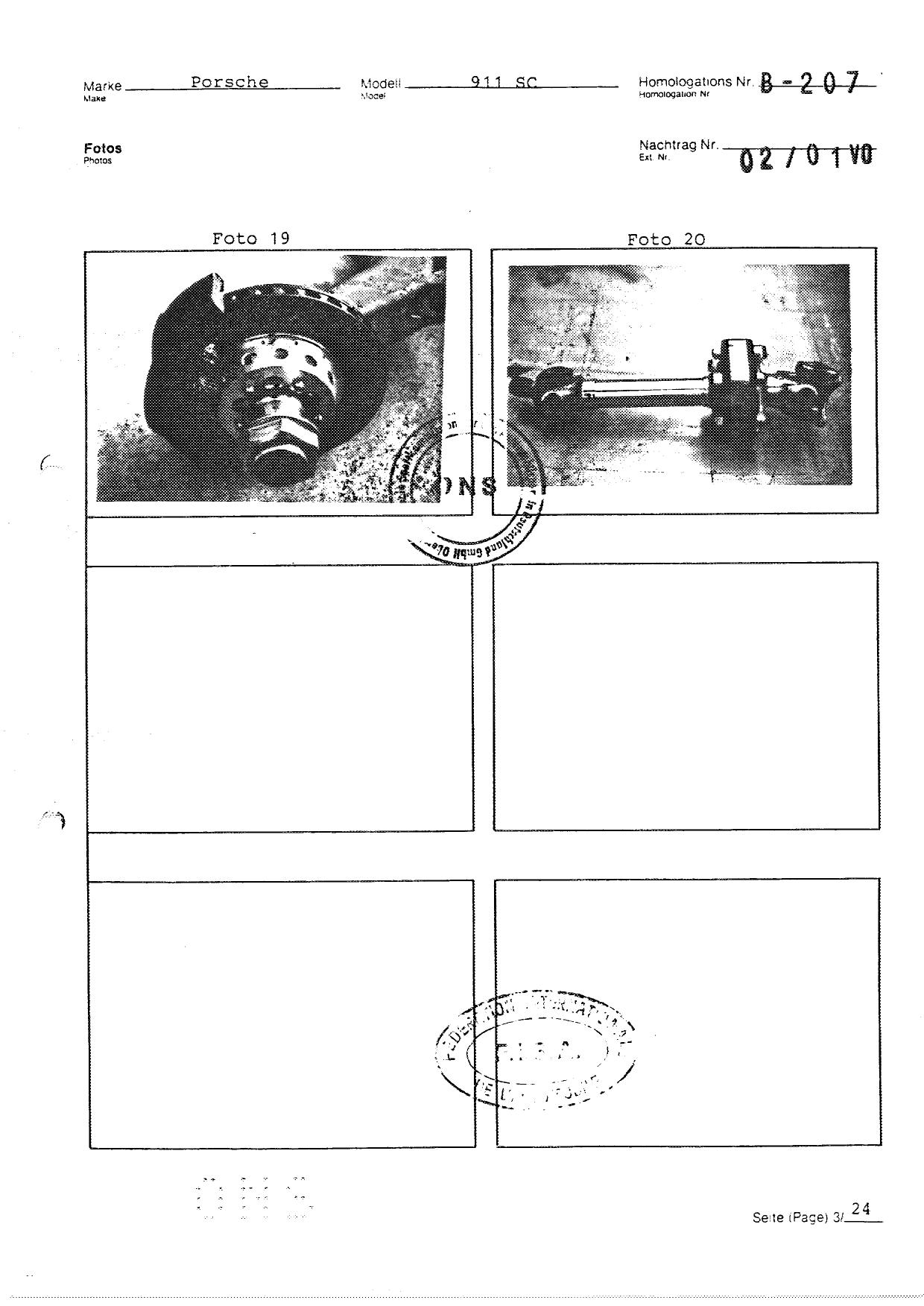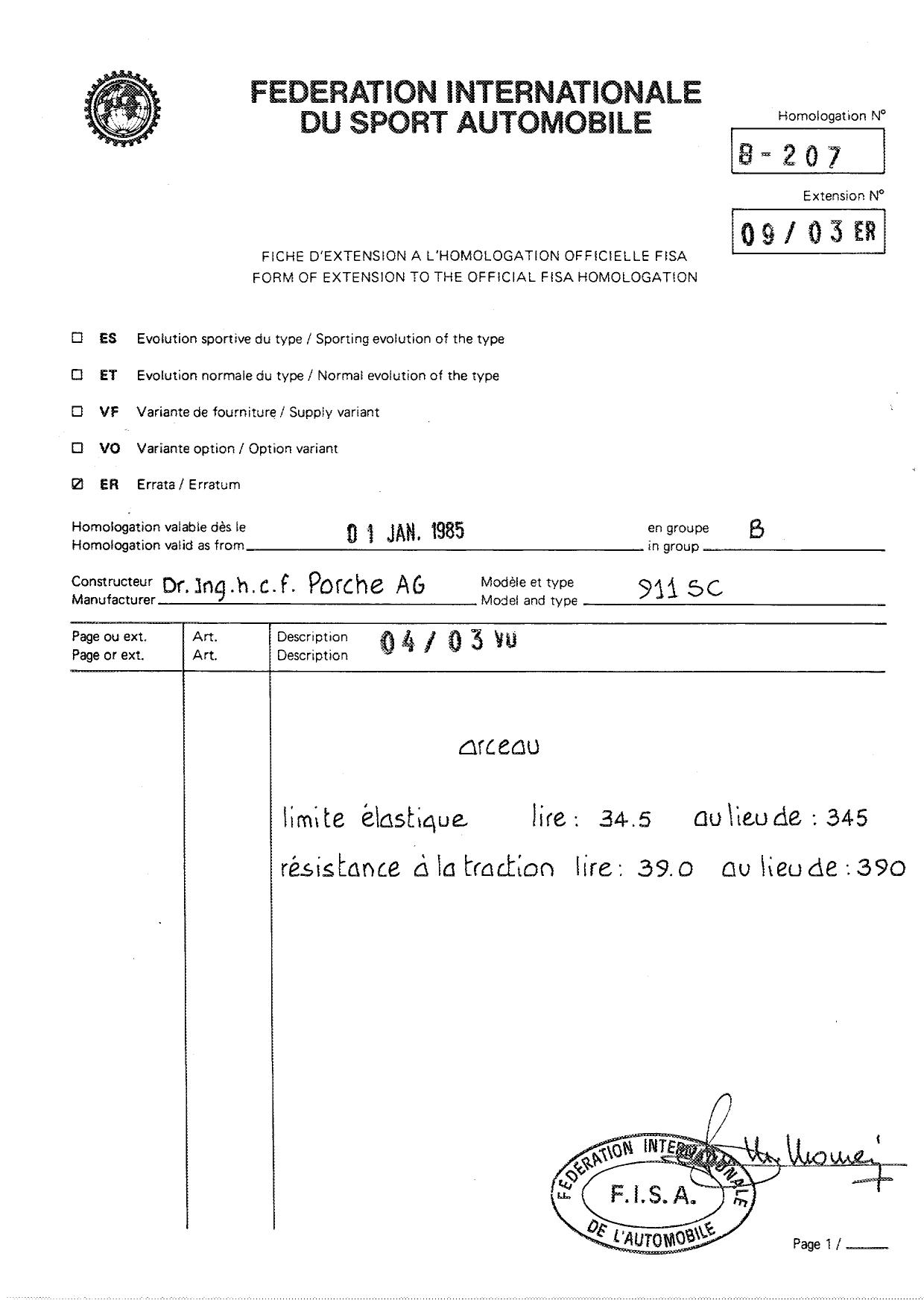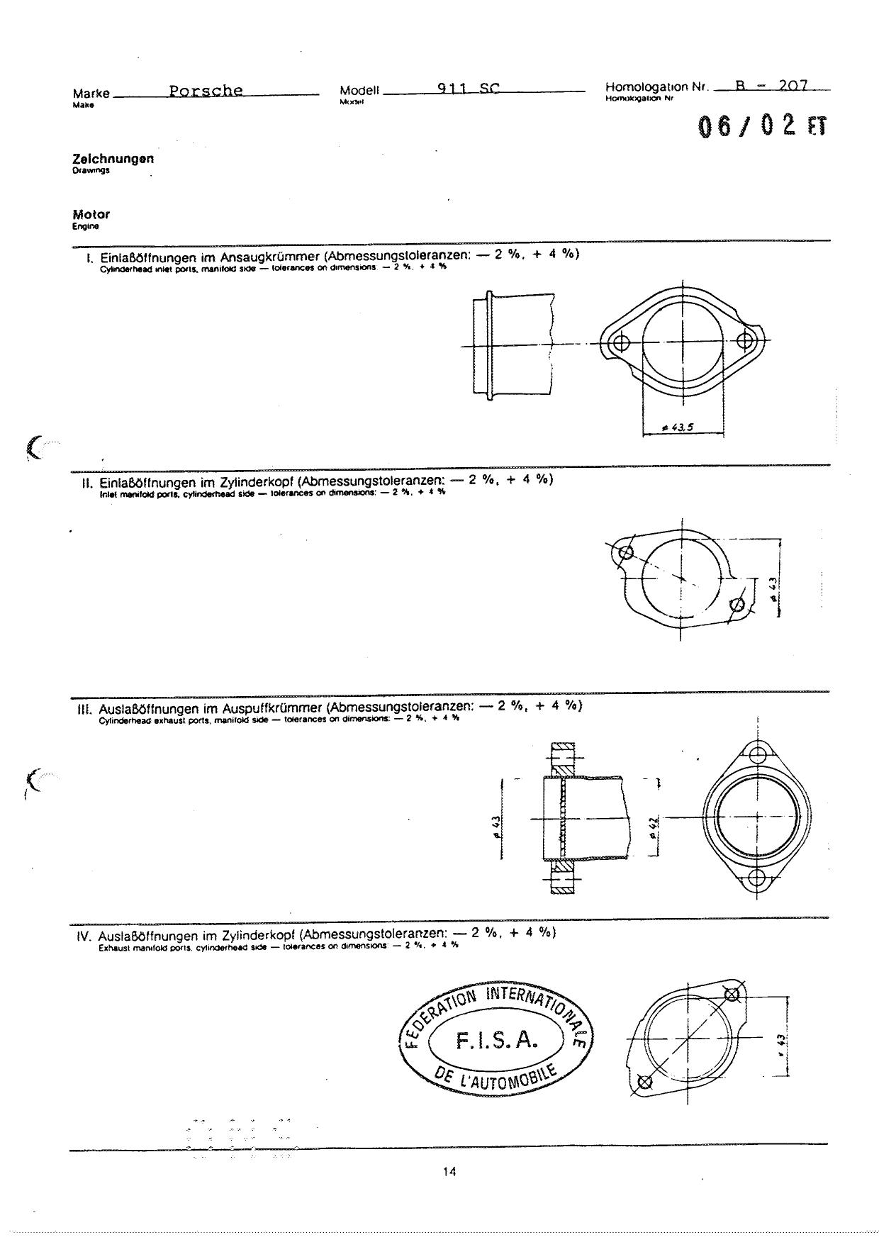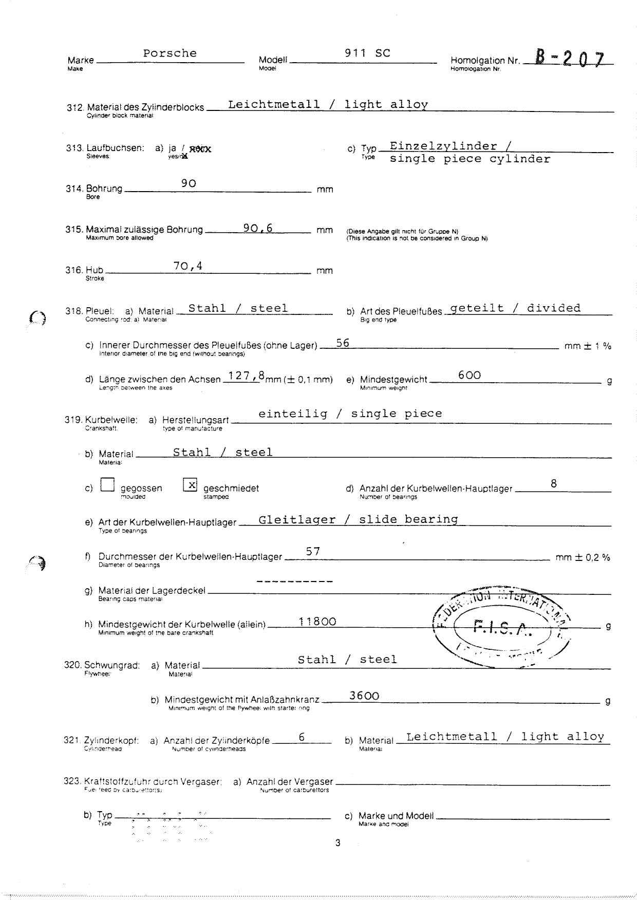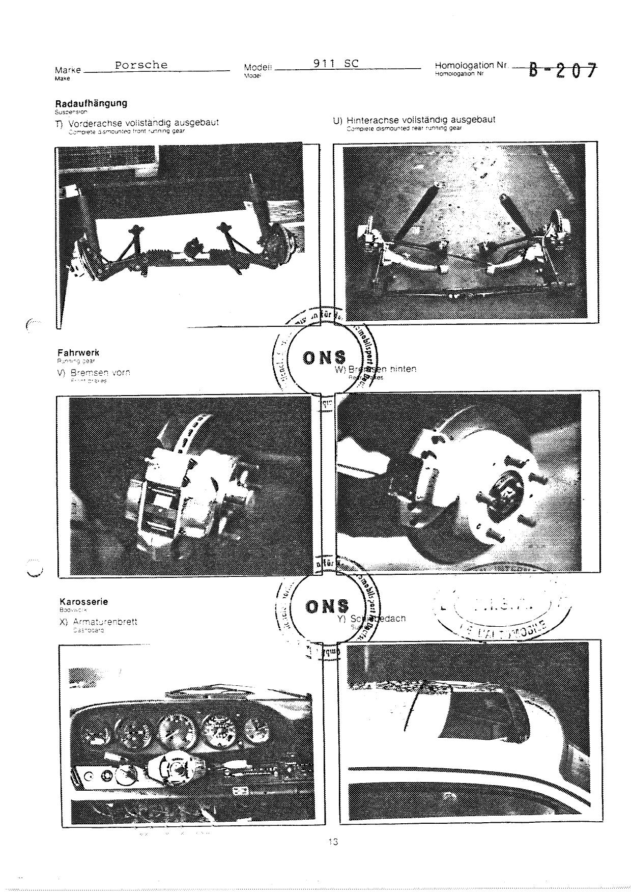 FISA Homologation Protocol for Porsche-911 SC, 1982