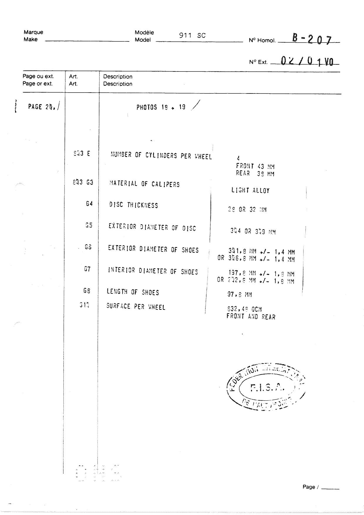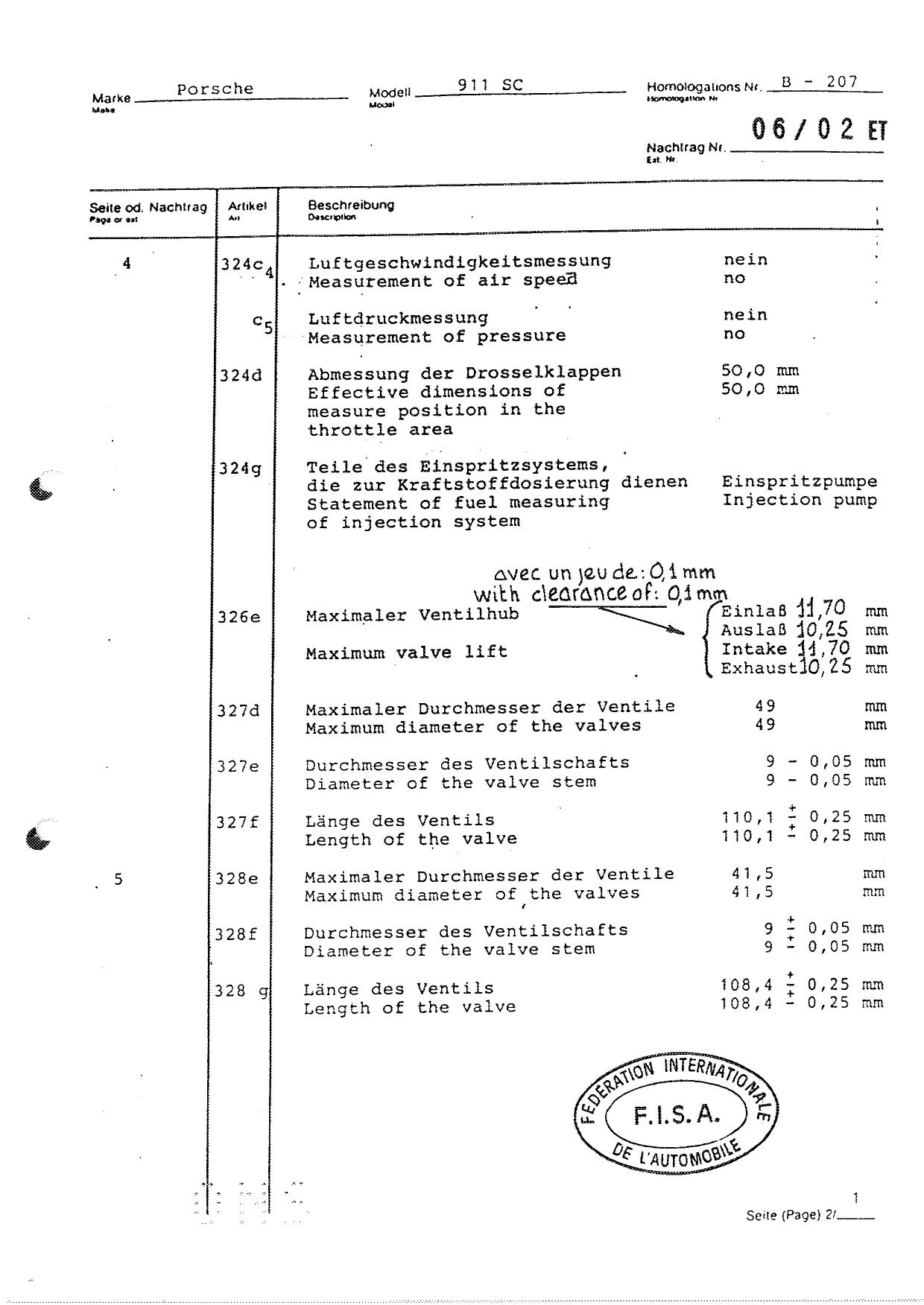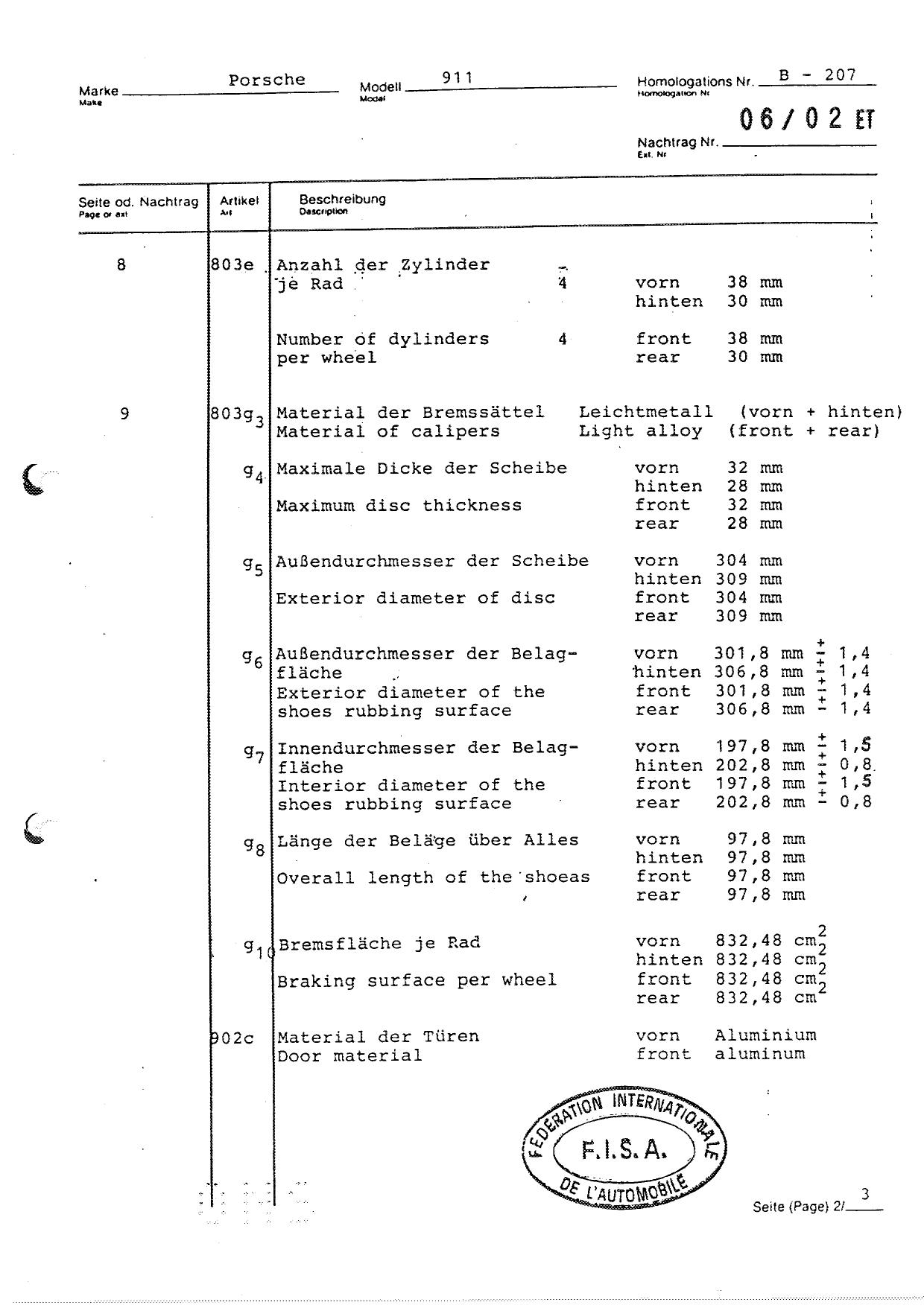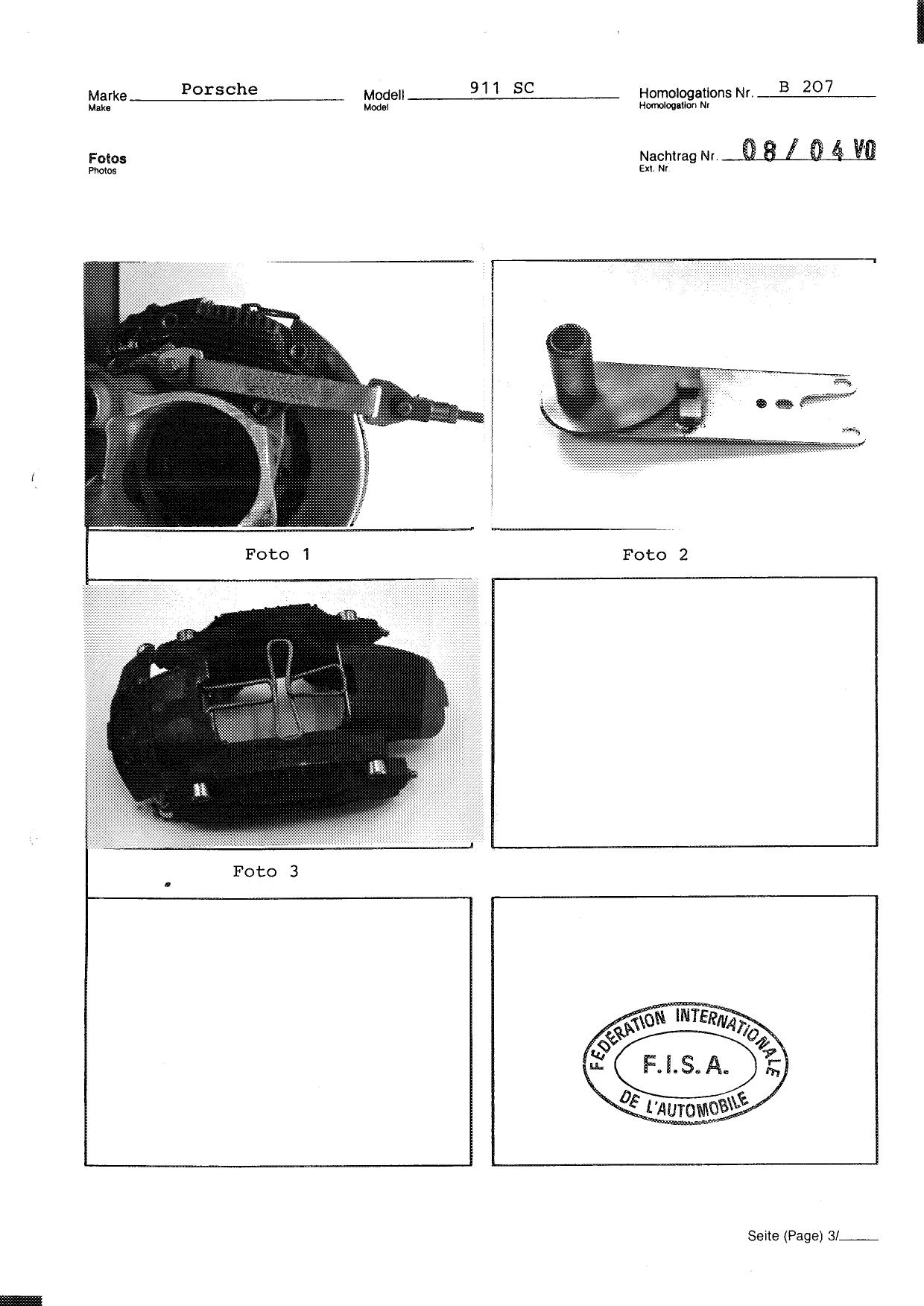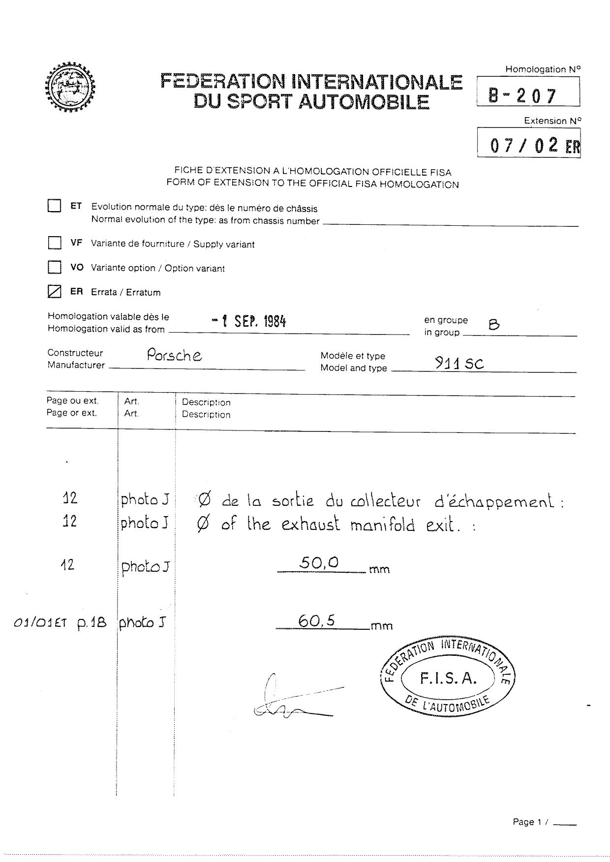 FISA Homologation Protocol for Porsche-911 SC, 1982