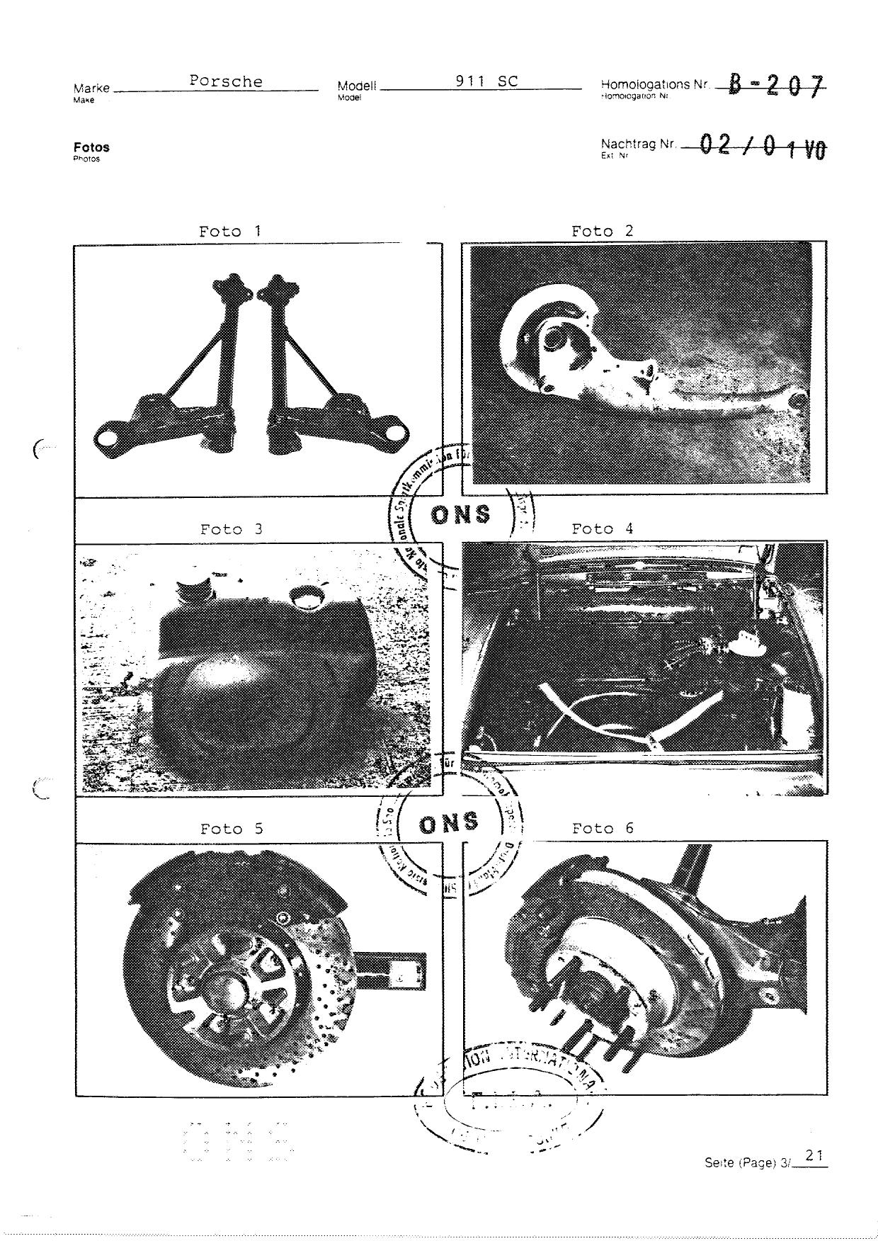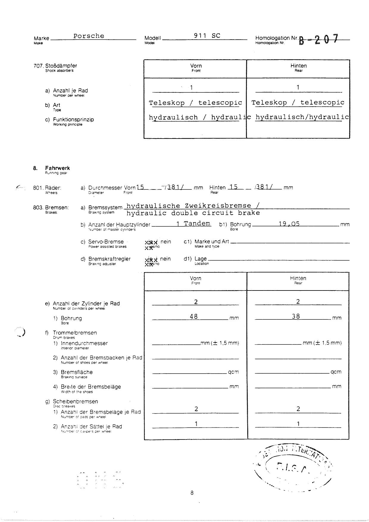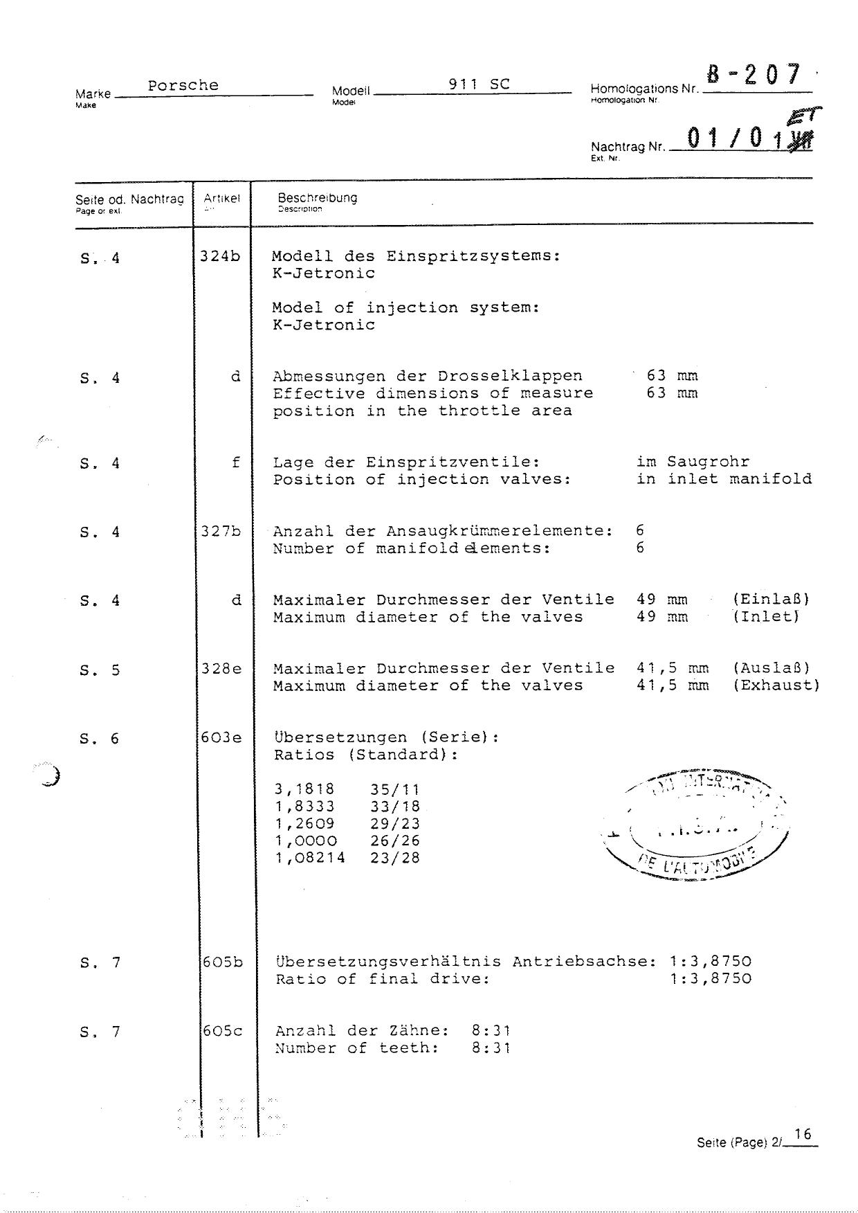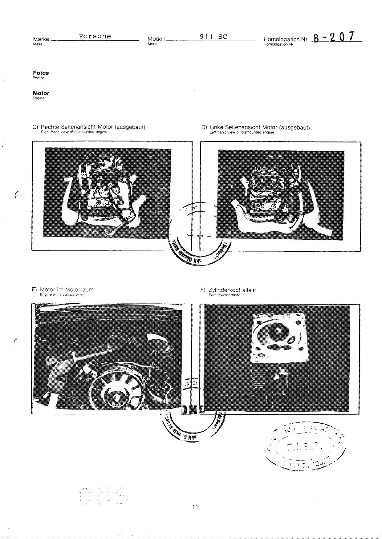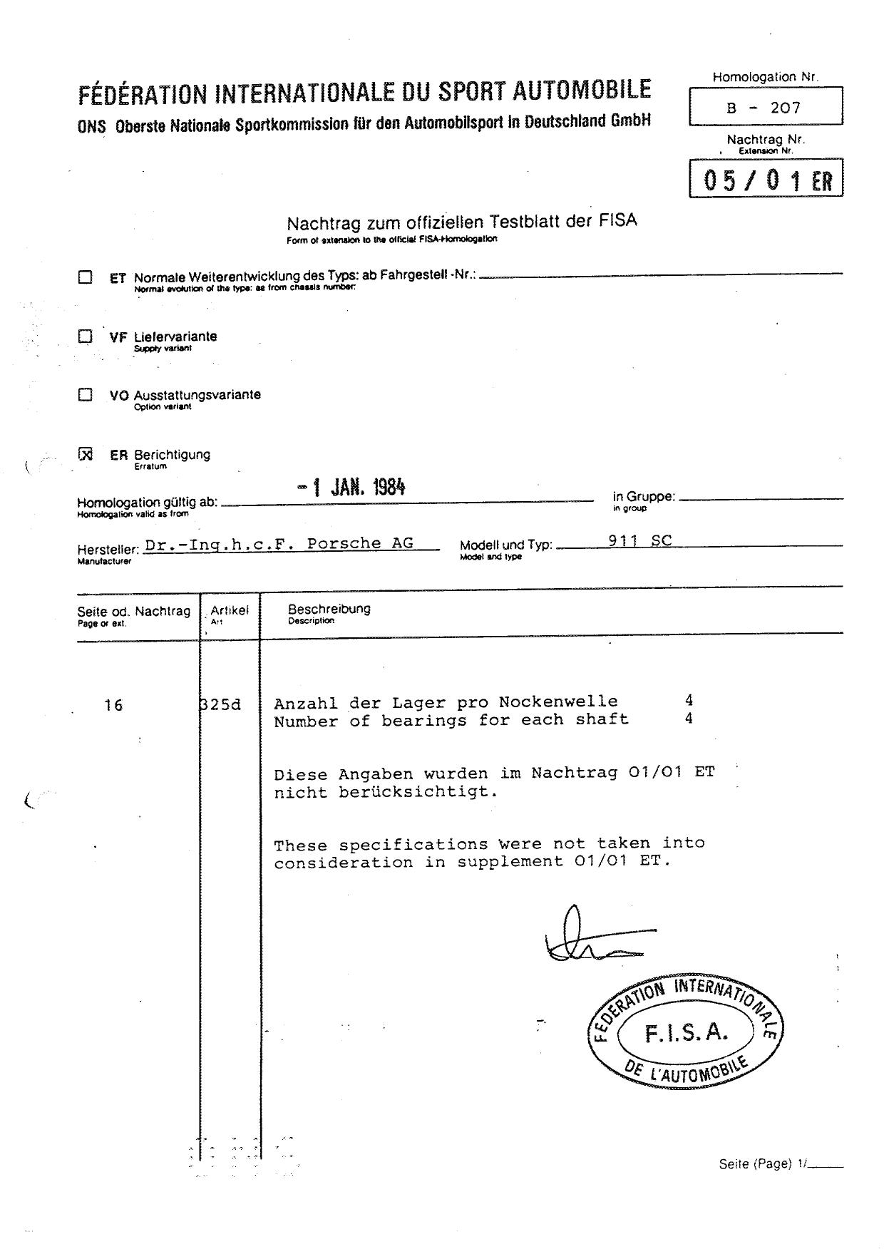 FISA Homologation Protocol for Porsche-911 SC, 1982