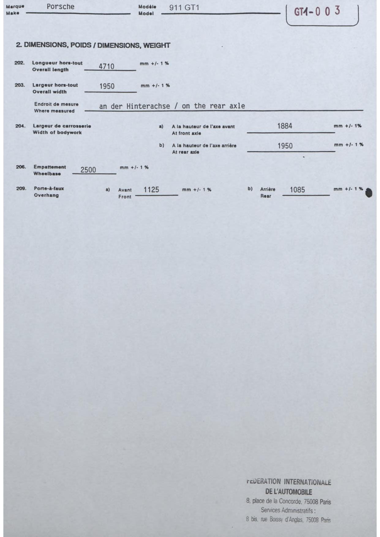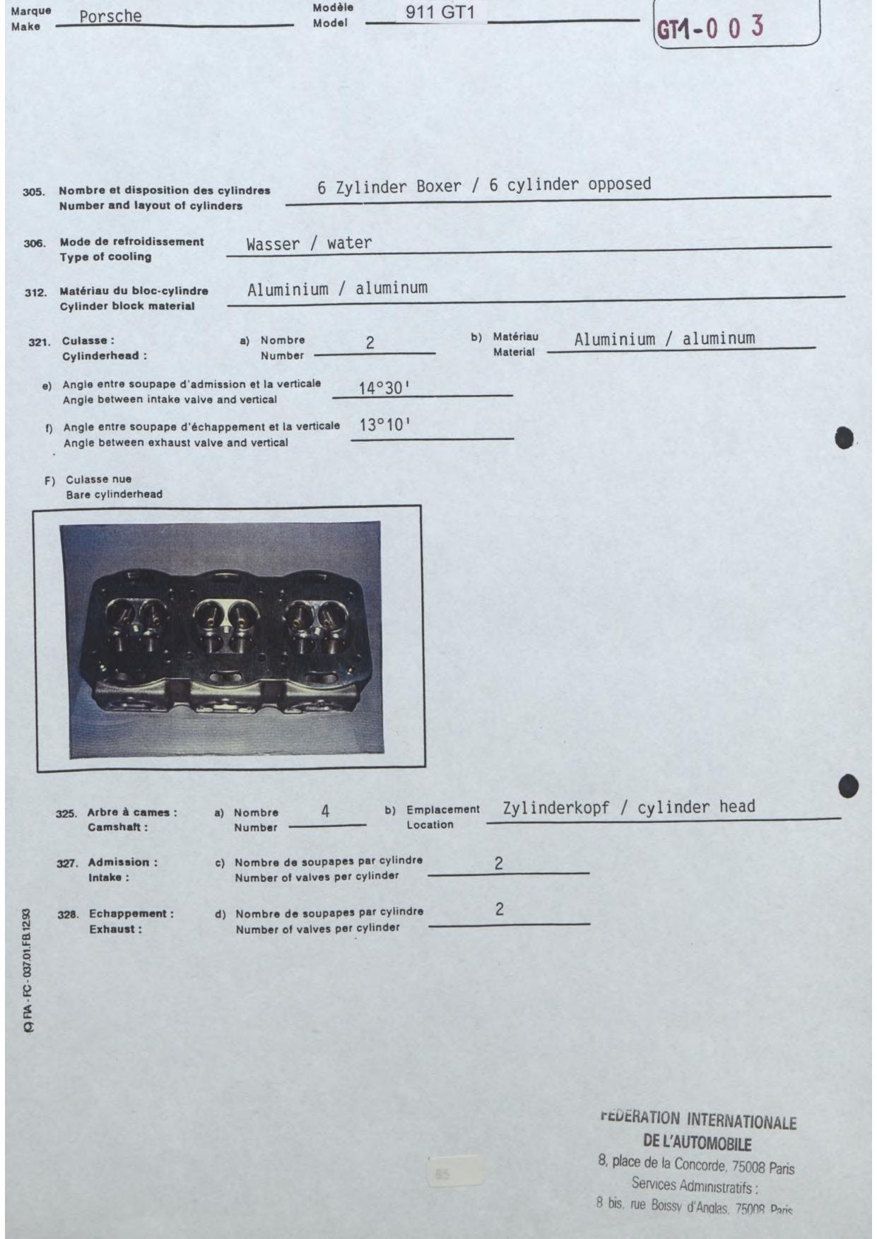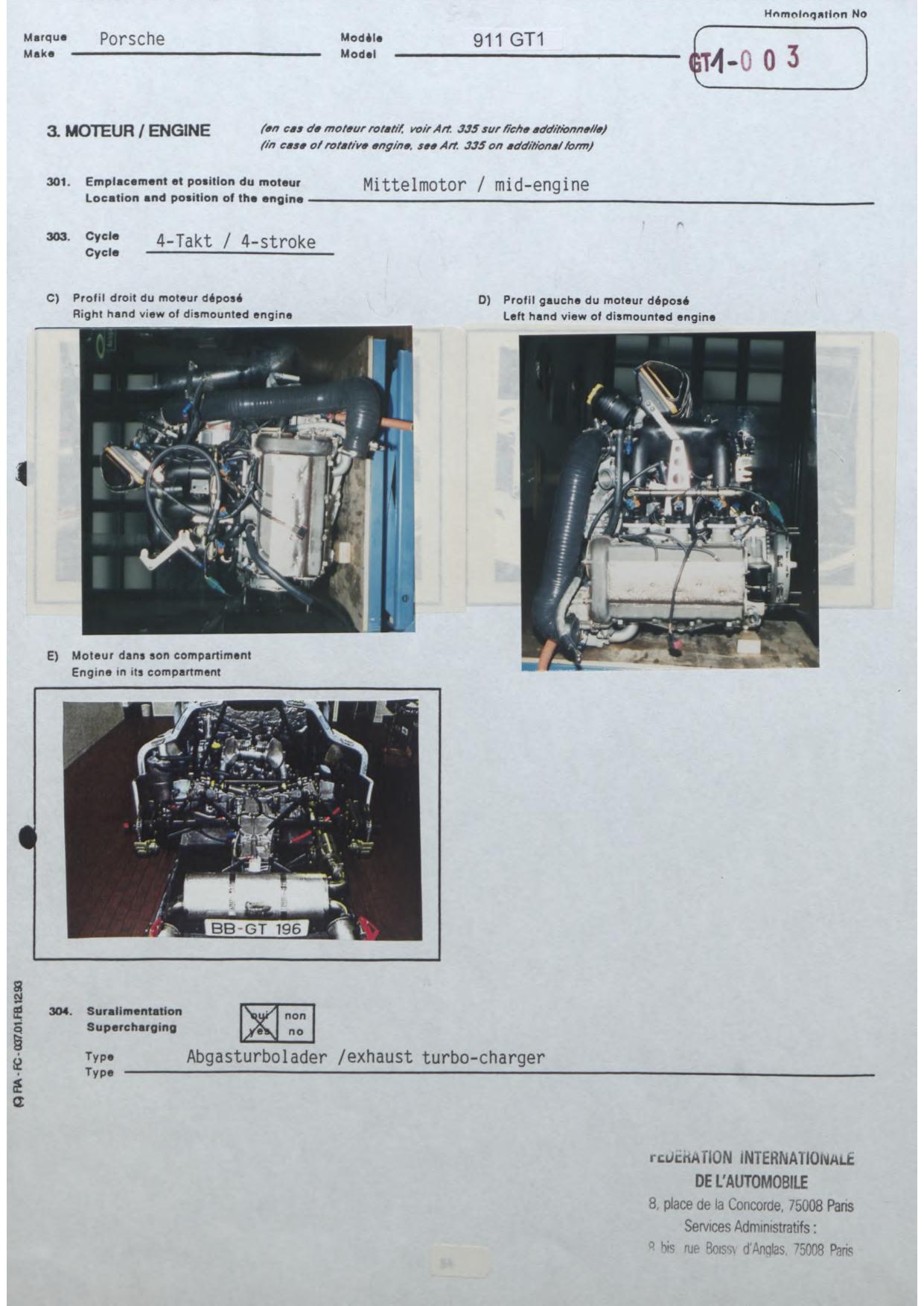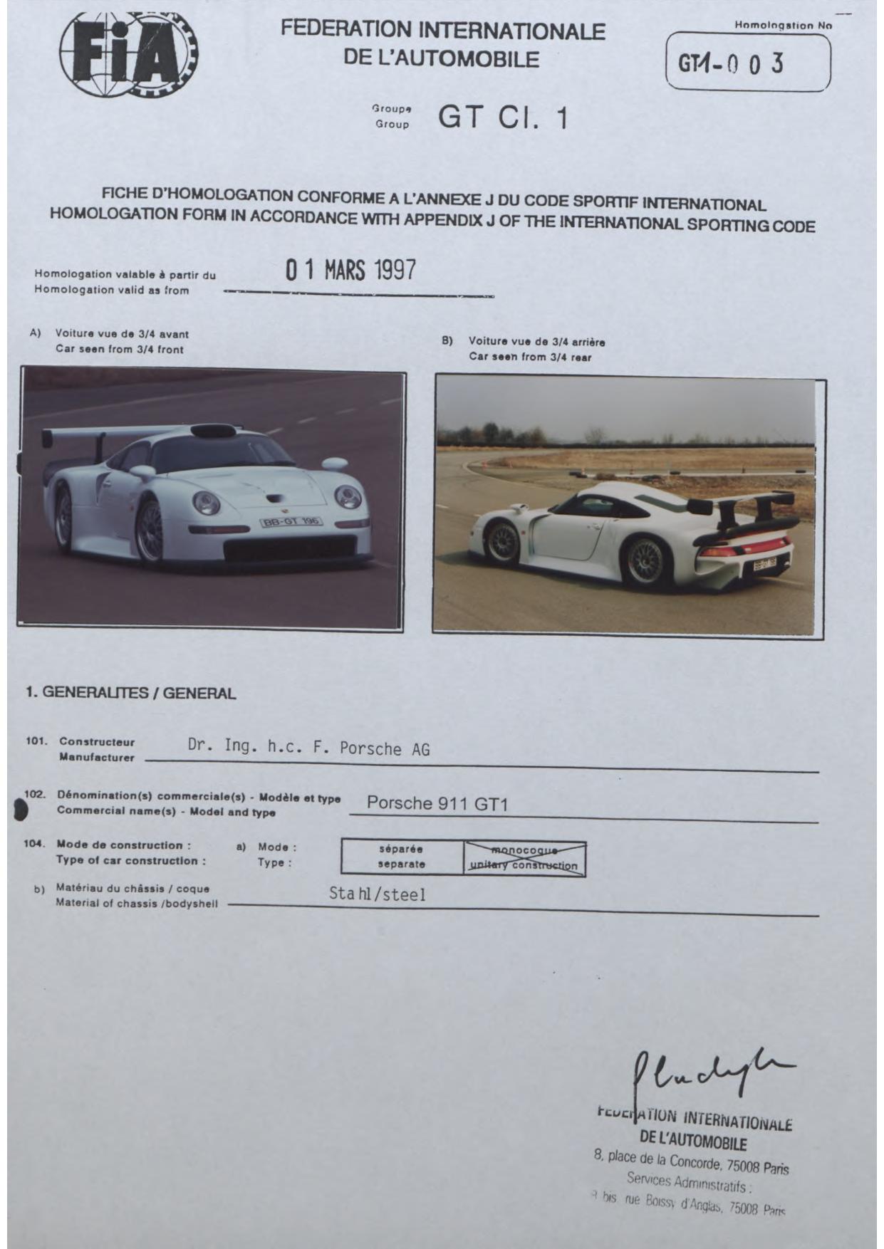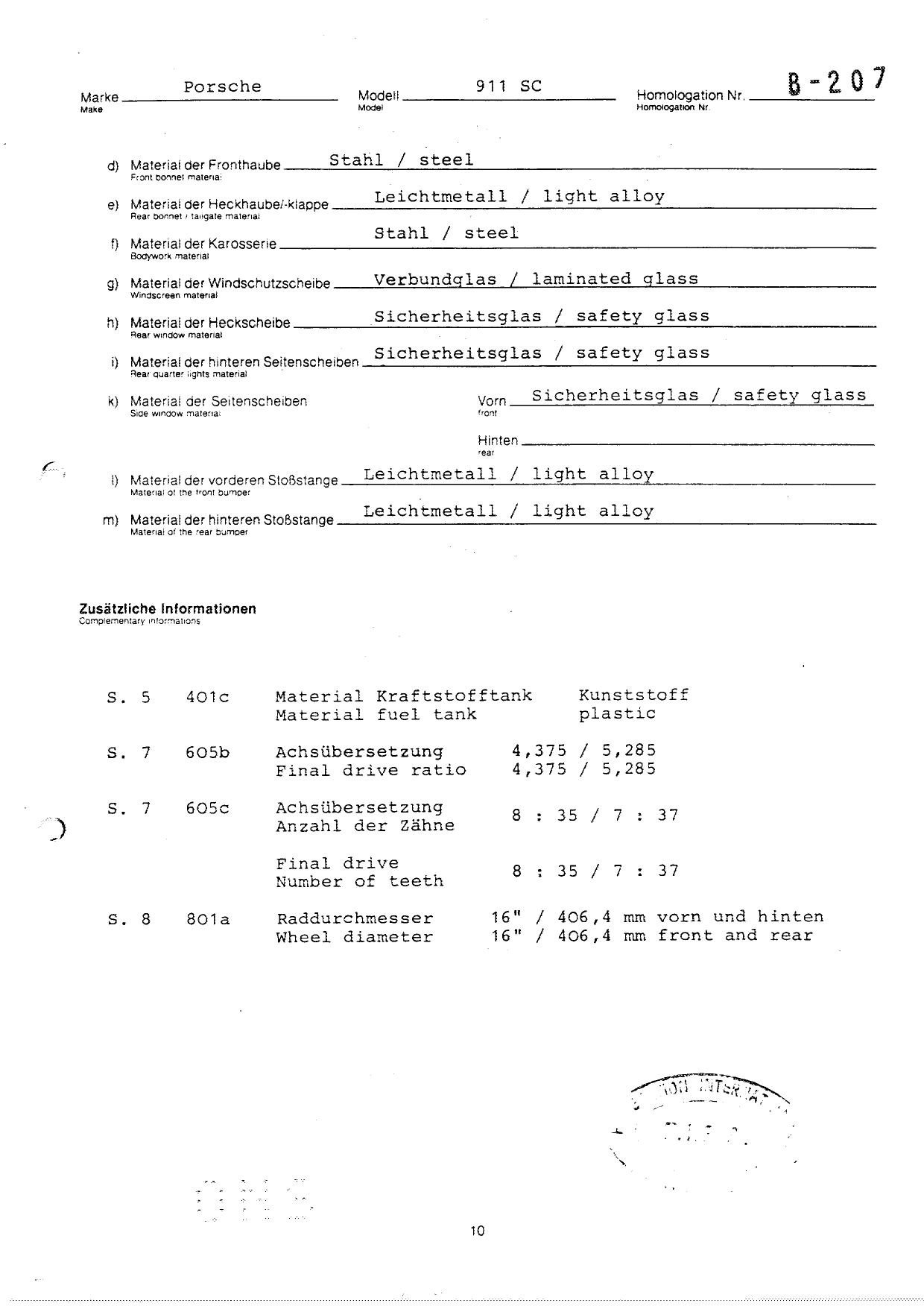 FISA Homologation Protocol for Porsche-911 SC, 1982