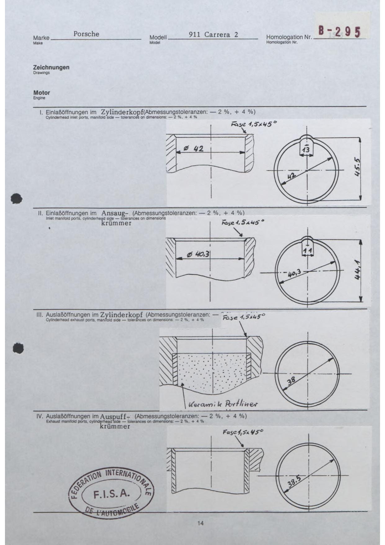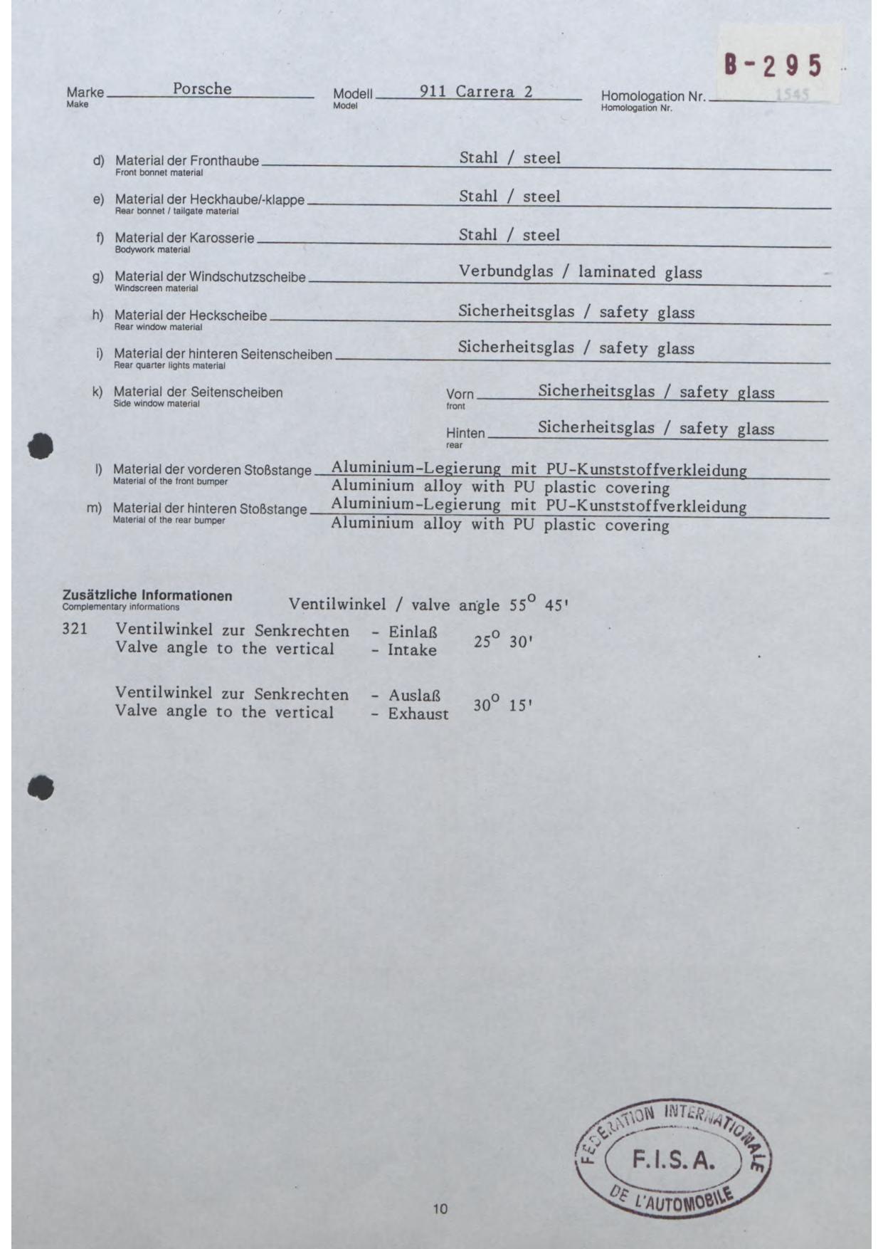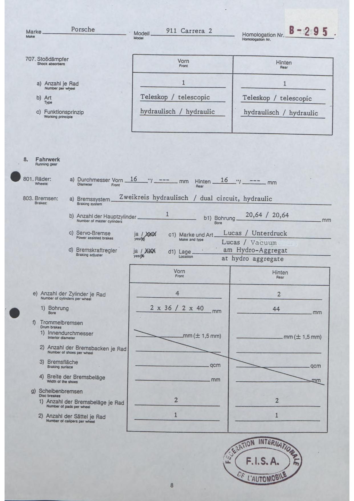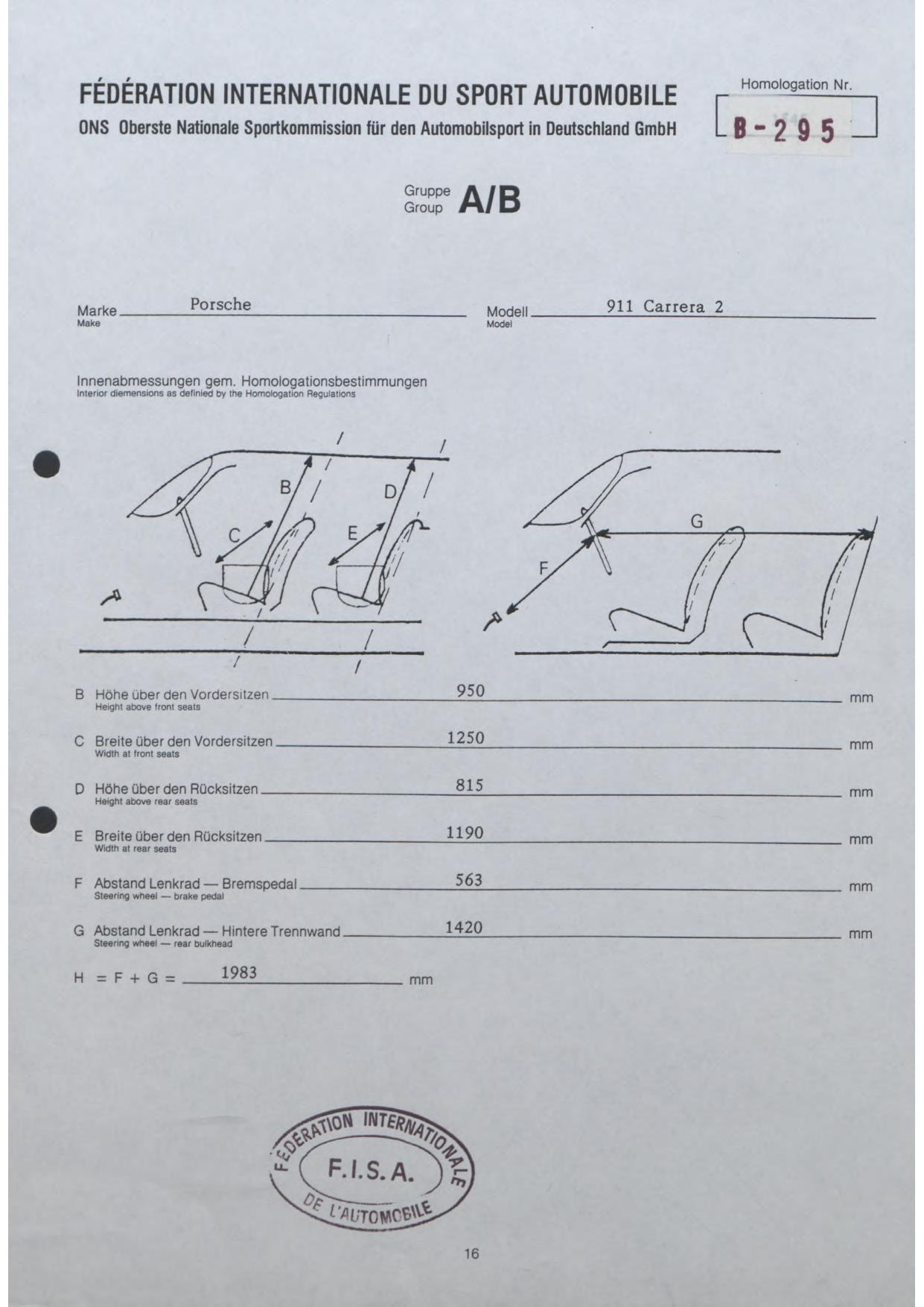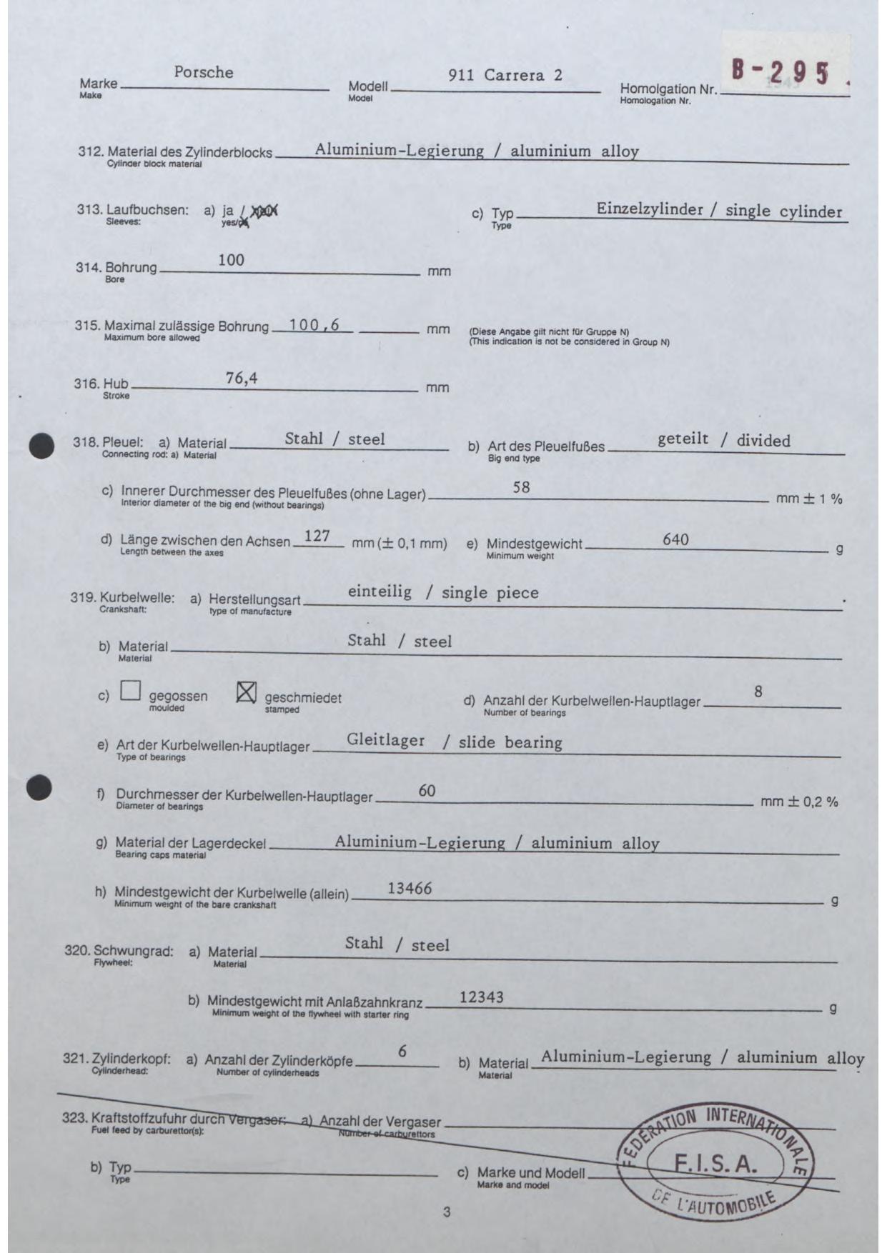 FISA Homologation Protocol for Porsche-964 Carrera 2, 1990