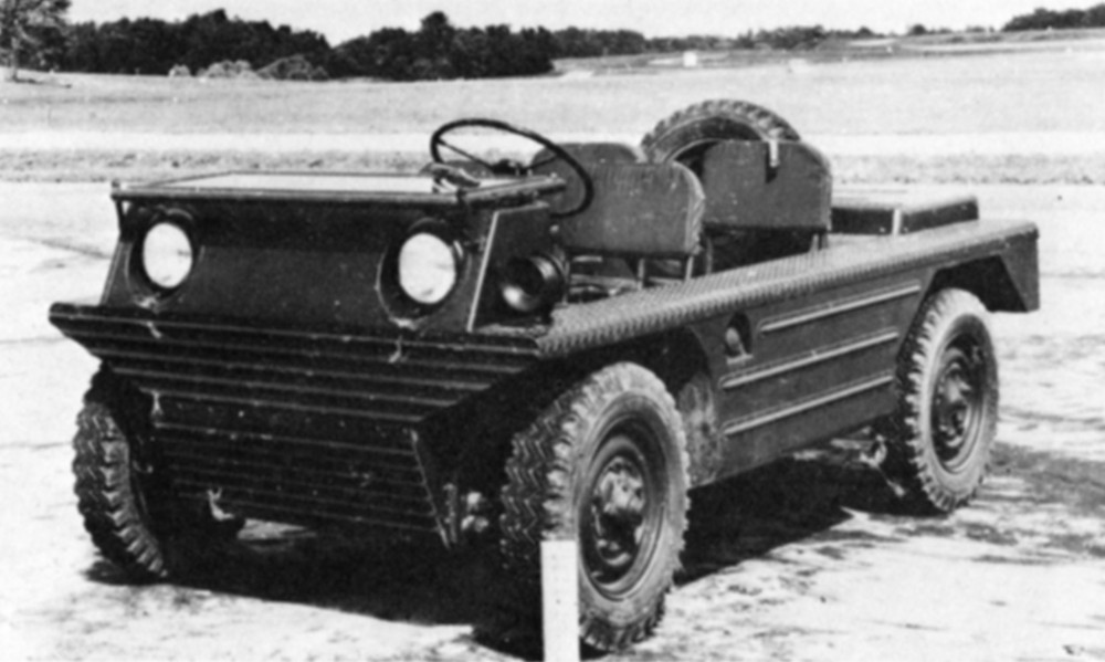 The Flair’s story begins with Fletcher Aviation, founded in 1941 in Pasadena by three Fletcher brothers: Wendell, Frank, and Maurice. They initially formed the company to build a basic trainer for the US Army, and in 1953, Fletcher Aviation again attempted to secure a government contract, this time for an amphibious jeep. Wendell Fletcher, a Porsche enthusiast, decided to build an amphibious vehicle around a Porsche 356 four-cylinder air-cooled engine, attaching a Porsche transmission and suspension to an aluminum body. He made it light enough for air transport and added a special transfer case and front differential, giving the vehicle four-wheel drive. To make the Flair float, he adapted the jet-cooling principles of aeronautical engineer Otto Koppen, which Fletcher Aviation had already applied to its FD-25 Defender trainer. However, the system didn’t work very well as a propulsion system, so on water, simply turning the wheels propelled it. The Flair debuted in 1953 at the National Air Show in Dayton, Ohio, for Labor Day and was provided to the Army for testing. During testing, it performed well: waterproof and stable in water, it reached a speed of 2.2 mph on water and 68 mph on land, carrying up to 800 pounds of cargo. However, the Army ultimately rejected the Flair, which it had evaluated alongside the American Motors XM531 Muskrat and Willys XM433E1. The Flair then presumably returned to Fletcher, which briefly changed its name to Flair Aviation in the early 1960s before exiting the aircraft manufacturing business in 1966. Some sources note that Fletcher Aviation may have considered using the Flair as an agricultural vehicle, but these plans never came to fruition. At some point in its history, the Porsche engine was replaced with a Volkswagen one, perhaps to make it more appealing to foreign markets.