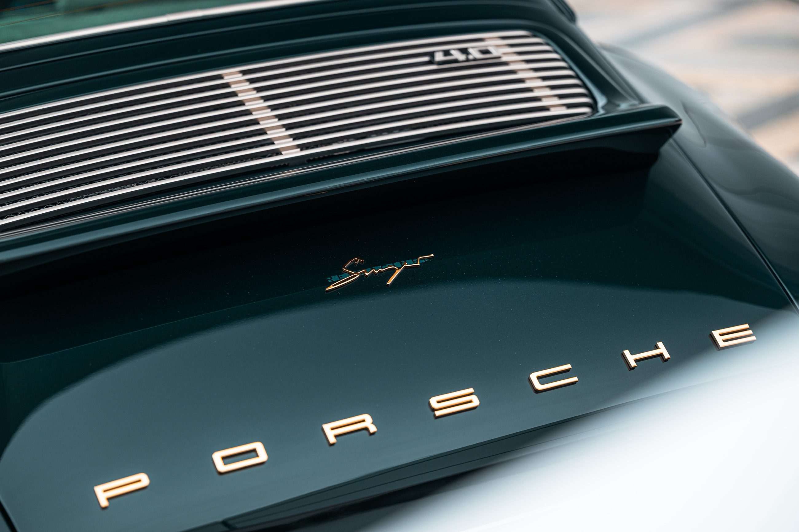Finished in striking Ferrari Verde Zeltweg—a rare choice outside Porsche’s traditional palette—the exterior is protected by full paint protection film and accented with ghosted Porsche script and 24-karat gold badging. Nickel-finished details and champagne-toned brake calipers add a subtle vintage touch.