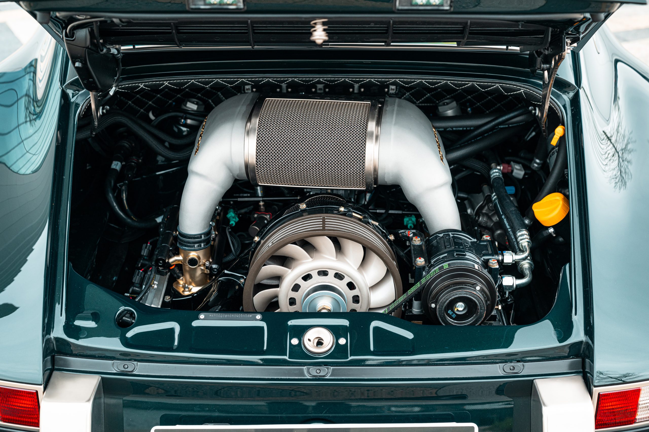 Completed in November 2022, the car is powered by a highly sought-after 4.0-liter “Motorsports” engine developed in collaboration with Porsche Motorsports North America. Paired with a six-speed manual gearbox, it benefits from Öhlins adjustable suspension and Brembo carbon ceramic brakes, delivering top-tier performance within Singer’s lineup.