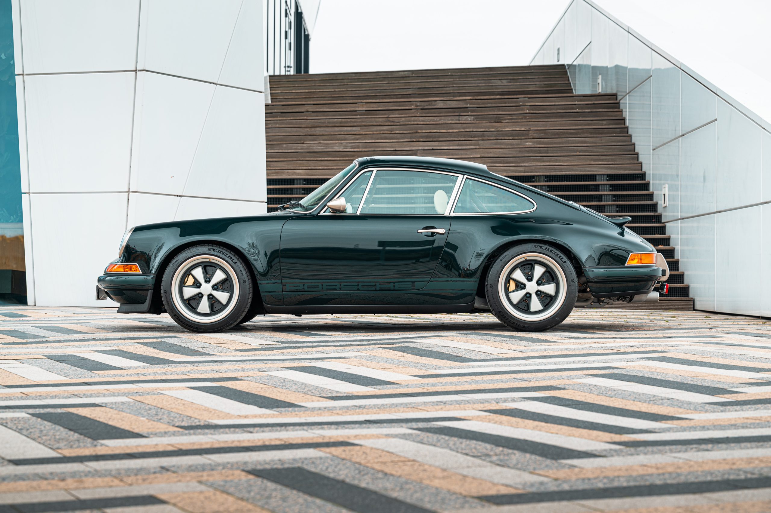 Additional bespoke features include a second set of Fuchs-style wheels wrapped in Michelin Pilot Sport 4S tires and an extra Momo Prototipo steering wheel. With fewer than 1,000 kilometers since completion and backed by a full Singer warranty, this meticulously crafted 911 stands as a rare and highly collectible interpretation of Porsche’s iconic sports car.