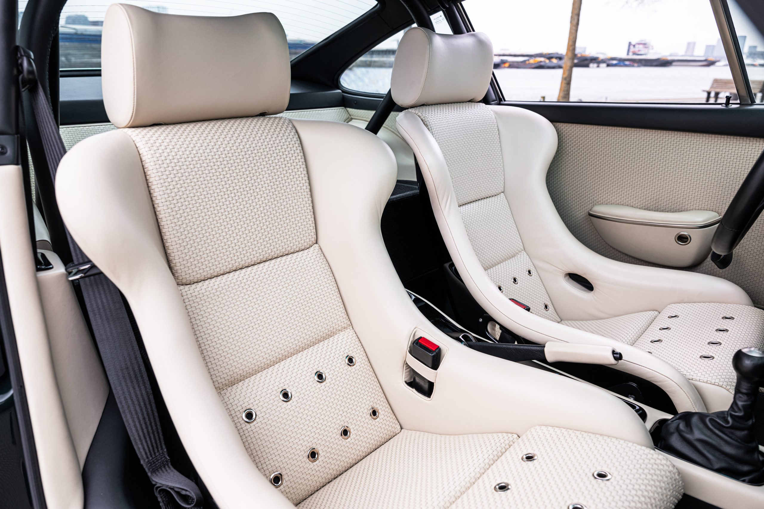 Inside, the cabin is upholstered in cream “Zelder” leather with carbon bucket seats, woven inserts, and nickel accents. Classic 911 instrumentation is retained, including a special Schleppzeiger tachometer, while modern touches like Porsche Classic Navigation with Apple CarPlay, plus an upgraded Audison and Dynaudio sound system, bring contemporary usability.