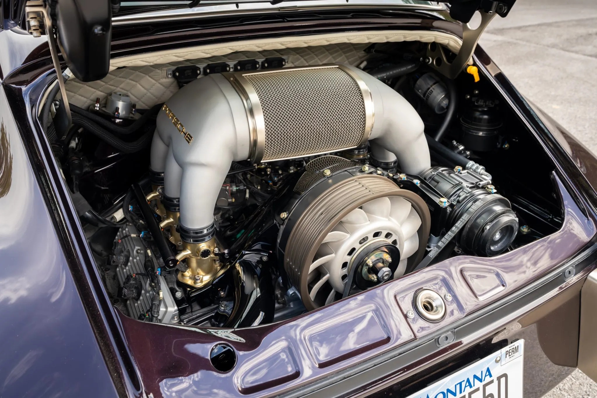 Known as the “Austin Commission,” this example features Singer’s 4.0-liter flat-six engine paired with a G50 five-speed manual transmission. The engine, built by Ed Pink Racing Engines using a 964 block and bespoke internals, delivers 390 hp and 315 lb-ft of torque. Singer reports 0–60 mph in under 3.3 seconds and 0–100 mph in 8.2 seconds.