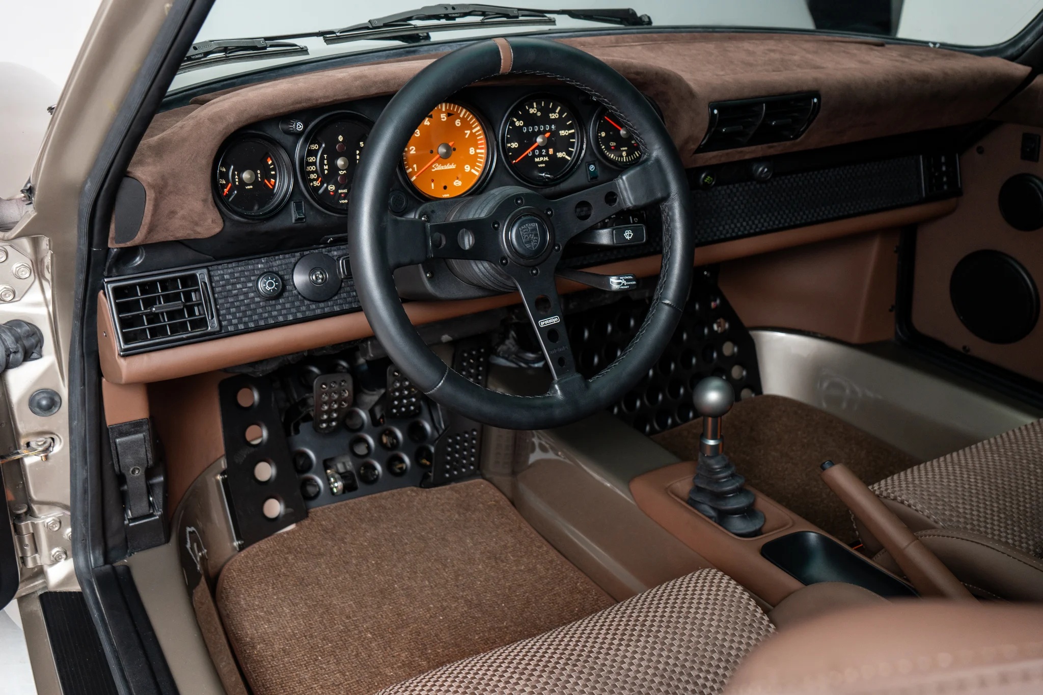 The rebuilt G50 5-speed features a Wavetrac LSD and lightweight flywheel. Suspension, steering, and brakes are fully upgraded, including Bilstein PSS16 coilovers, BBi billet components, and 993 Turbo/RS calipers with carbon-ceramic rotors. Every detail emphasizes high-performance, bespoke craftsmanship.