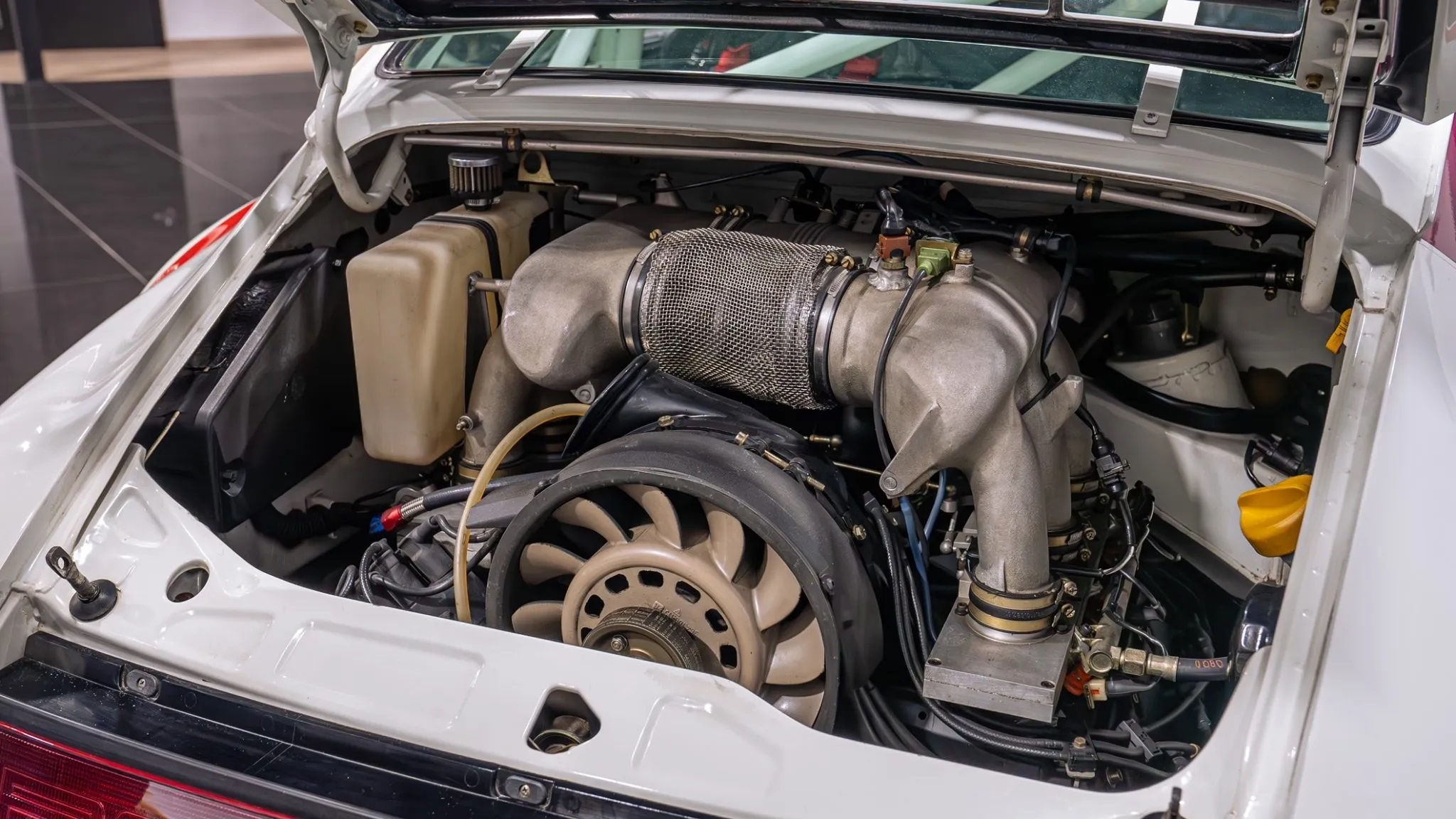 Powering the RSR 3.8 was an air-cooled, naturally aspirated six-cylinder Type 64/04 engine, derived from the 964’s 3.6-liter motor. With higher compression, twin ignition, individual throttle bodies, and Bosch electronic fuel injection, the engine produced an official 325 horsepower, though actual output was around 375–390 horsepower and 284 lb-ft of torque.