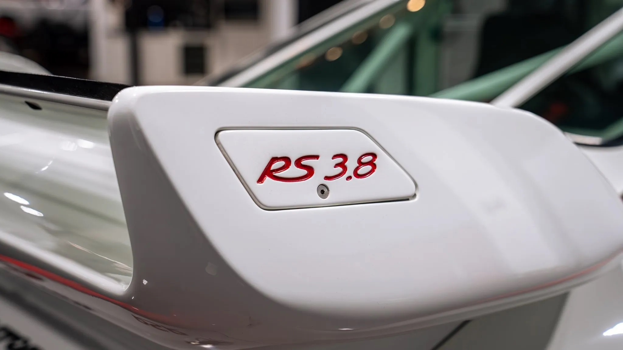 Lightweight features included aluminum doors, a fiberglass rear wing, and slimmer glass. It sported racing suspension, Turbo S disc brakes, 18-inch Speedline center-lock wheels, a front strut brace, and a 43-liter fuel cell. Weighing only 2,673 pounds dry, the RSR 3.8 could reach 60 mph in 3.7 seconds and exceed 180 mph.