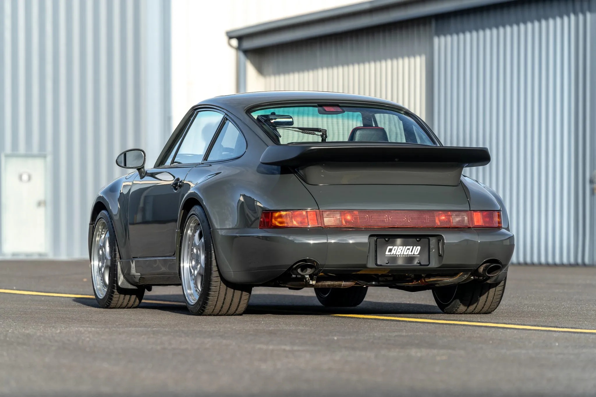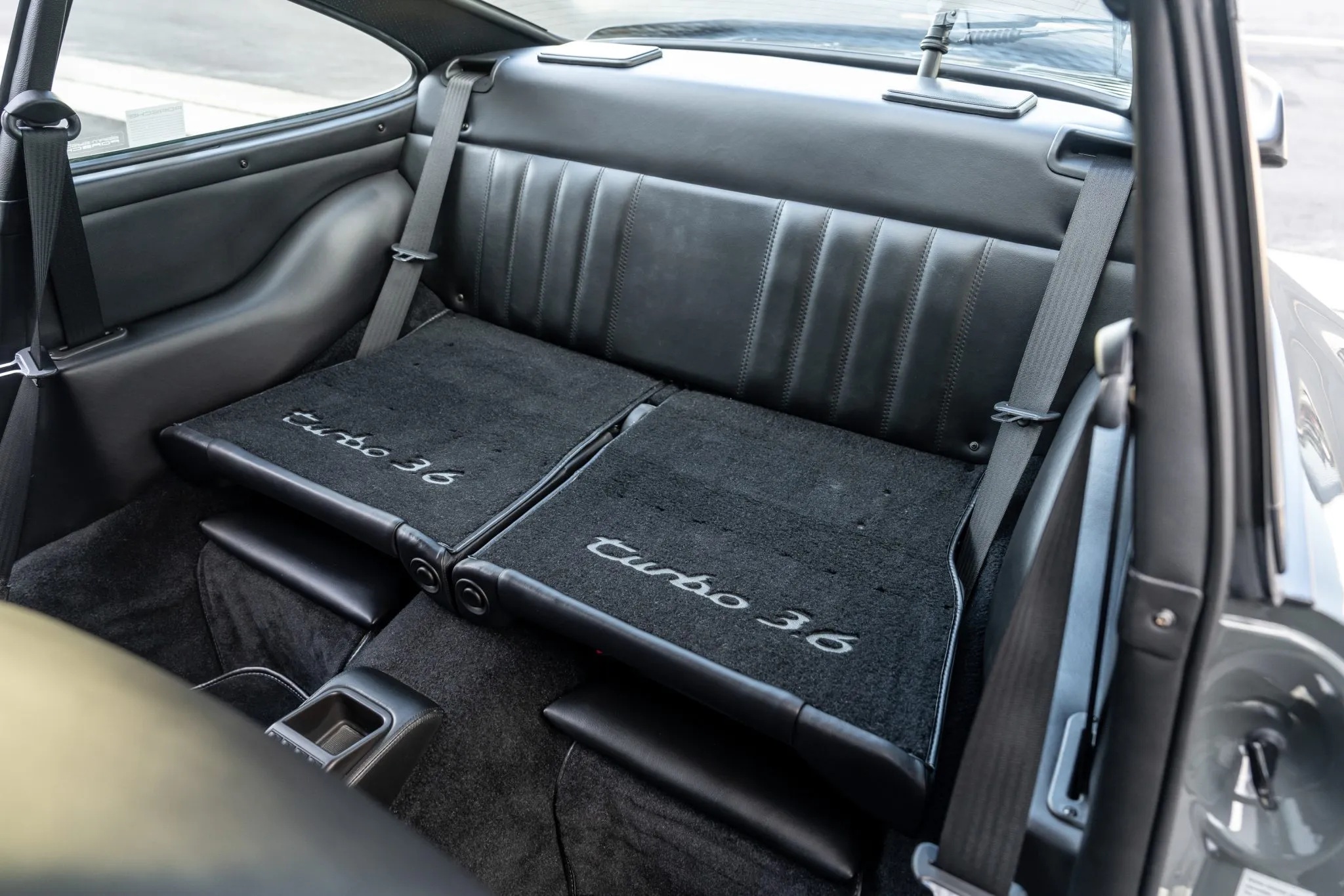 The model’s signature features are combined with period upgrades for a particularly appealing specification. One of about 754 built, it wears multi-piece 18-inch Speedline wheels, red Porsche brake calipers, a fixed rear spoiler, and the characteristic widebody stance. A five-speed manual gearbox and limited-slip differential emphasize its position as one of the last purely analog, rear-wheel-drive Turbos.