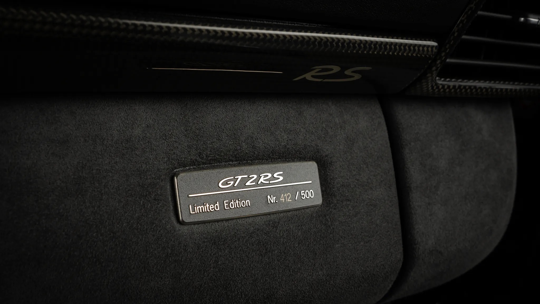 This particular car (number 412 out of 500) boasts a range of performance-enhancing features that includes carbon-fiber front fenders, the Sport Chrono Package Plus, a locking differential, 19″ GT2 RS center-lock wheels, carbon-ceramic brakes, xenon headlights, adaptive sport seats, PCM with navigation, Sound Package Plus, and automatic climate control.