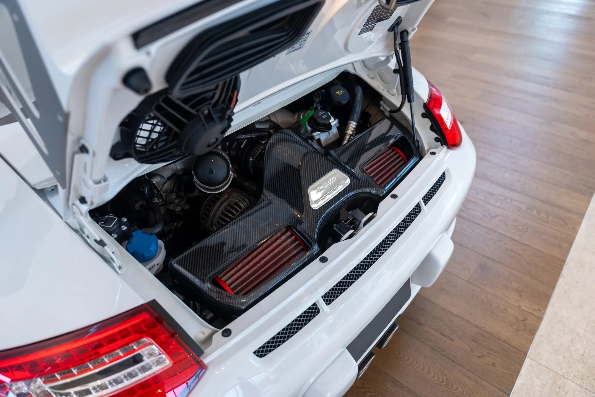 What makes this car particularly special is that it’s the last 911 GT3 equipped with the iconic Mezger engine mated to a 6-speed manual transmission. As indicated by its name, it houses a 4.0-liter engine that includes the longer-stroke crankshaft from the RSR, delivering 500 horsepower at 8,250 RPM and 339 lb-ft of torque at 5,750 RPM.