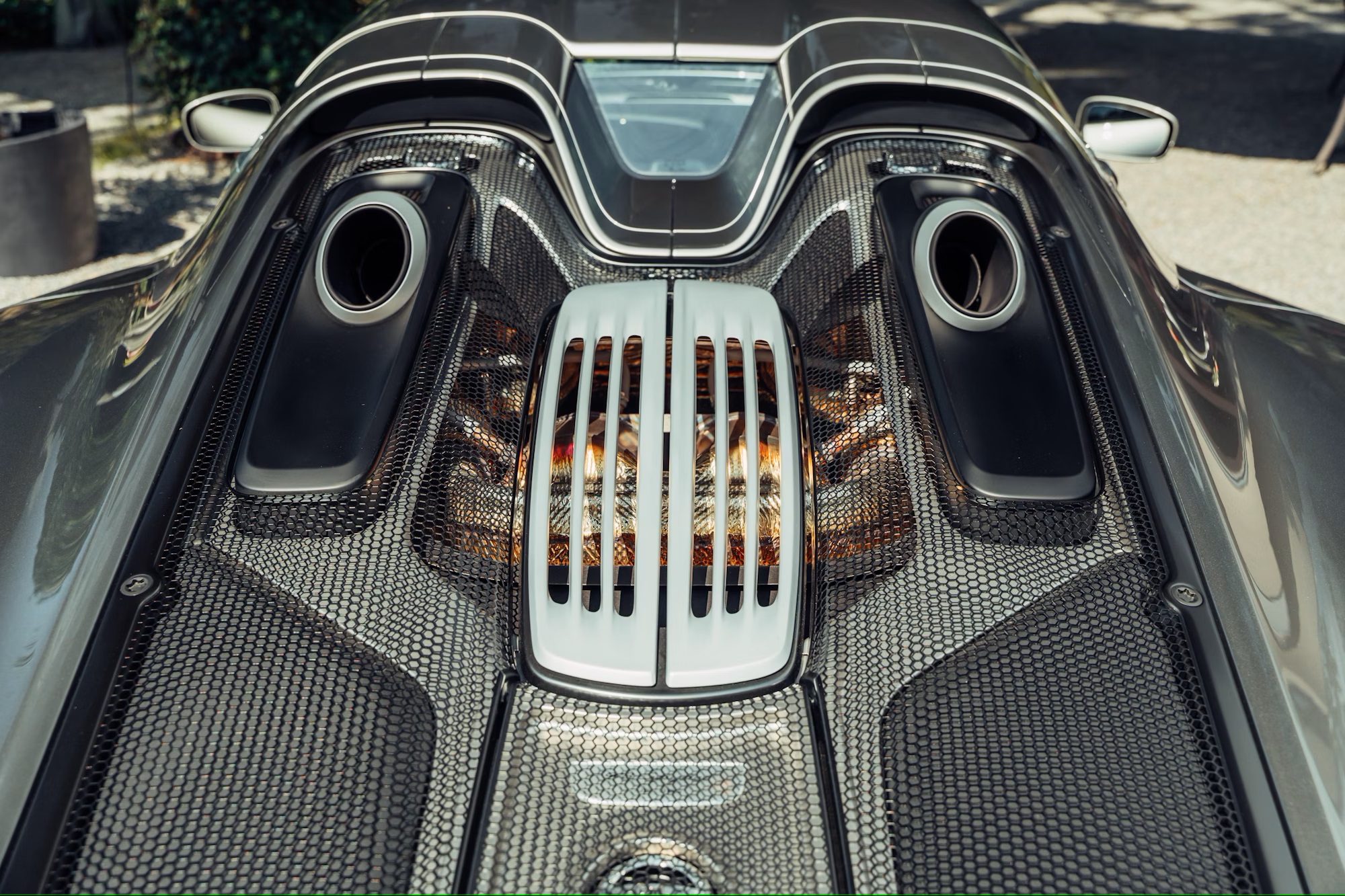 The plug-in hybrid features a 4.6L direct fuel-injected engine derived from the RS Spyder LMP2, complemented by front and rear electric motors and a lithium-ion battery, producing a combined 887 HP. This allows for a top speed of 217 MPH and a 0-62 mph time of 2.6 seconds.