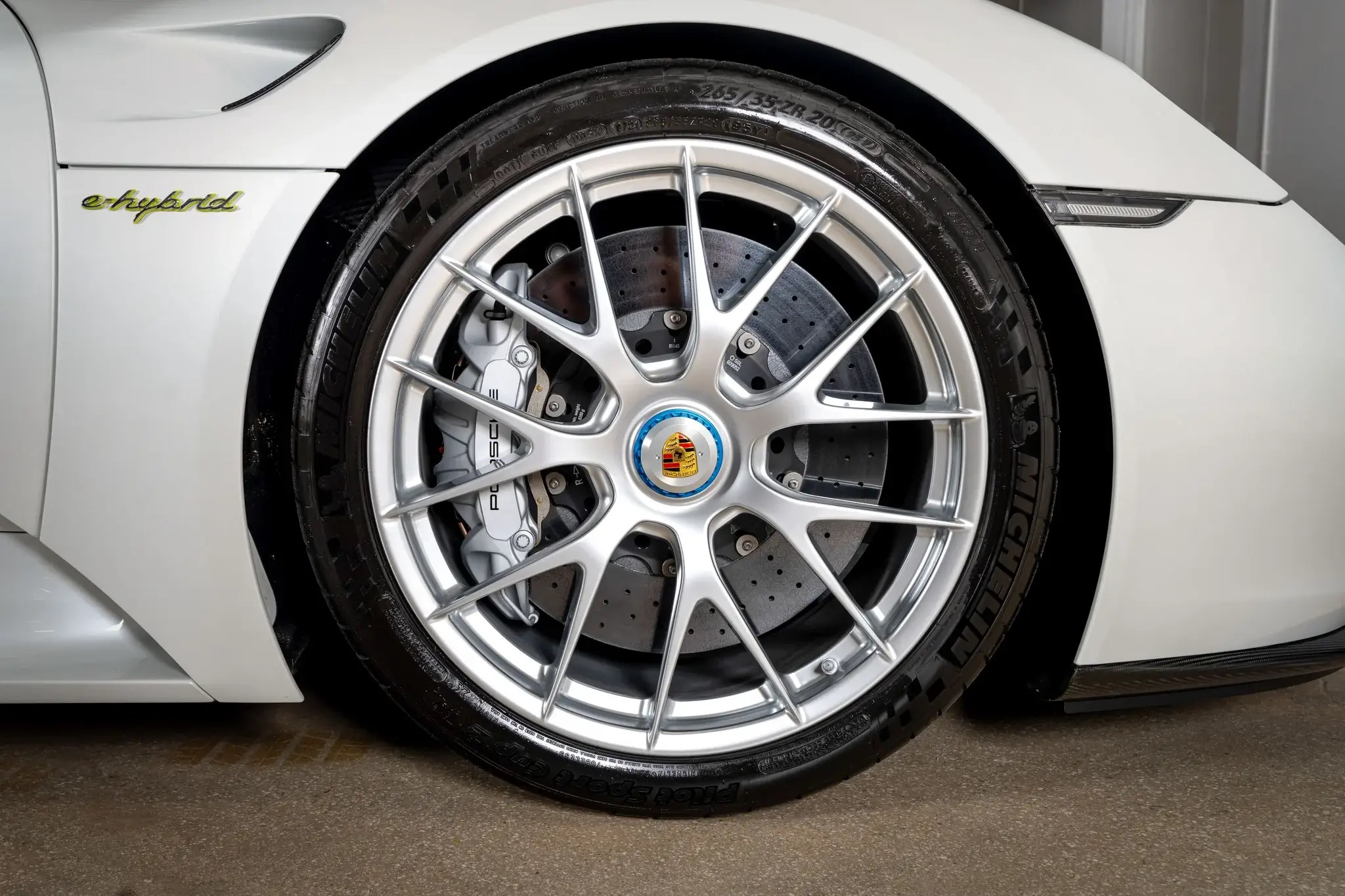 The car’s 4.6-liter V8 engine is mid-mounted and based on the RS Spyder Le Mans Prototype, featuring a flat-plane crankshaft and titanium connecting rods. It generates 599 horsepower, supplemented by electric motors on both axles for a combined output of 875 horsepower and 944 lb-ft of torque. Power is delivered to the rear wheels via a 7-speed dual-clutch PDK transmission and an electro-mechanical limited-slip differential.