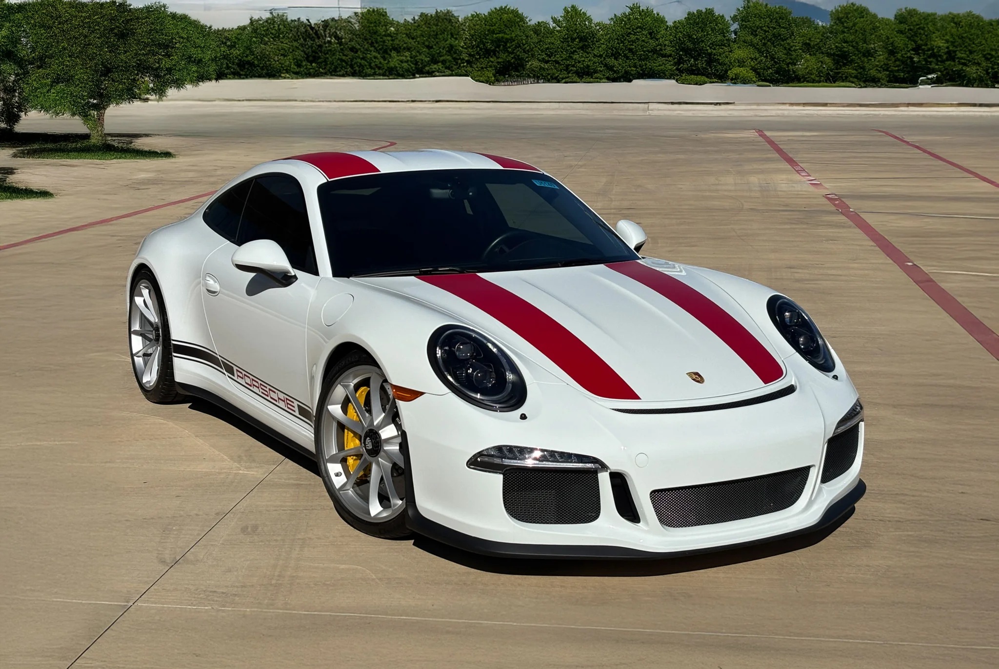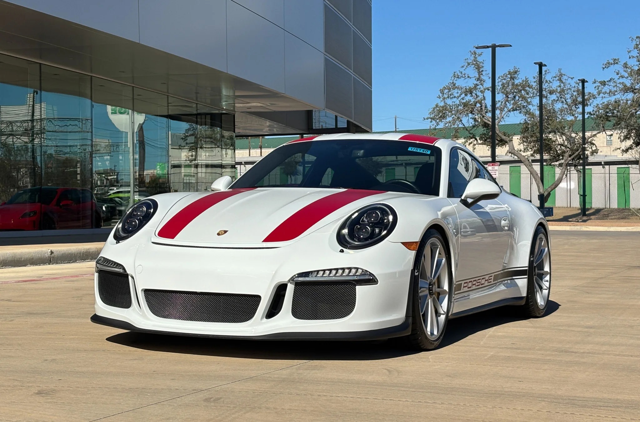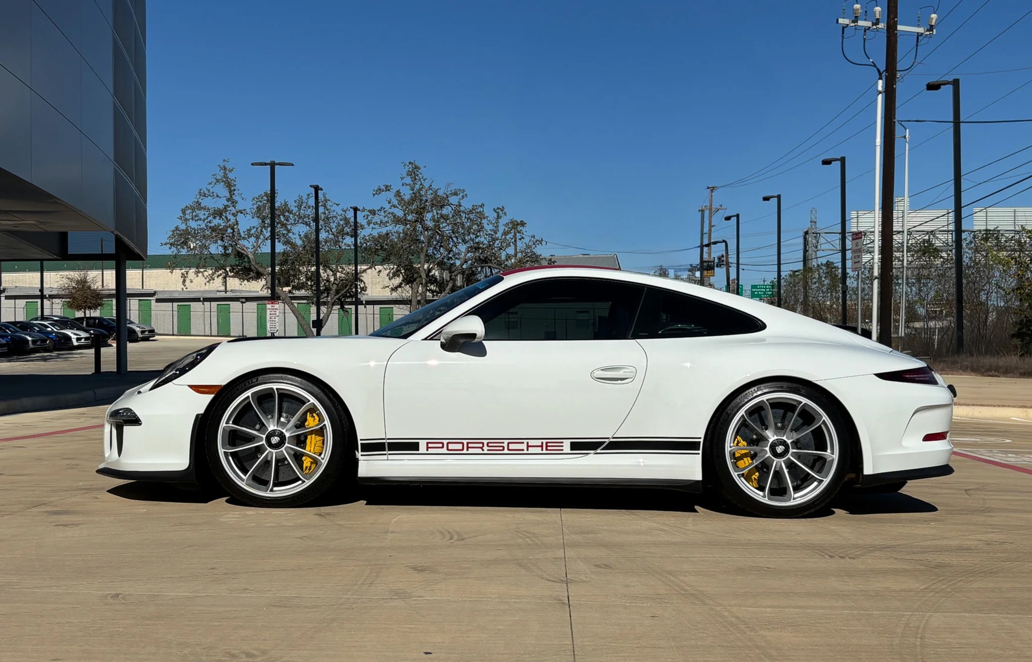 Currently offered on PCARMARKET, this is example number 112 of just 991 units built worldwide. It remains in exceptional condition, showing only 2,361 miles. The car is finished in the 911 R’s launch livery of White, accented by red racing stripes over the roof and black side stripes with red Porsche script. Options include black LED headlights with PDLS, auto-dimming mirrors, rain-sensing wipers, and 20-inch GT3 center-lock wheels finished in Satin Platinum.