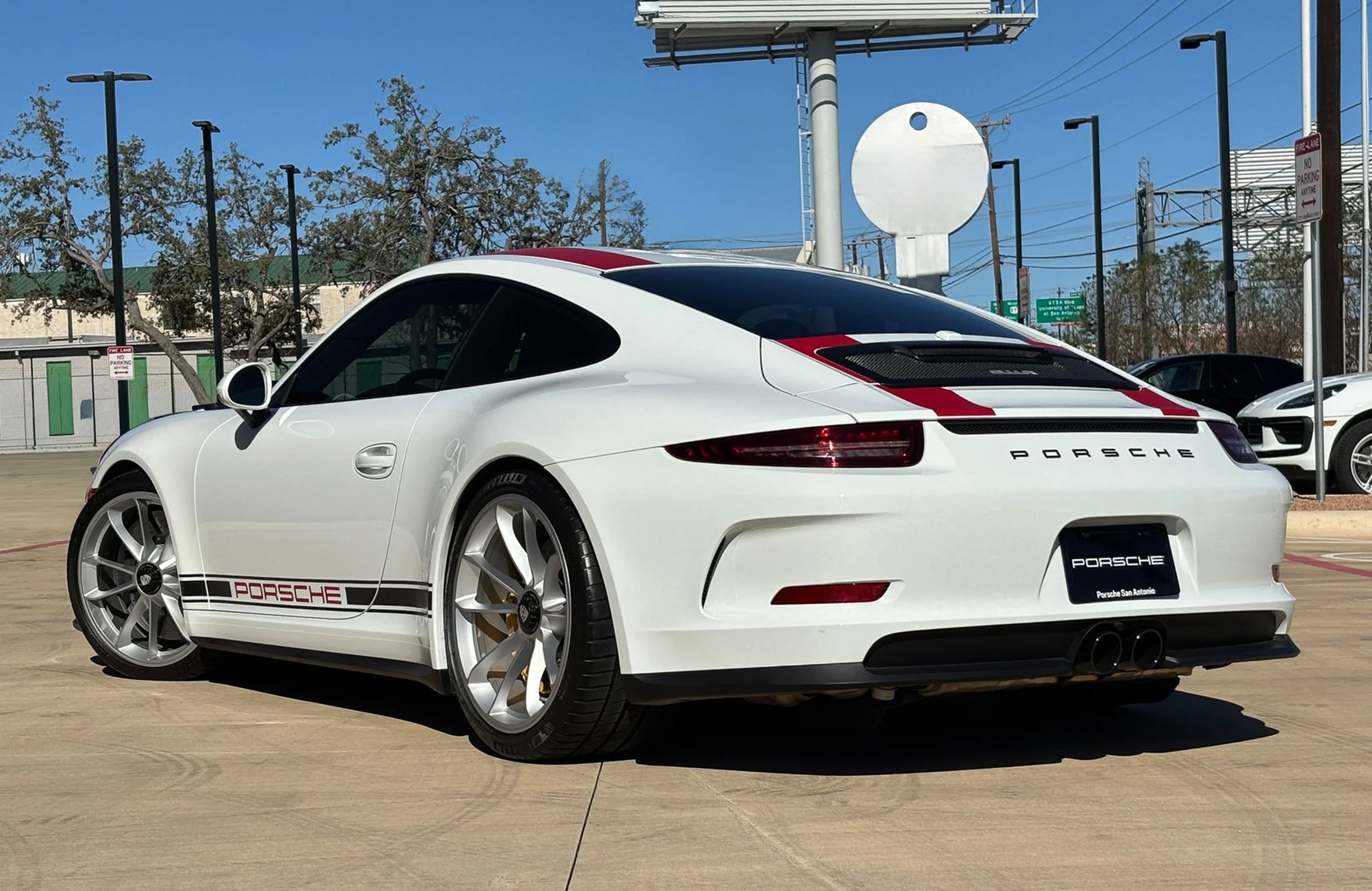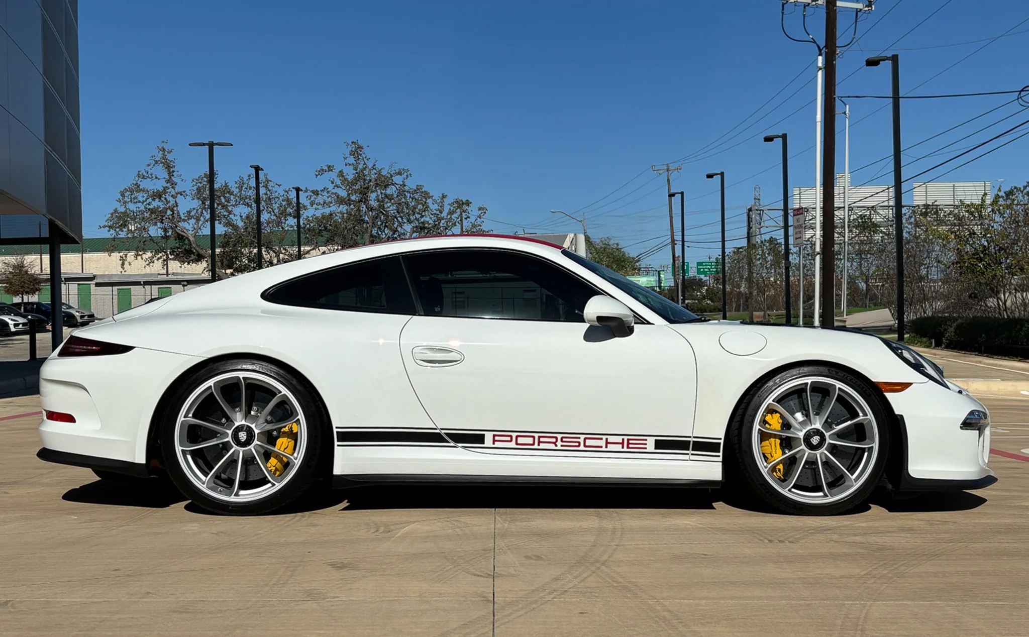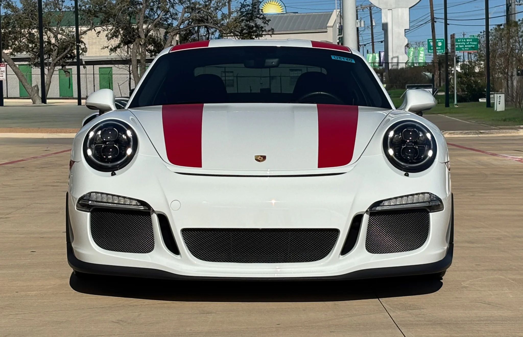 Currently offered on PCARMARKET, this is example number 112 of just 991 units built worldwide. It remains in exceptional condition, showing only 2,361 miles. The car is finished in the 911 R’s launch livery of White, accented by red racing stripes over the roof and black side stripes with red Porsche script. Options include black LED headlights with PDLS, auto-dimming mirrors, rain-sensing wipers, and 20-inch GT3 center-lock wheels finished in Satin Platinum.