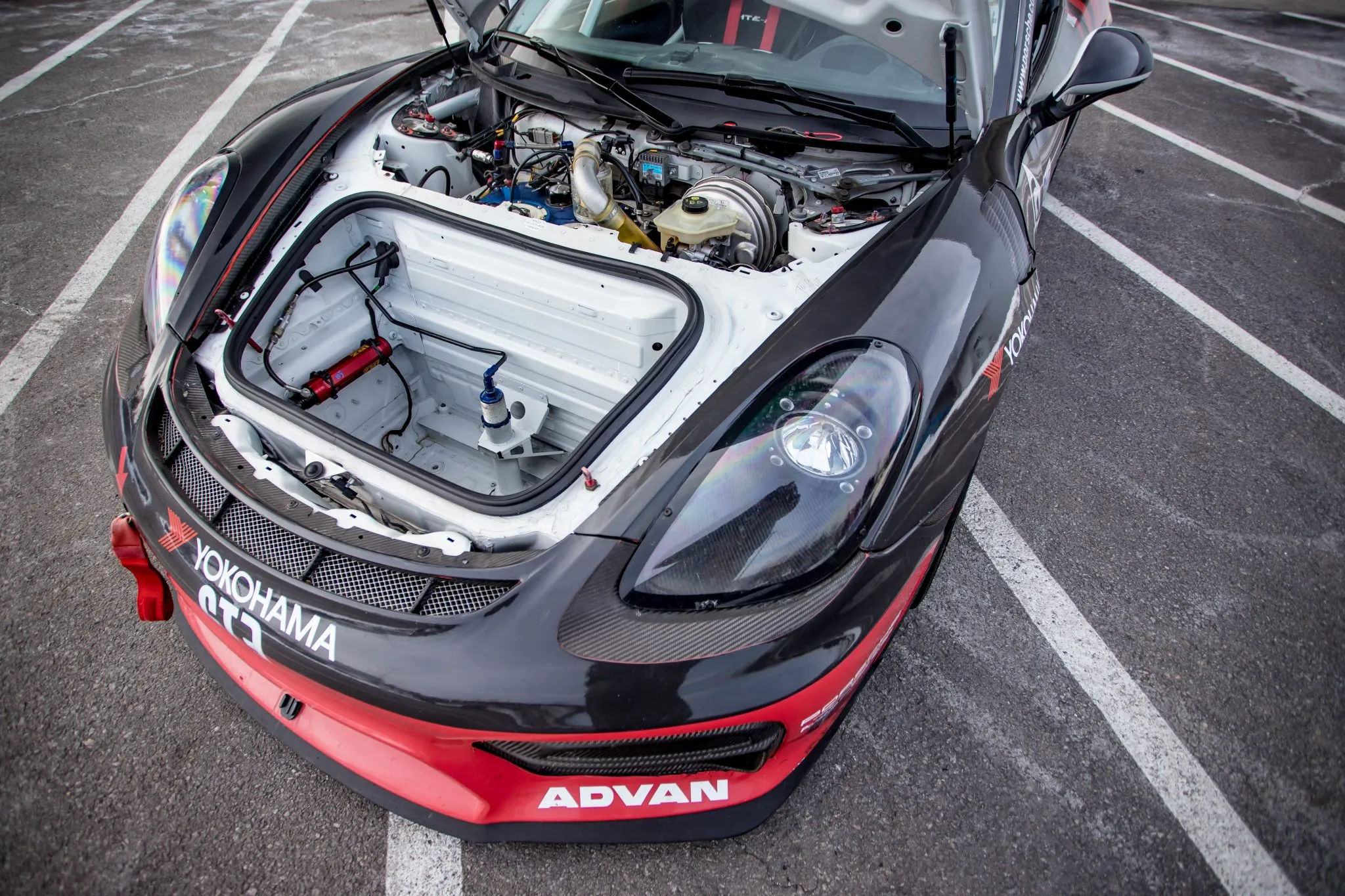 In 2019, the car was modified to compete at the Pikes Peak International Hill Climb in a one-make GT4 Clubsport class created by Porsche in partnership with Yokohama. Driven by Travis Pastrana, it won its class. His signature remains on the dashboard.