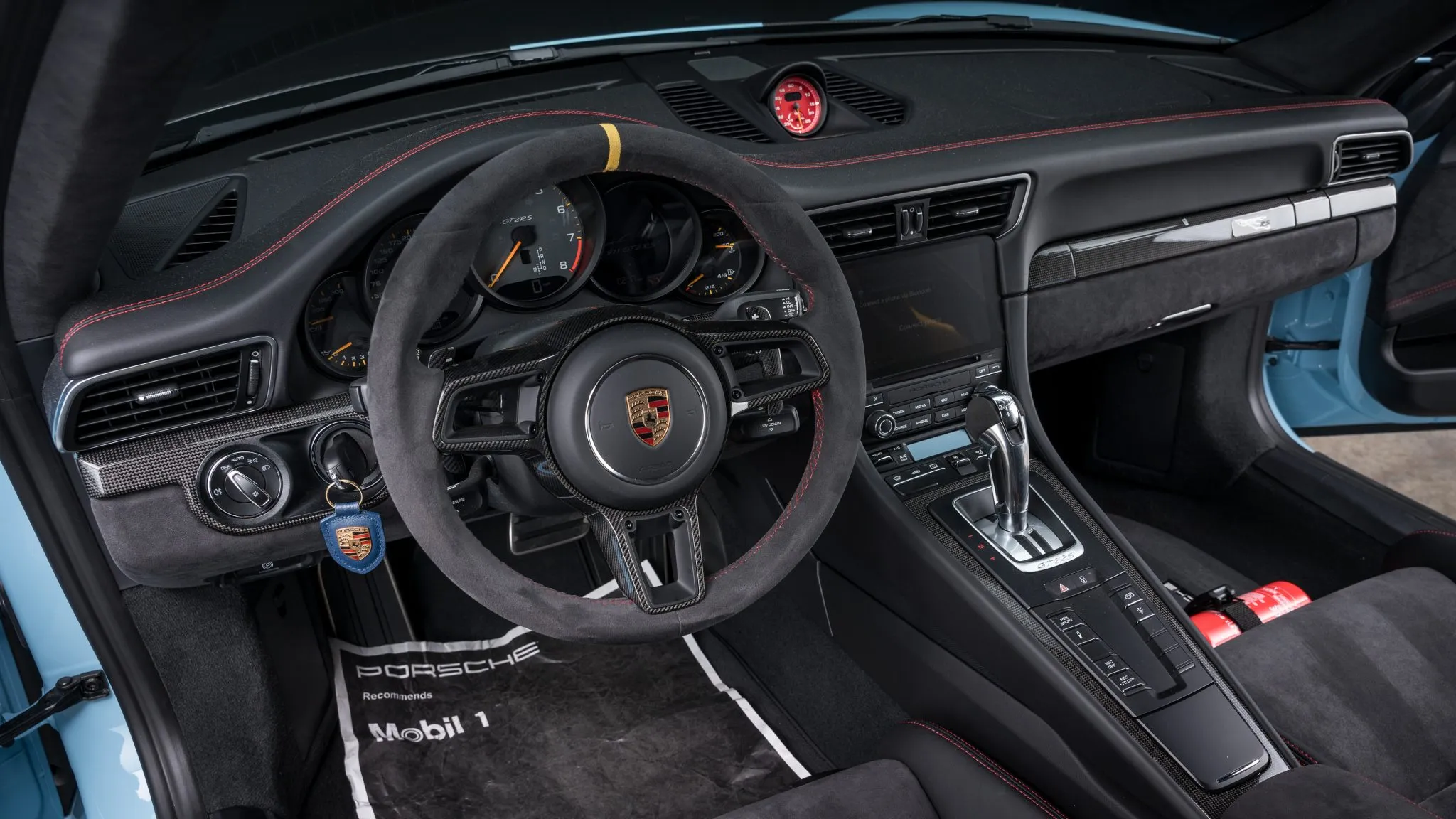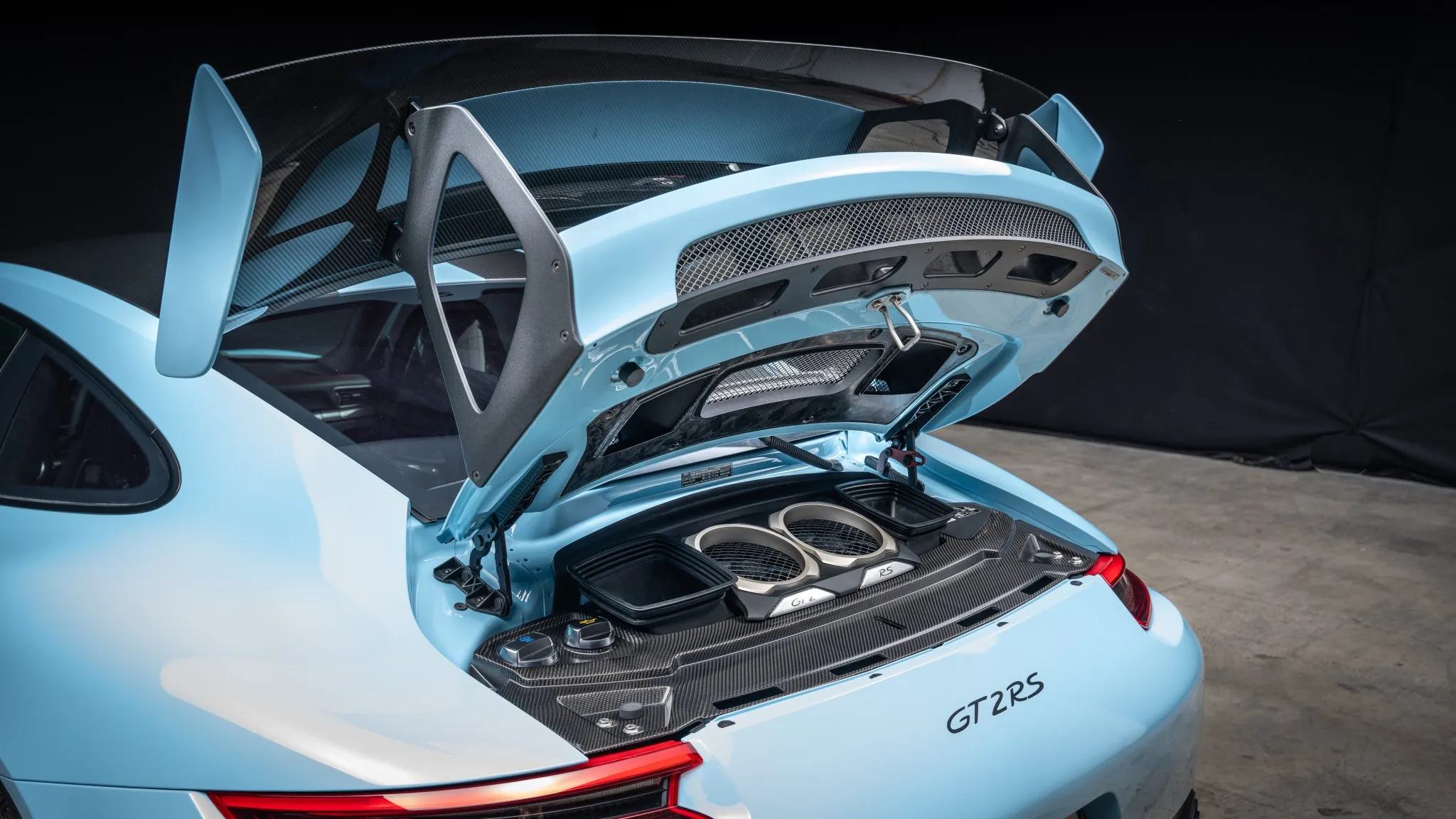 While immensely powerful, the GT2 RS is also remarkably lightweight. Extensive use of carbon fiber, including the roof panel, anti-roll bars, and front lid—all part of the optional $18,000 Weissach Package—helps keep its weight to just 3,241 pounds.