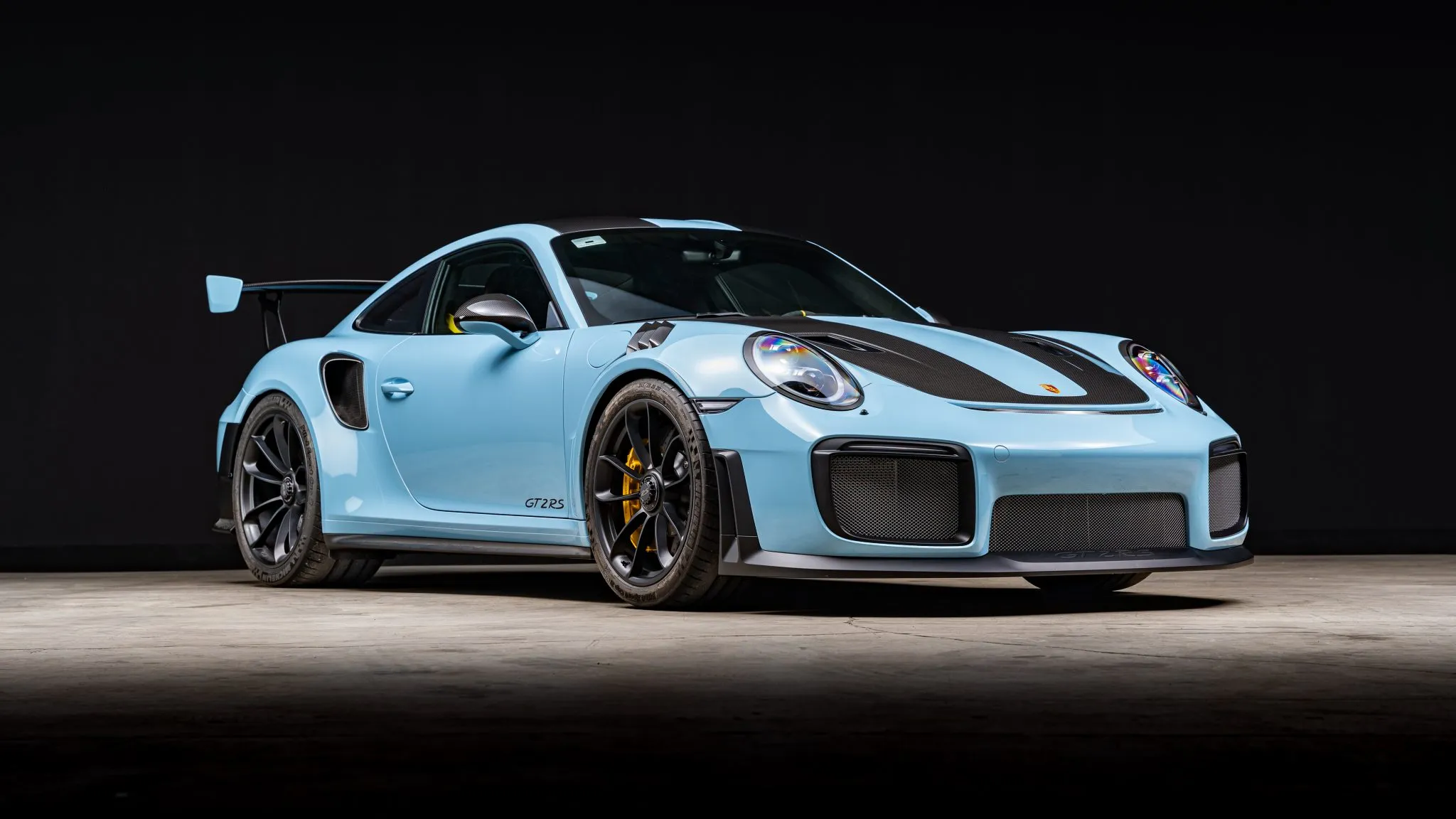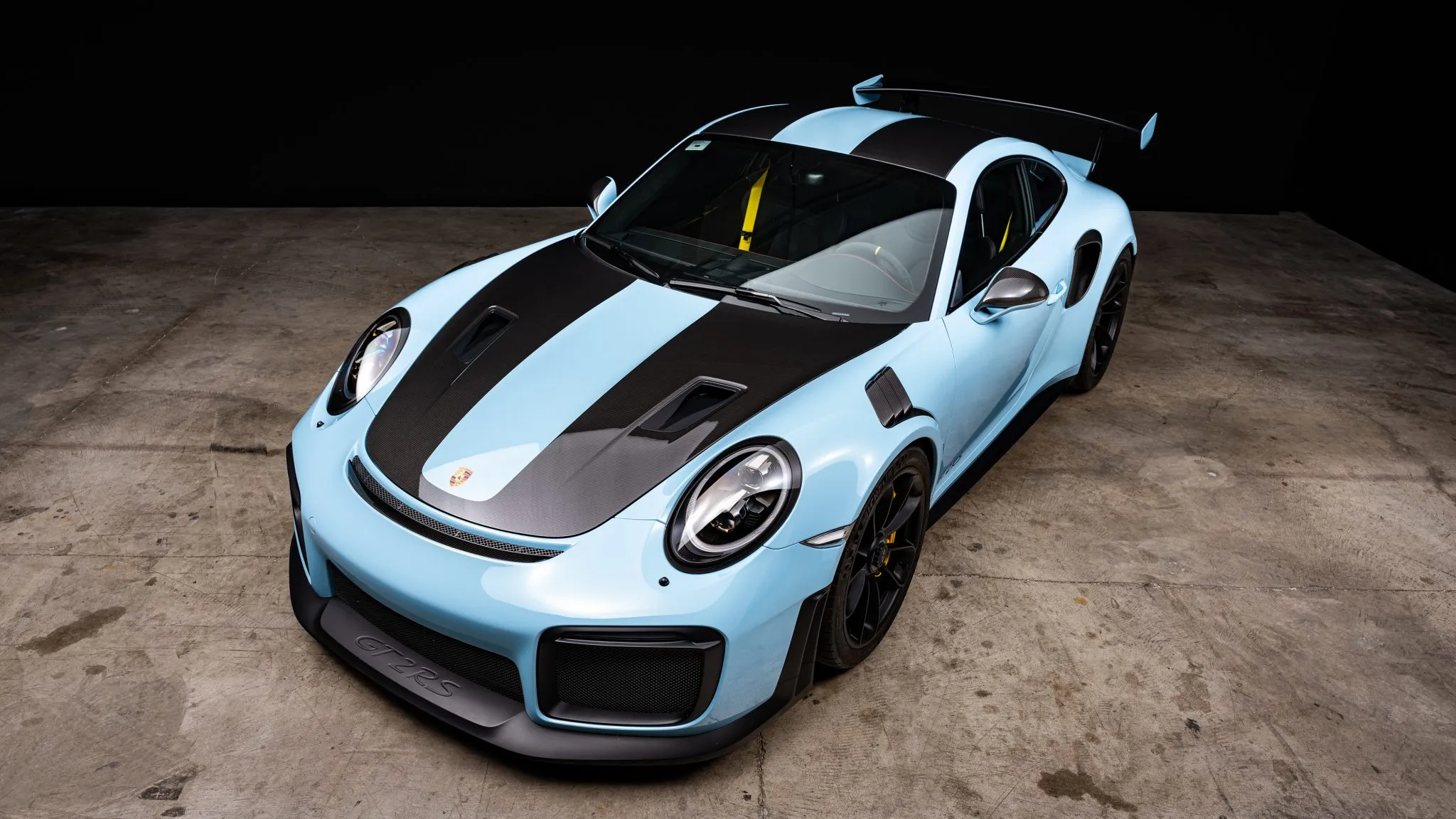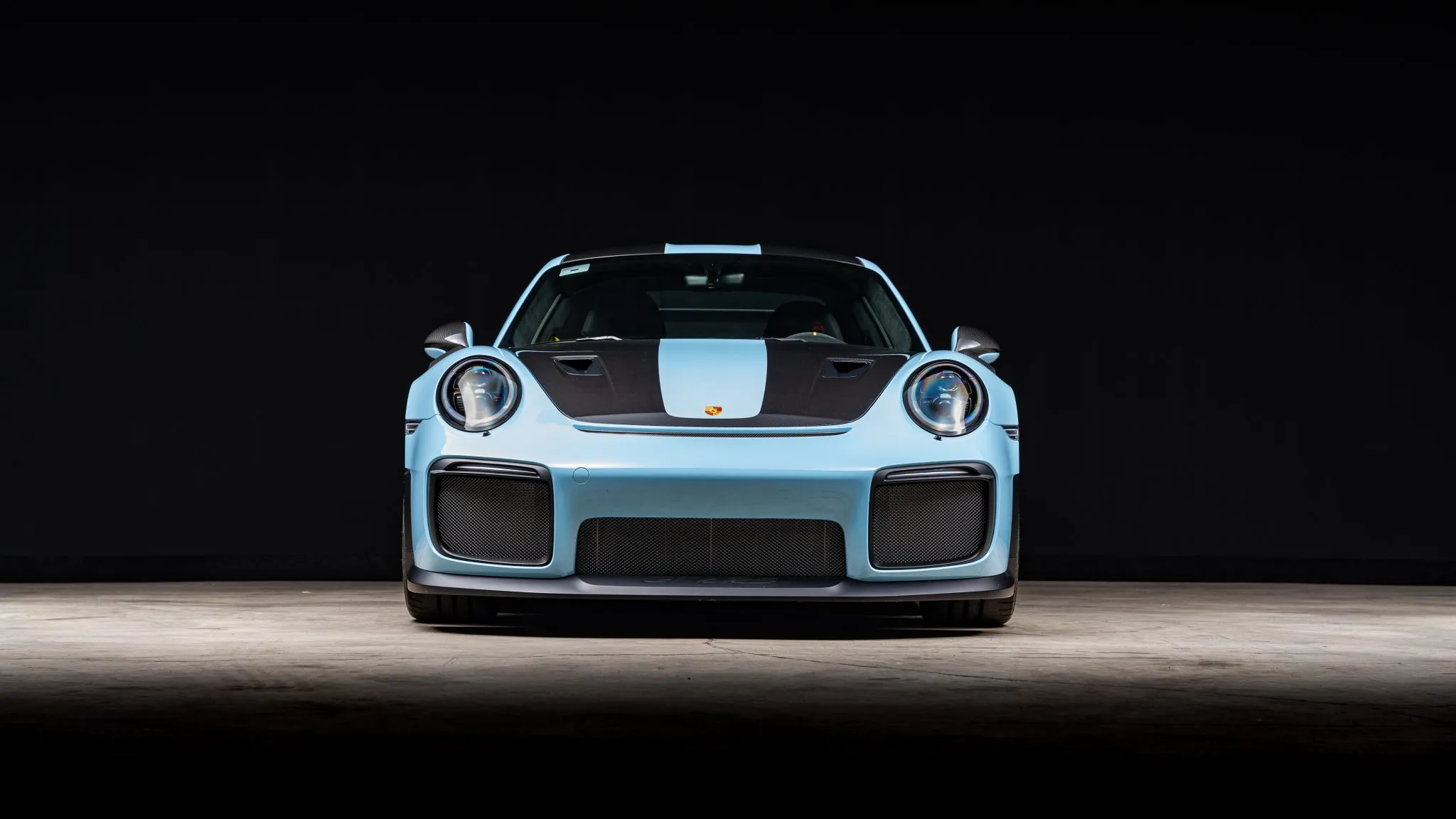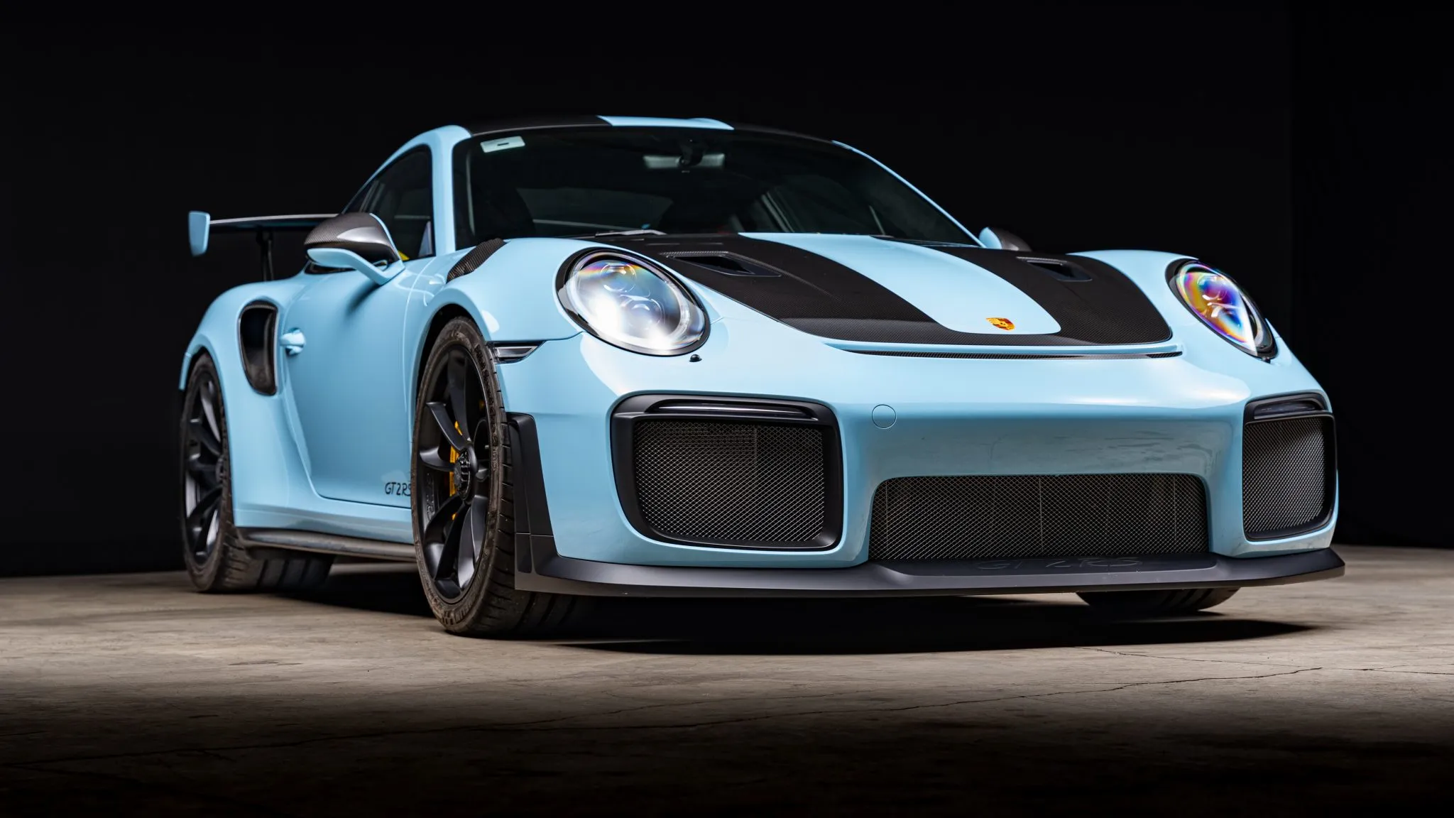 This 2018 Porsche 911 GT2 RS, with just 168 miles on the odometer, is finished in paint-to-sample Gulf Blue and features black leather and Alcantara interior accented with red stitching. Equipped with the Weissach Package, it benefits from reduced weight and enhanced downforce thanks to additional carbon-fiber components and aerodynamic refinements.