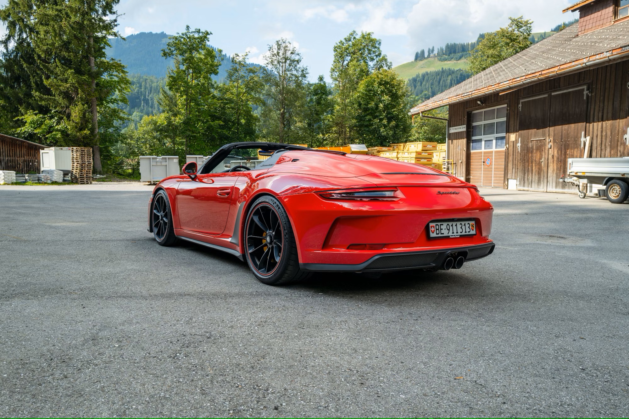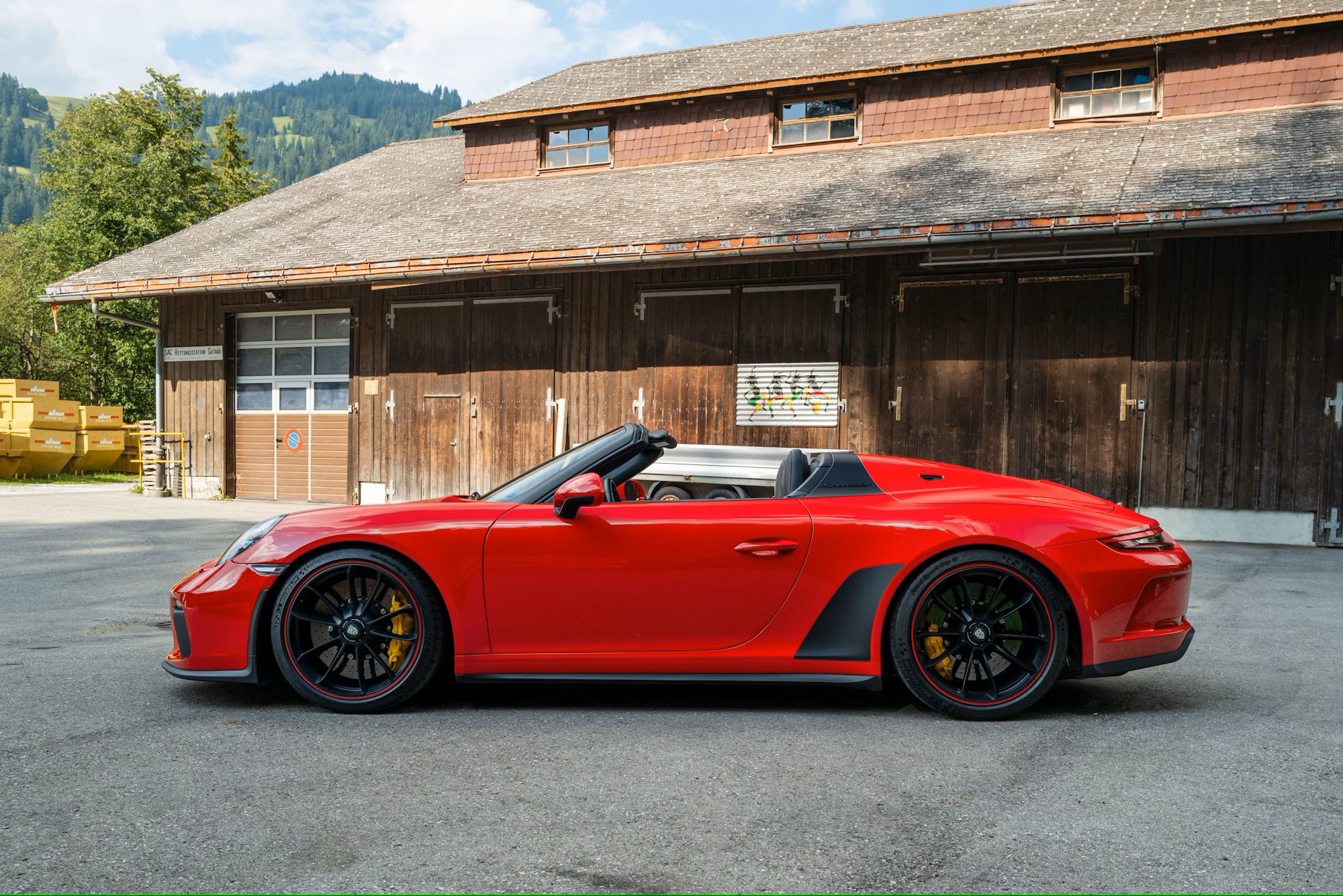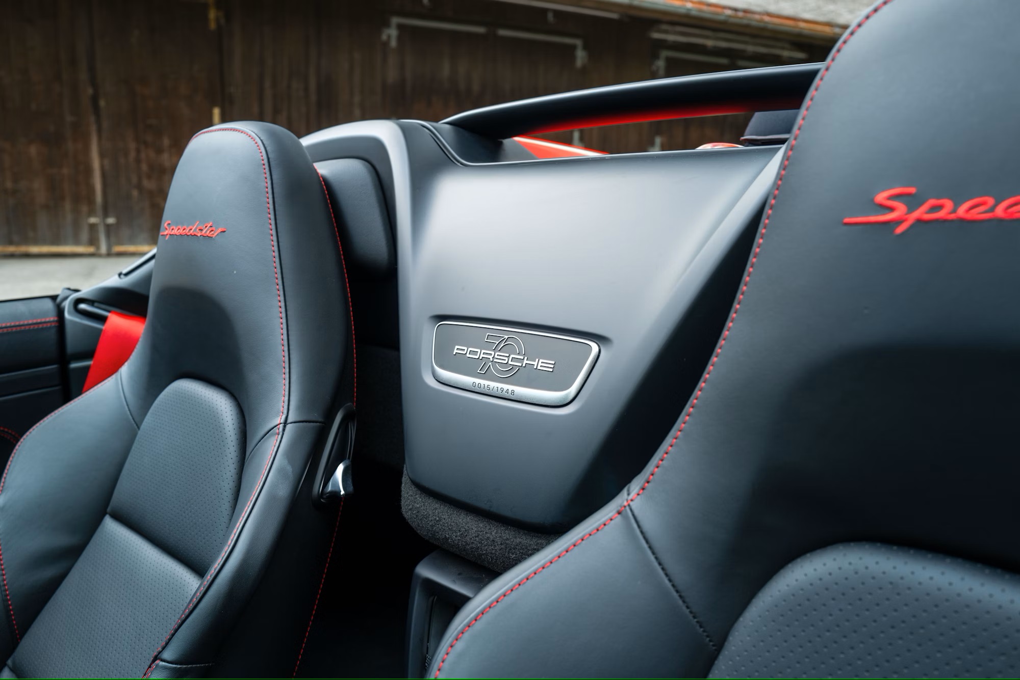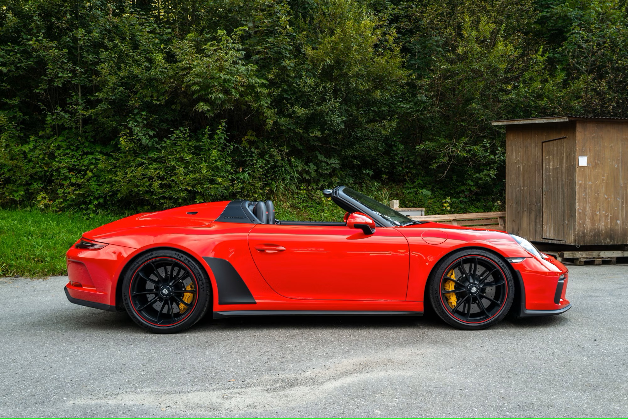 The 2019 Porsche 911 Speedster, celebrated as the highlight of the 991 generation, was produced in a limited edition of just 1,948 units, commemorating Porsche’s first year of production. Departing from the brand’s early minimalist roots, this Speedster is loaded with bespoke features, including a manually operated fabric roof aimed at reducing weight, along with the signature double-bubble streamliner covers. Additional weight-saving elements include carbon fiber composite body panels, interior trim, and carbon ceramic brakes.