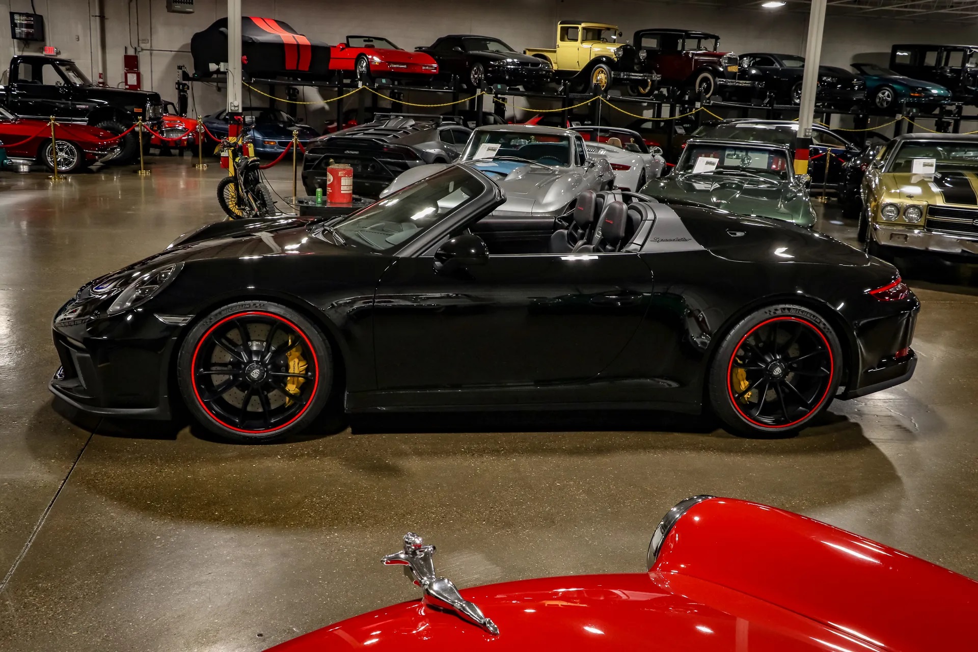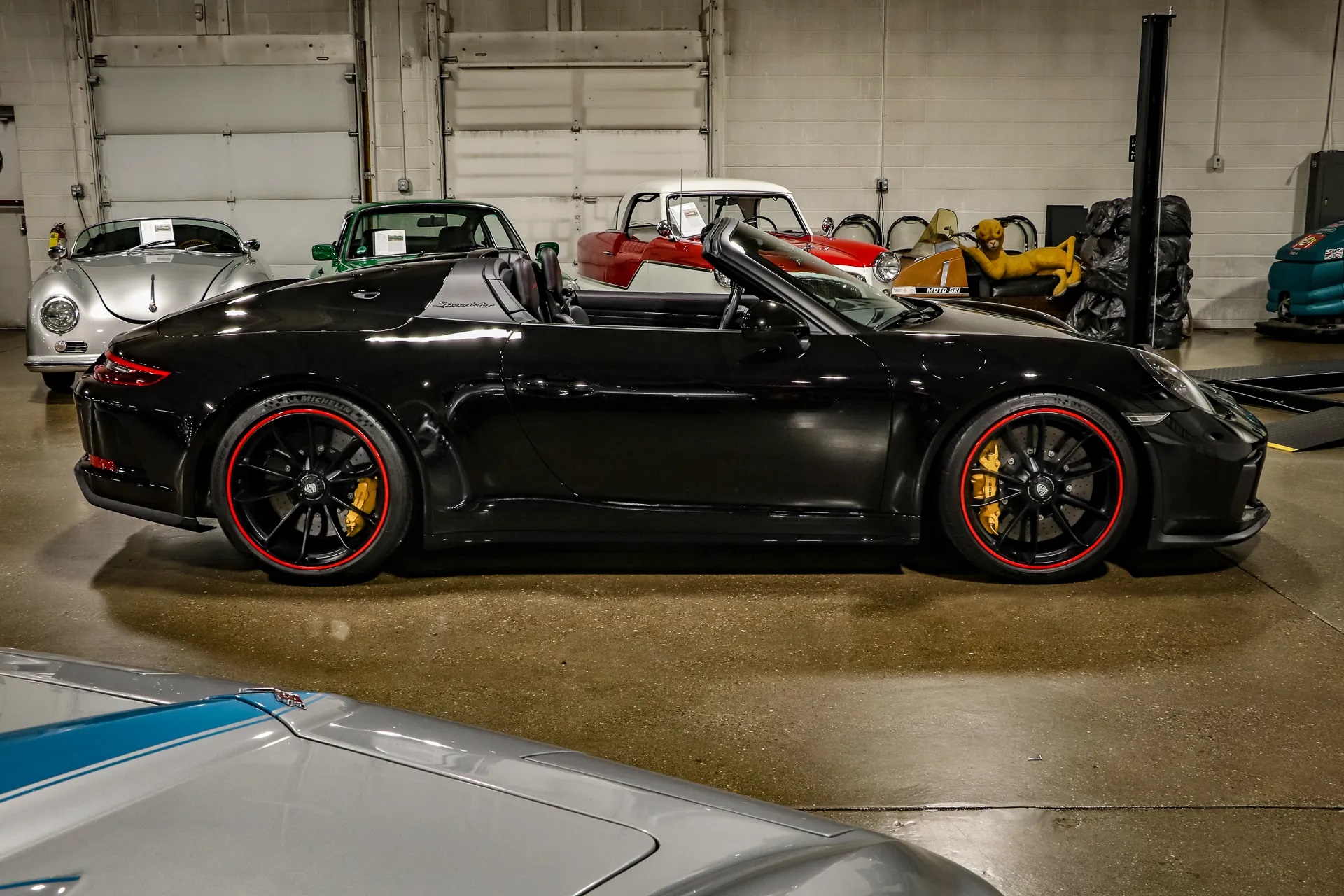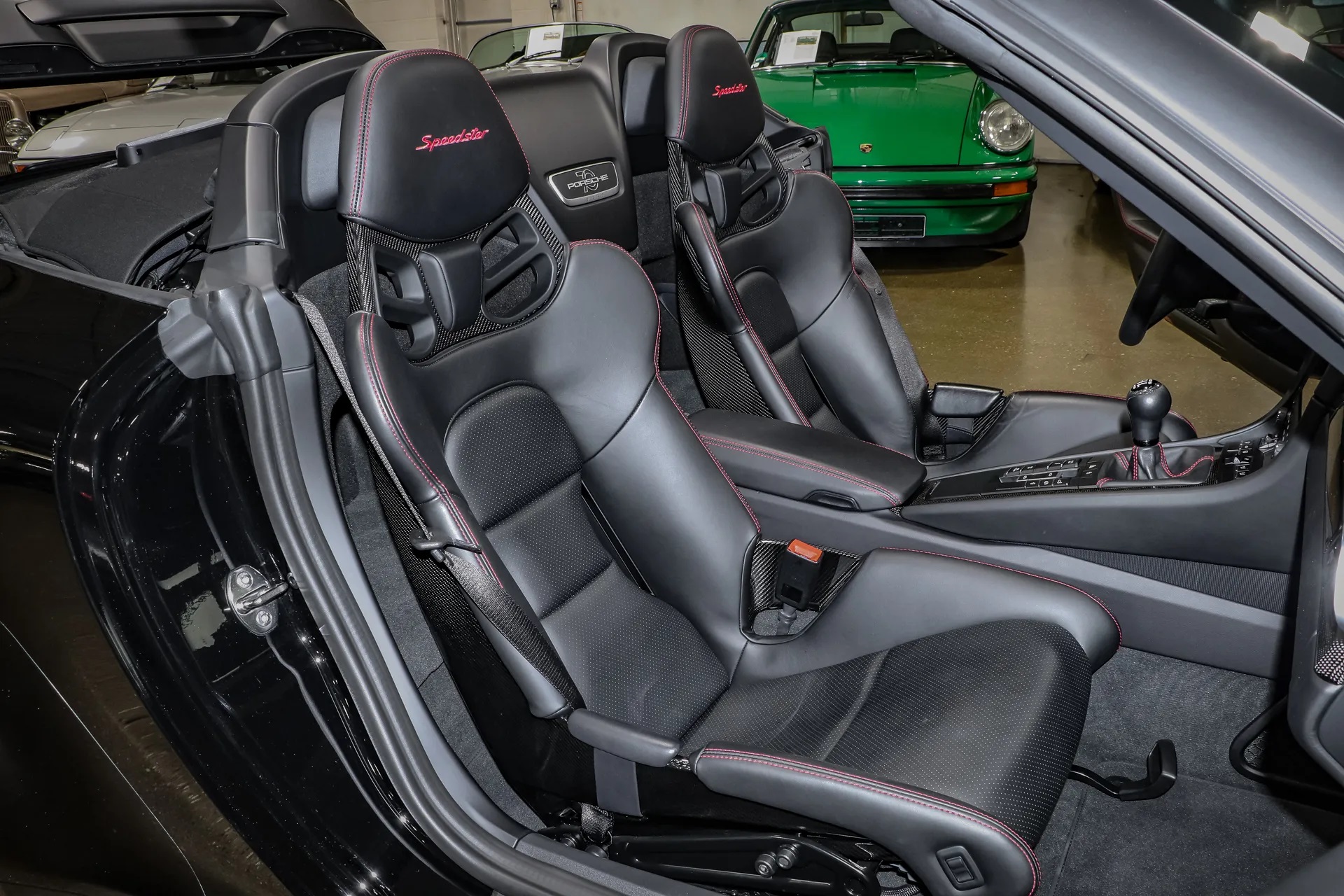 Unlike Porsche’s minimalist roots, this Speedster is packed with exclusive features, including a lightweight, manually operated fabric roof and its signature double-bubble roof covers. Carbon fiber body panels, interior trim, and carbon ceramic brakes are just a few of the many elements incorporated to keep the weight down.