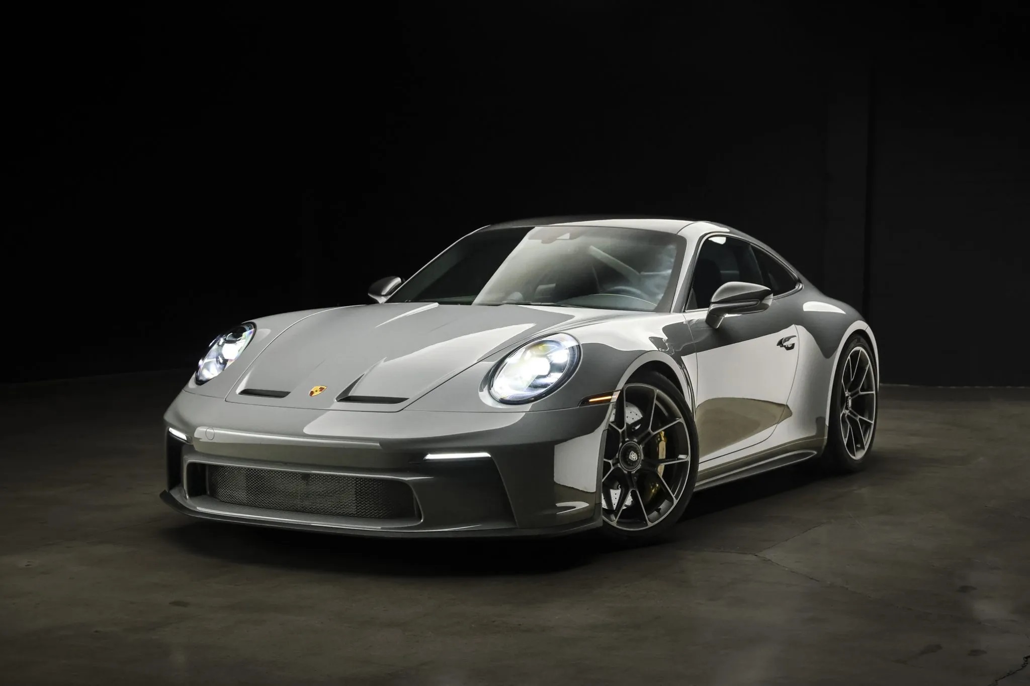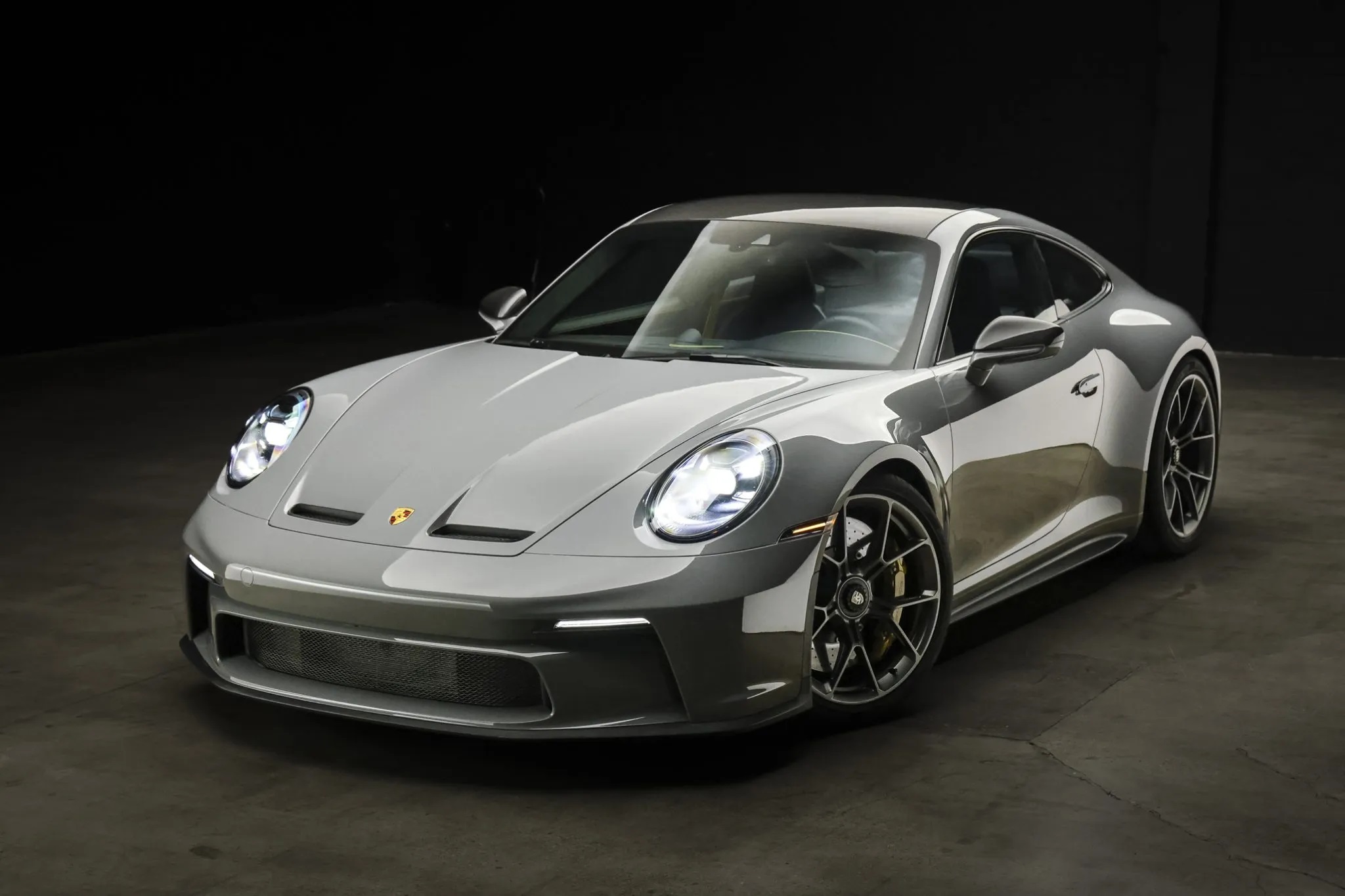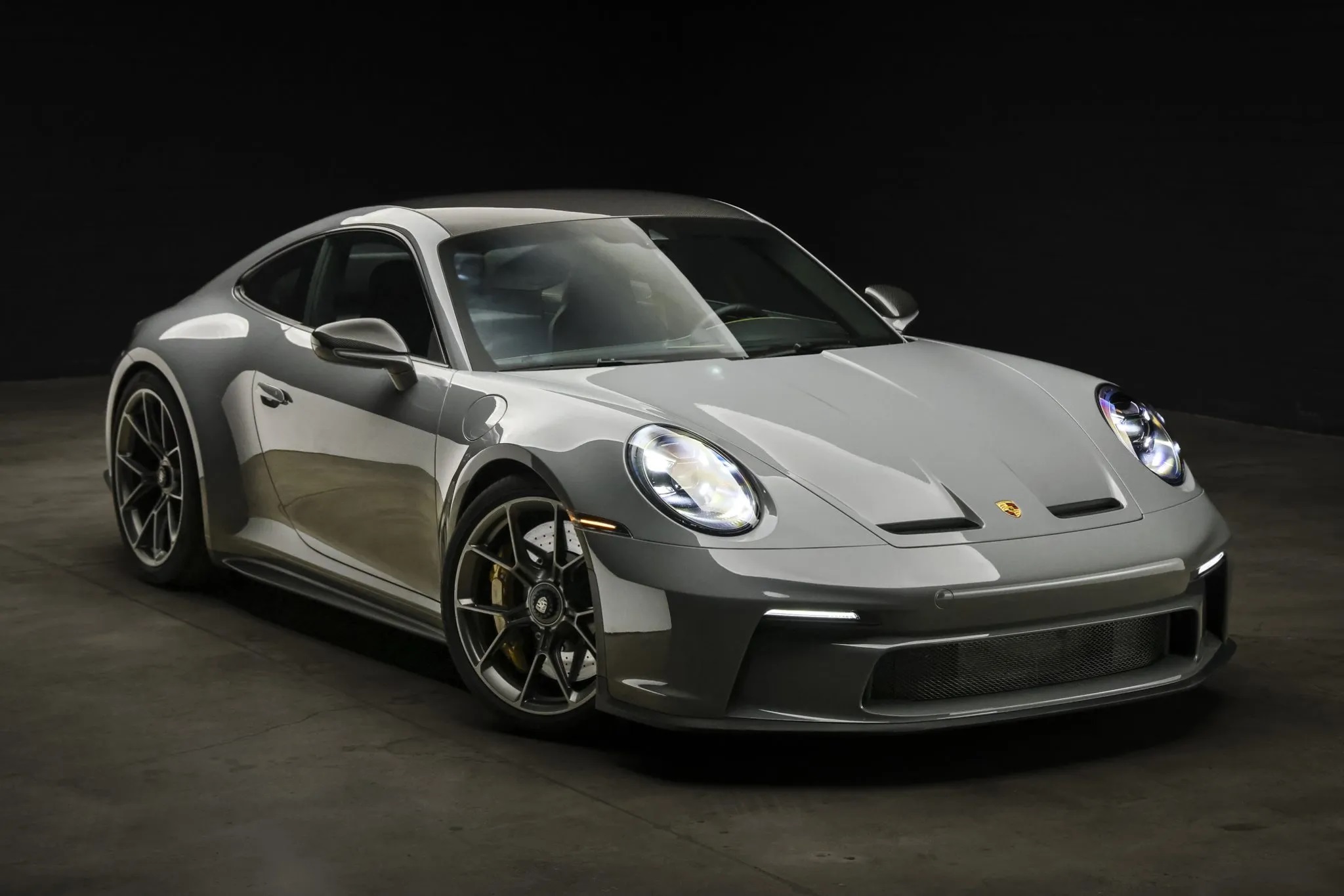 Offered for sale on Bring A Trailer is this 2023 Porsche 911 GT3 Touring with 2,300 miles. This particular model is finished in paint-to-sample China Gray and comes with $67k worth of options. The interior features black leather and cloth upholstery with cloth inserts, Porsche crests on the headrests, Racing Yellow seatbelts, and contrasting stitching.
