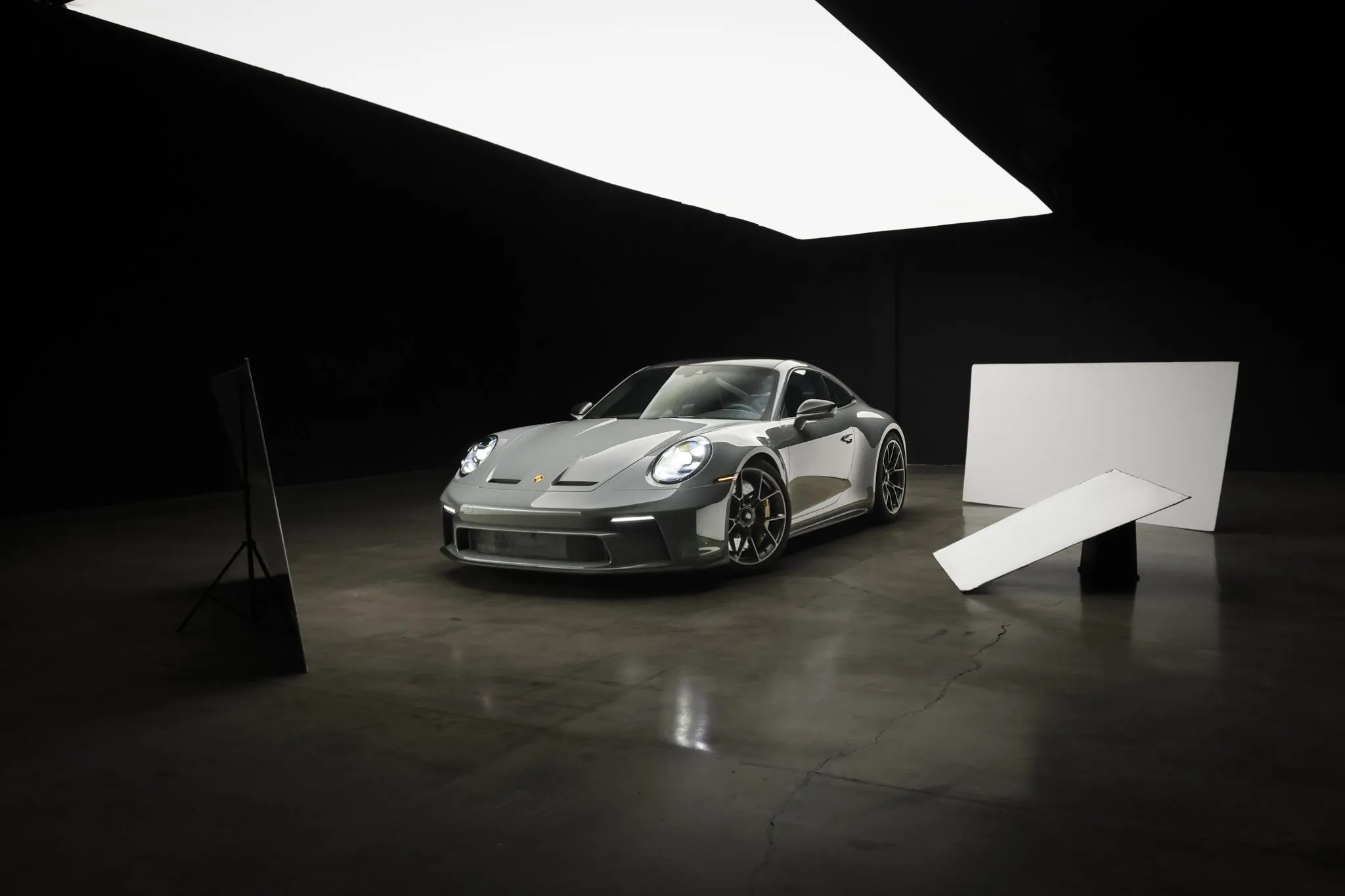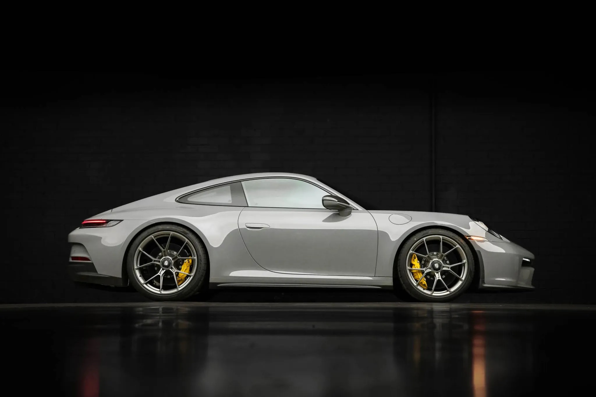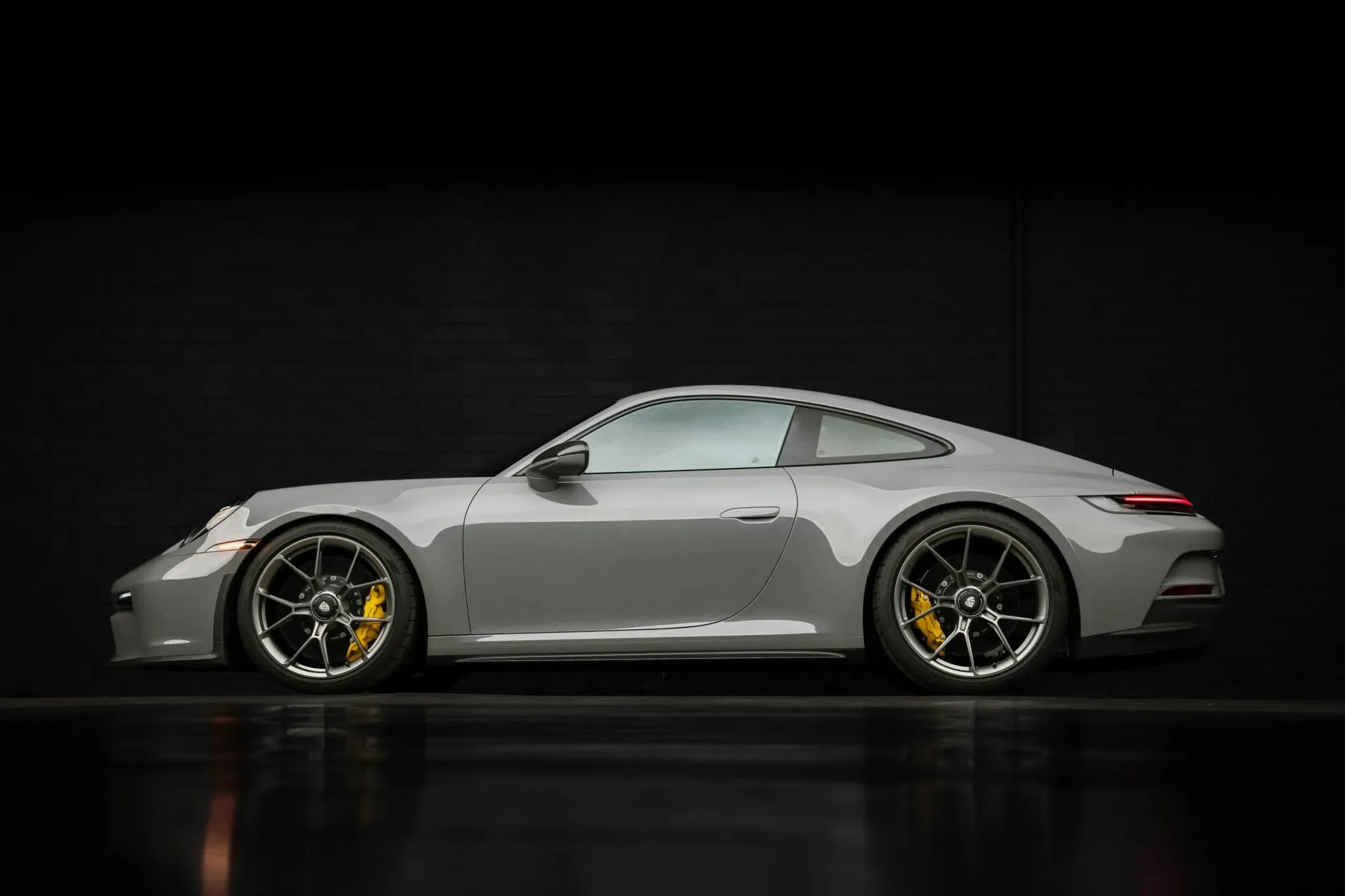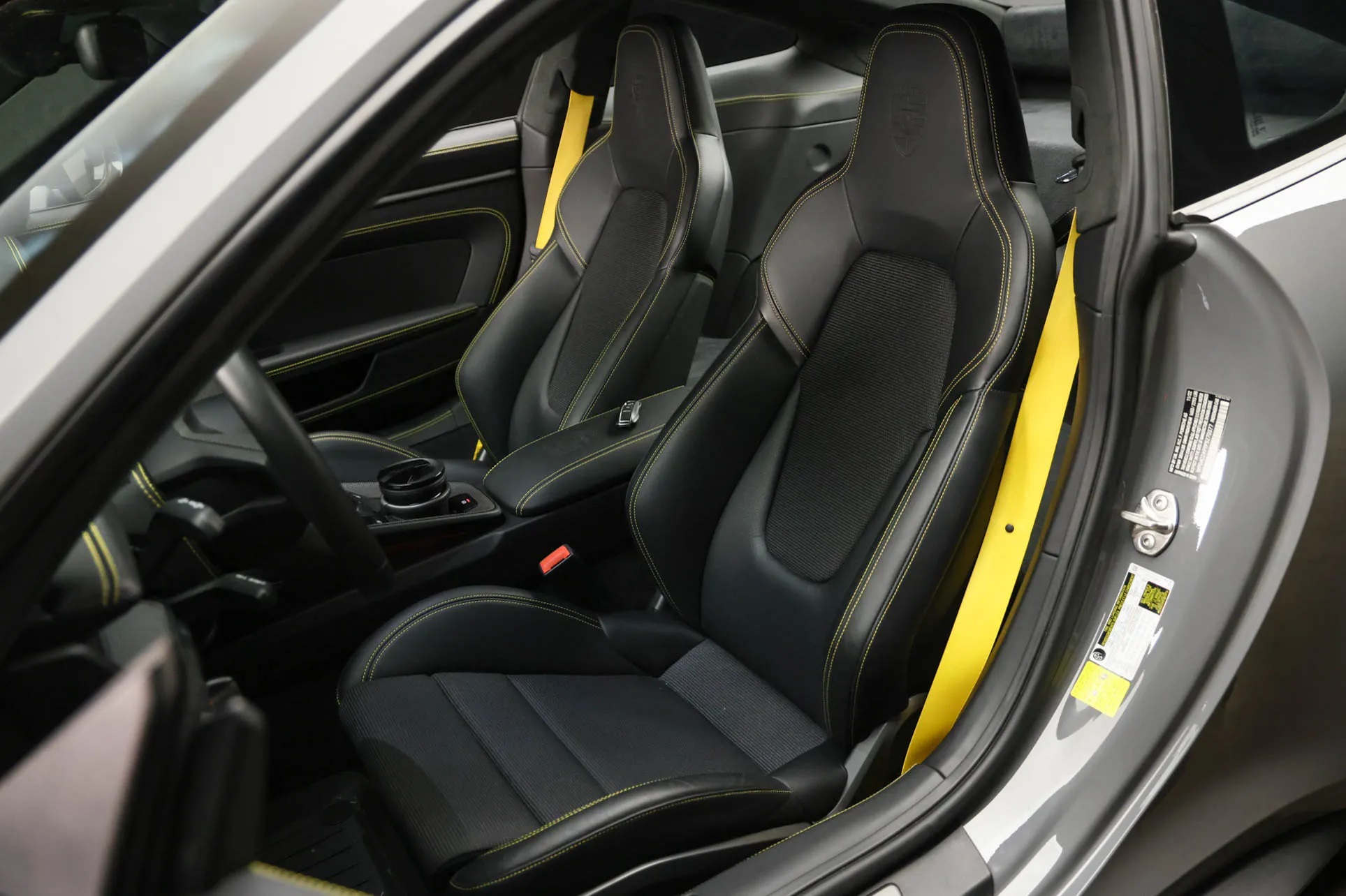 Offered for sale on Bring A Trailer is this 2023 Porsche 911 GT3 Touring with 2,300 miles. This particular model is finished in paint-to-sample China Gray and comes with $67k worth of options. The interior features black leather and cloth upholstery with cloth inserts, Porsche crests on the headrests, Racing Yellow seatbelts, and contrasting stitching.