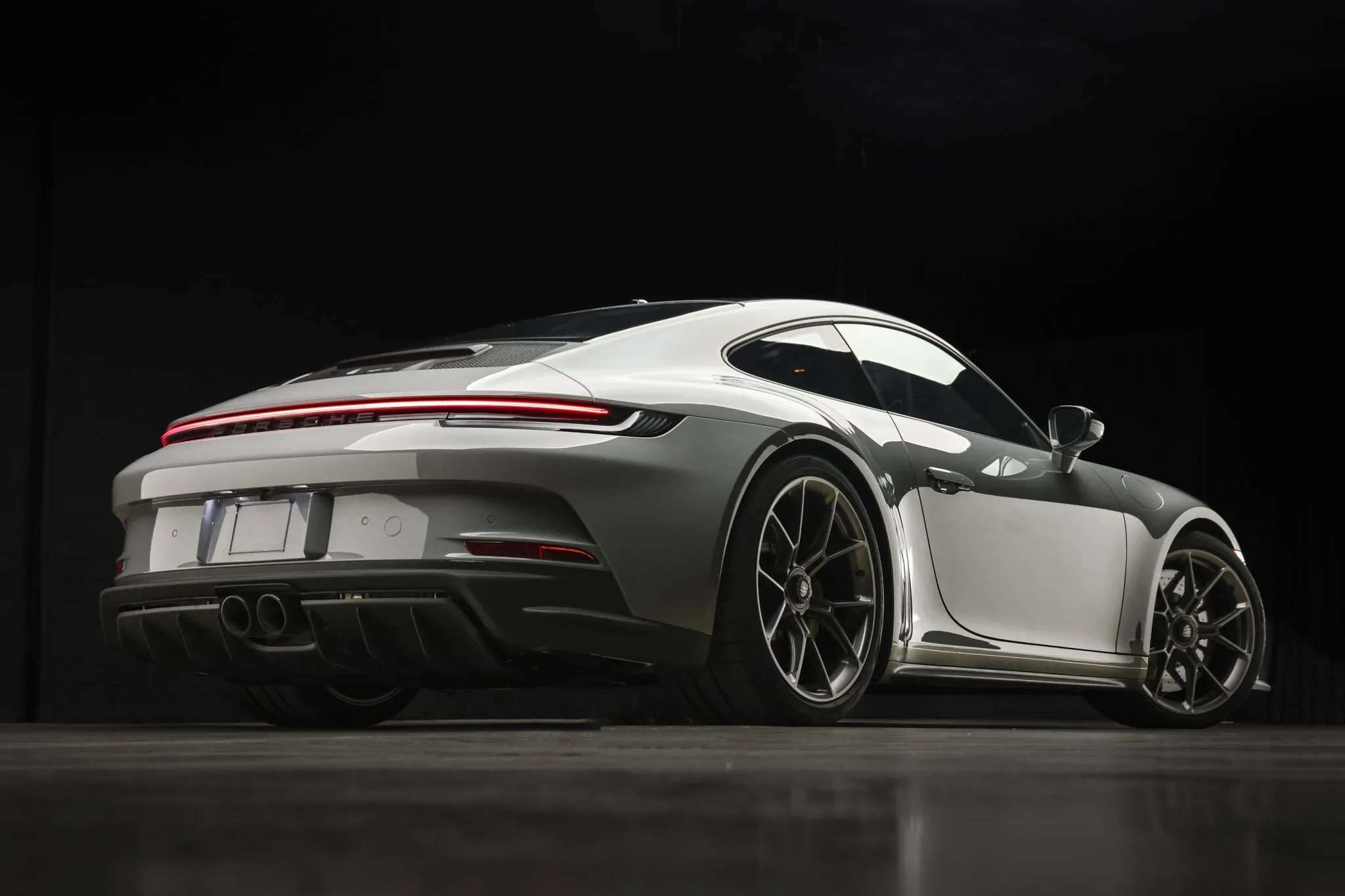 The car is packed with performance features, including Porsche Ceramic Composite Brakes, a carbon-fiber roof, a mechanical limited-slip differential, the Chrono Package, LED-Matrix Design headlights with PDLS+, a speed-activated rear spoiler, rear-axle steering, and a front-axle lift system. It also rides on 20″ and 21″ center-locking wheels, and the interior boasts 18-way heated adaptive Sport Plus seats, a Bose sound system, and Porsche Communication Management.