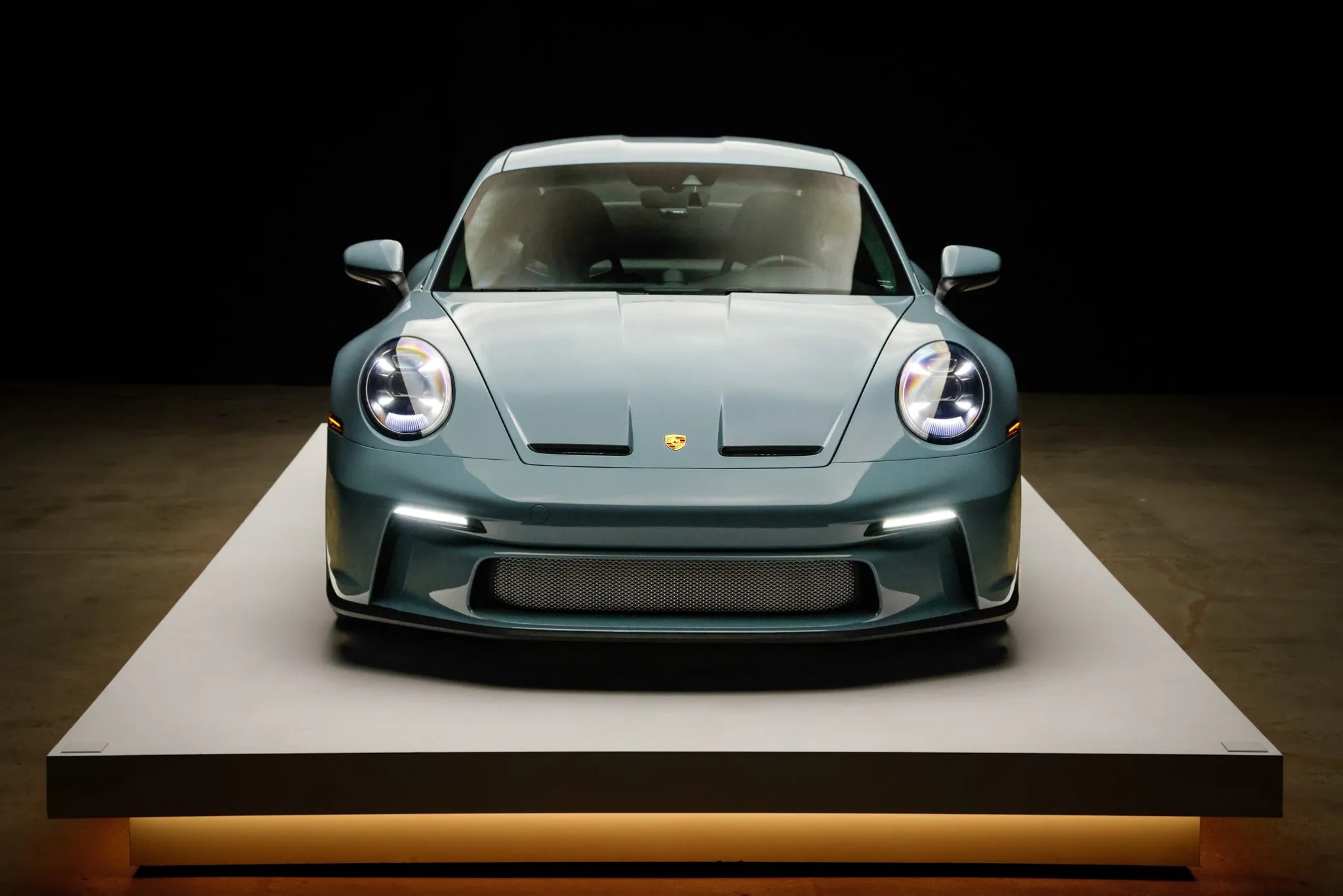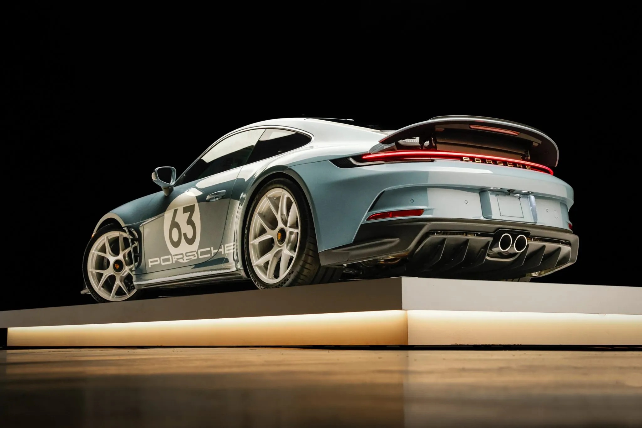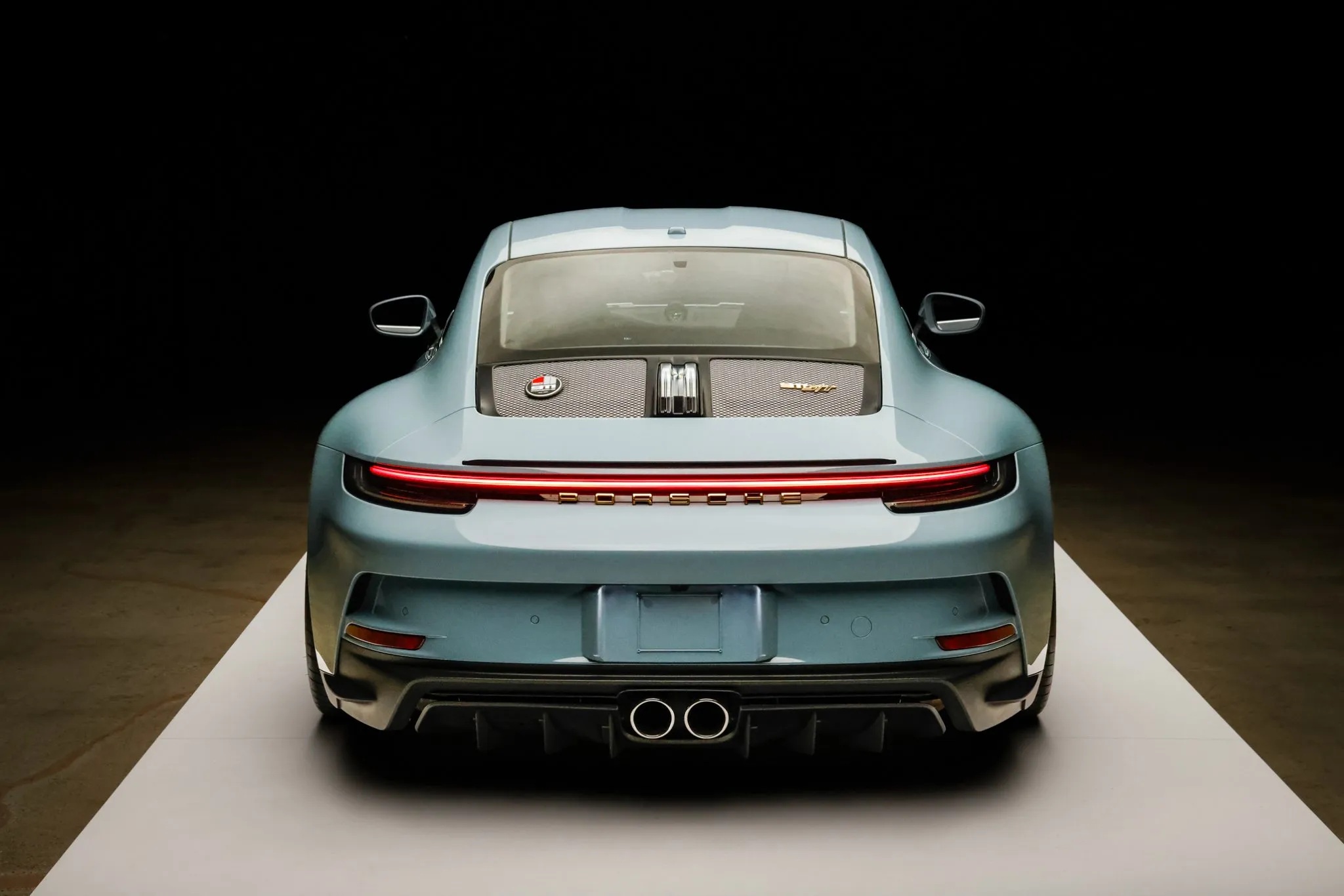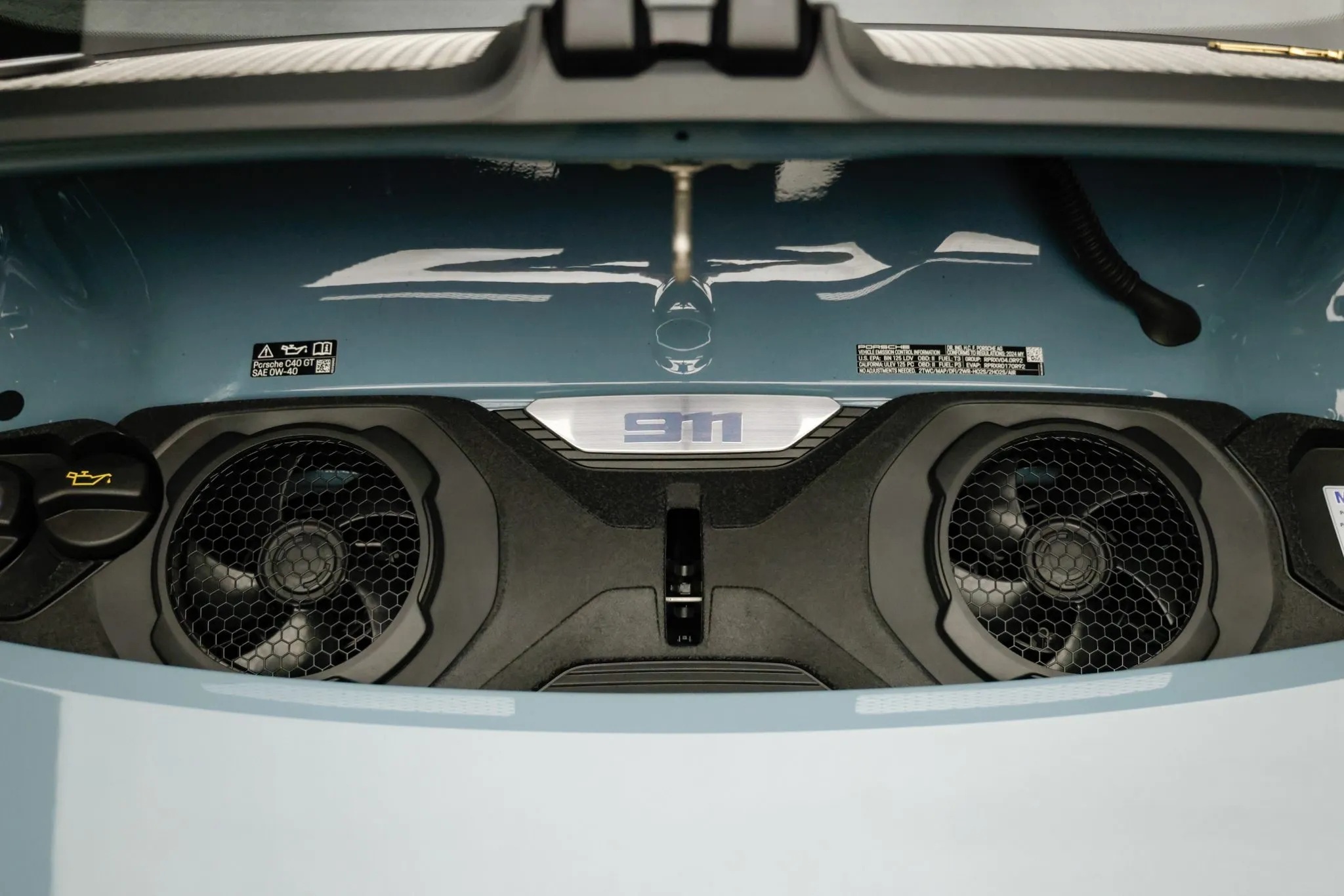 Further reinforcing its purist mission are lightweight glass, reduced sound deadening, an extended-range fuel tank, a retractable rear spoiler, and staggered magnesium centerlock wheels with carbon-ceramic brakes. This car also features the Heritage Design Package, finished in Shore Blue Metallic with gold badging and commemorative “1963–2023” crests.