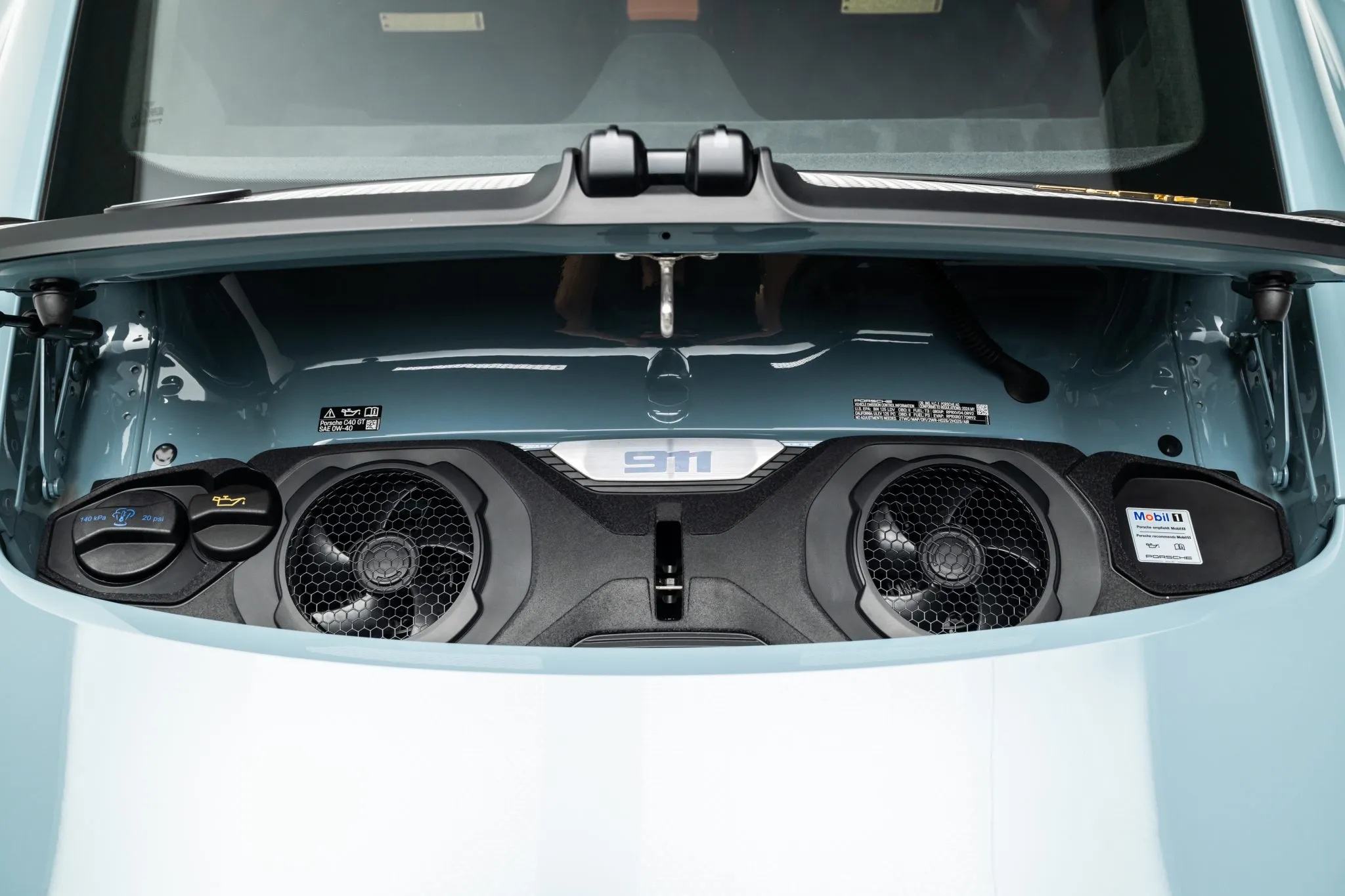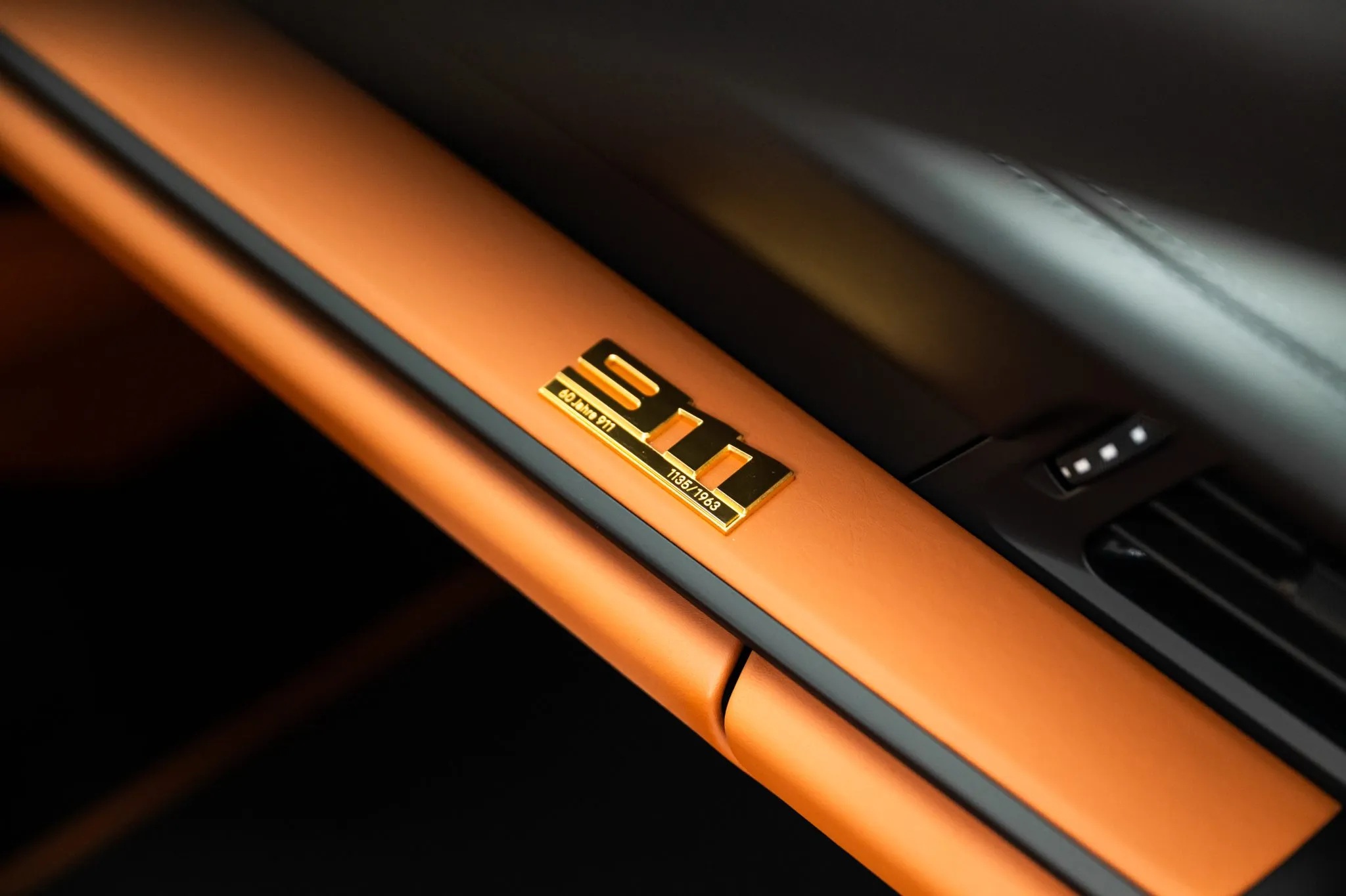 This example is further distinguished by the optional Heritage Design Package, finished in Shore Blue Metallic with motorsport graphics, gold Porsche badging, and commemorative “1963–2023” crests, while omitting the standard No. 63 roundels.