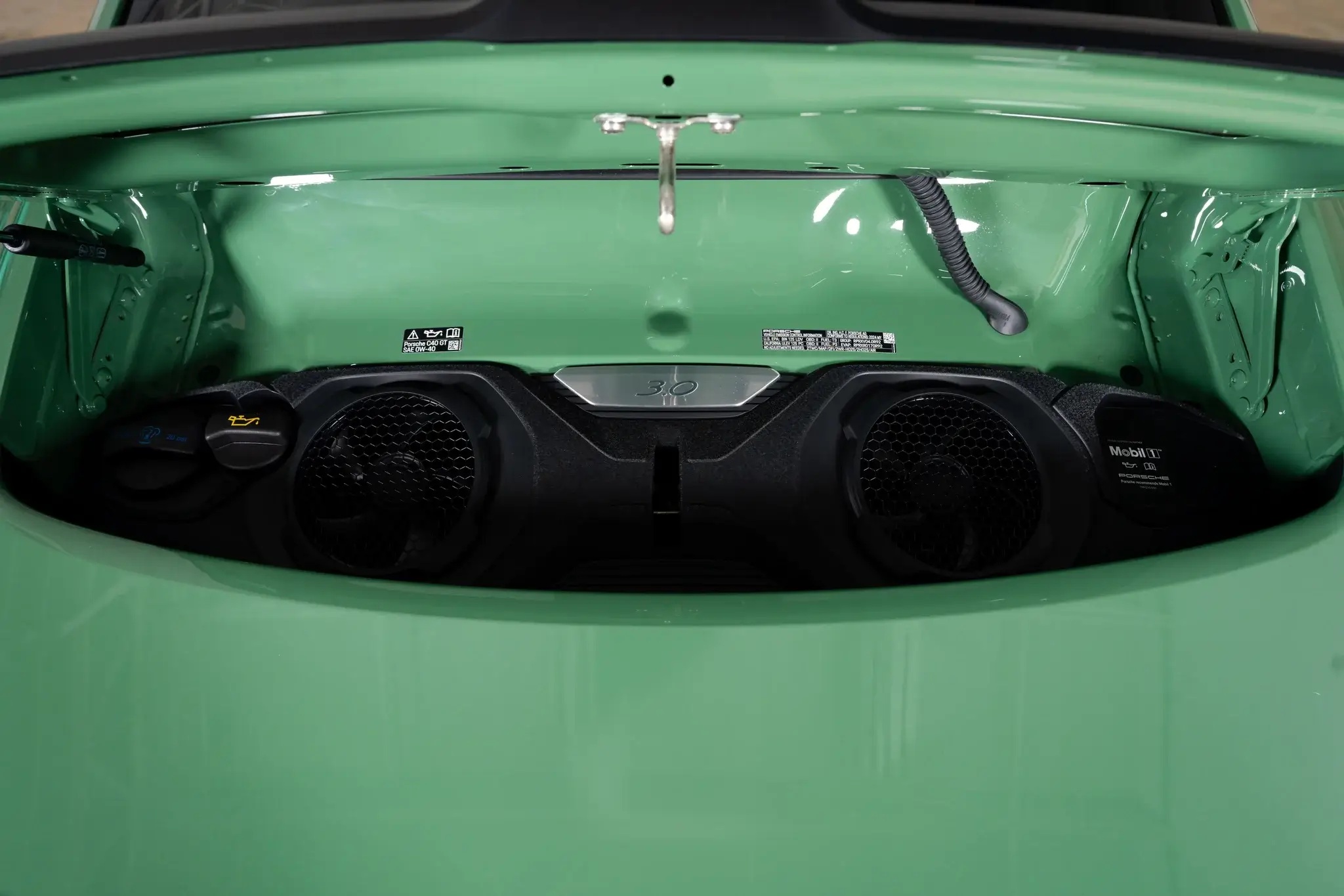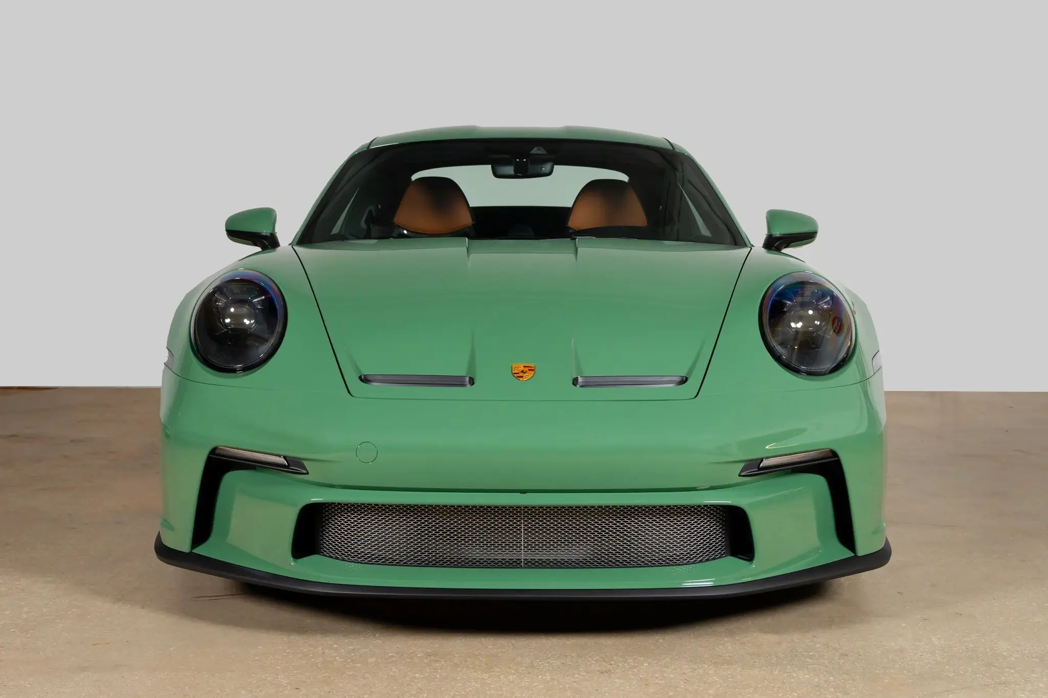 The 911 S/T features GT3 Touring-derived bodywork, carbon fiber doors from the GT3 RS, carbon fiber fenders with side fins, and a painted carbon fiber hood and roof. Only 1,963 examples were produced, a nod to the 911’s debut year.