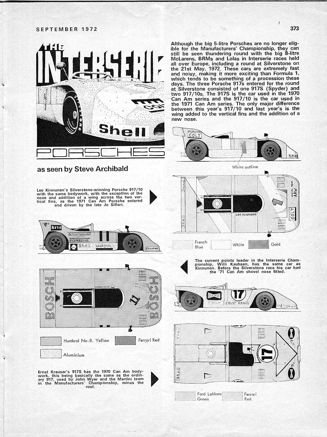 Interserie 1972, Super Sports 200 Silverstone: Porsche 917 Spyder chassis #031 (reb. 026), Porsche 917/10 TC chassis #002 & Porsche 917/10 #004