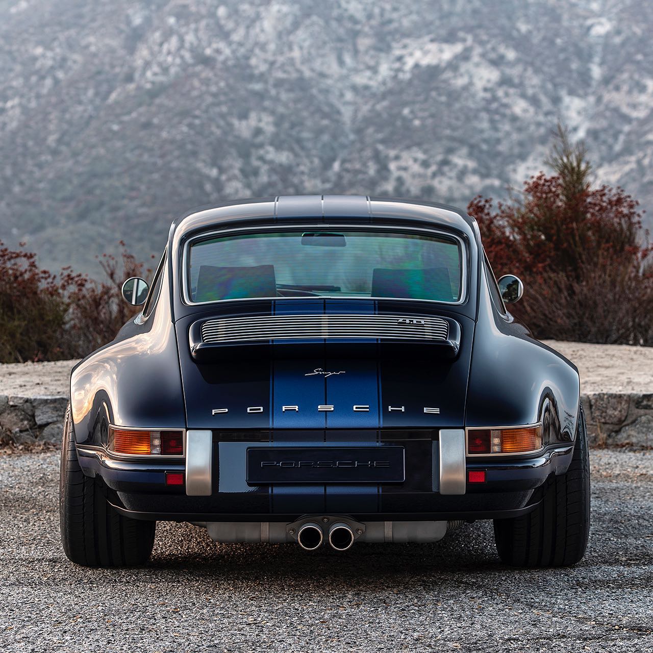 Today, we take a closer look at the Singer Vehicle Designs Japan Commission. The carbon-fiber bodywork is presented in Midnight Blue with light-ghosted side stripes, top stripes and lettering. Bumperettes and rear deck-lid badging are presented in nickel. The air-cooled, naturally aspirated flat-six is paired with a 6-speed manual transmission and the aluminum center-mounted external fuel filler is also specified.