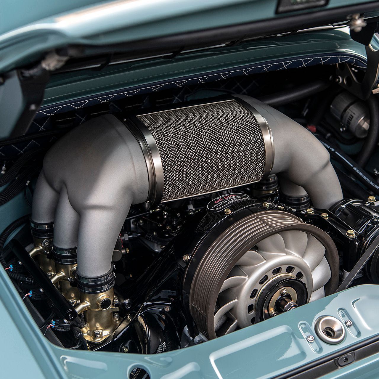 Powering the Long Island commission is this 4.0L, naturally aspirated, air-cooled flat-six, presented with a ceramic plenum finish. The owner has specified a 6-speed, manual gearbox and rear-wheel-drive. Lightweight plexiglass rear quarter windows are specified, together with the lightweight titanium exhaust system. Carbon-ceramic brakes sit behind wheels wearing Michelin Pilot Sport tires. The wheels themselves are specified with Navy centers, to match the car’s interior, together with open lug nuts. Brake calipers in turn are presented in Bahama Yellow with Navy lettering.