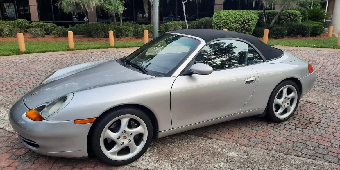 This 1999 Porsche 911 Carrera is an early-build cabriolet that was specified in Arctic Silver Metallic over black leather. It has been registered in Mississippi, Ohio, Florida, and Tennessee from new. The car is powered by a 3.4-liter M96 flat-six paired with a six-speed manual transaxle, and equipment includes 18″ Turbo-look wheels, Bilstein...