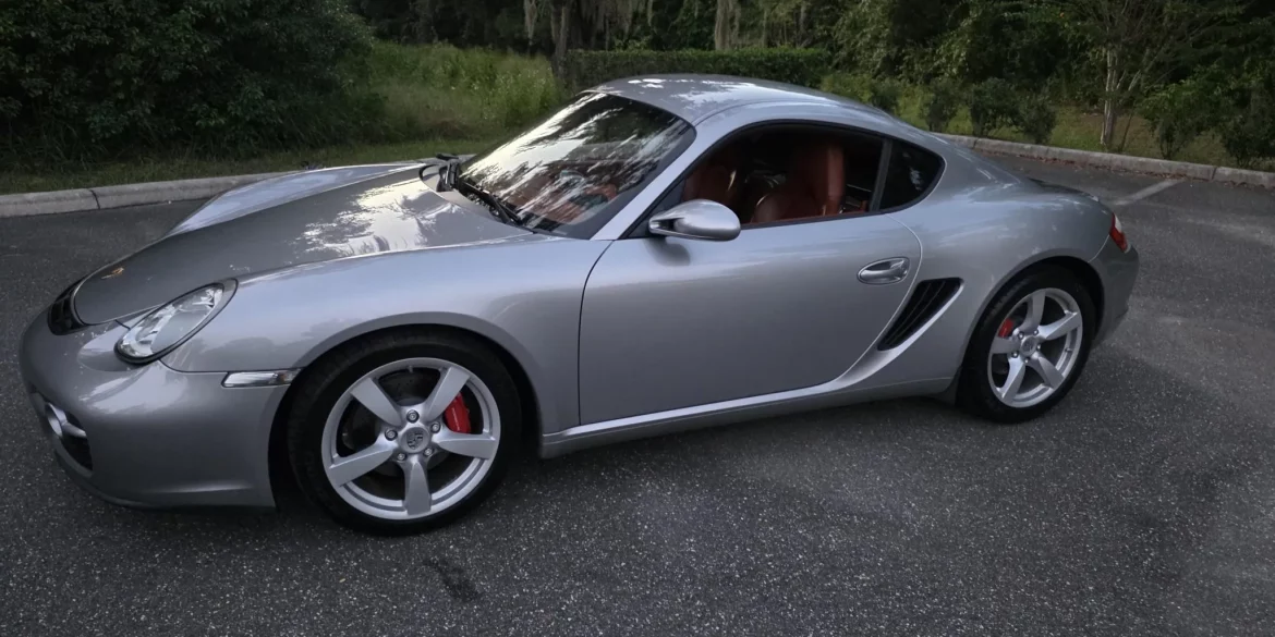 This 2006 Porsche Cayman S remained registered with the original owner until 2025 and now has 34k miles following history in Nevada. The car is powered by a 3.4-liter flat-six paired with a six-speed manual transaxle and is finished in Arctic Silver Metallic over black leather. Equipment includes 18” Cayman...