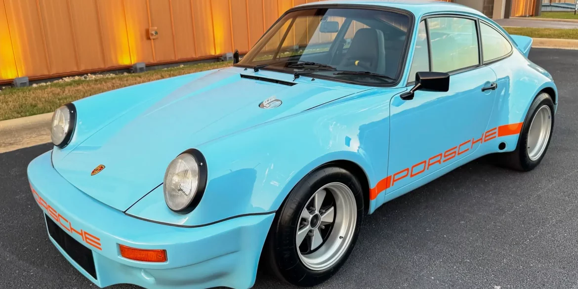 This 1974 Porsche 911 Coupe is the subject of a custom restoration inspired by 911 RSR IROC race cars of the era. Beginning in 2021, the vehicle was modified with steel fender flares and refinished in Gulf Blue, featuring custom orange side stripes, while the cabin was professionally reupholstered in...
