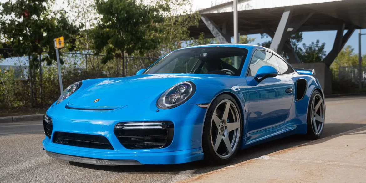Ordered in Paint to Sample Voodoo Blue over a Black leather interior, this 2017 Porsche 991.2 Turbo Coupe has been modified with TechArt and Moshammer exterior components, 20” Dilusso Forged wheels, a COBB tune, an IPD plenum and Y-pipe, a Kiline Innovation Inconel exhaust, ByDesign intercoolers, and more. The car...