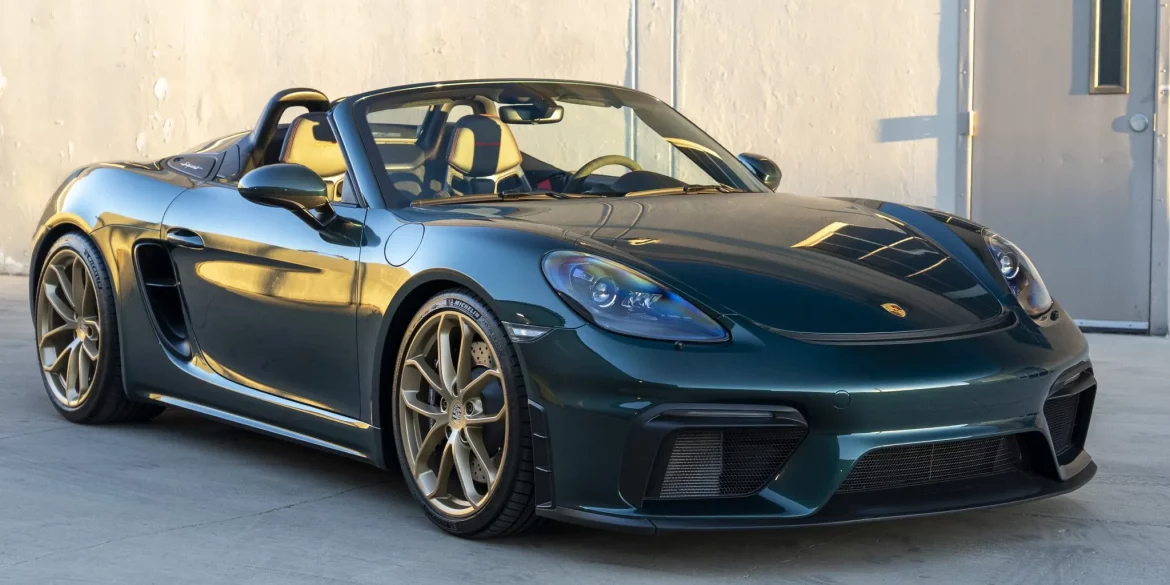 This 2023 Porsche 718 Spyder was purchased by the owner in 2023 and was optioned with a paint-to-sample Jet Green Metallic exterior finish in addition to a six-speed manual transaxle, which is paired with a 4.0-liter flat-six. Having 4,700 miles, the car is further equipped with black leather and Race-Tex...